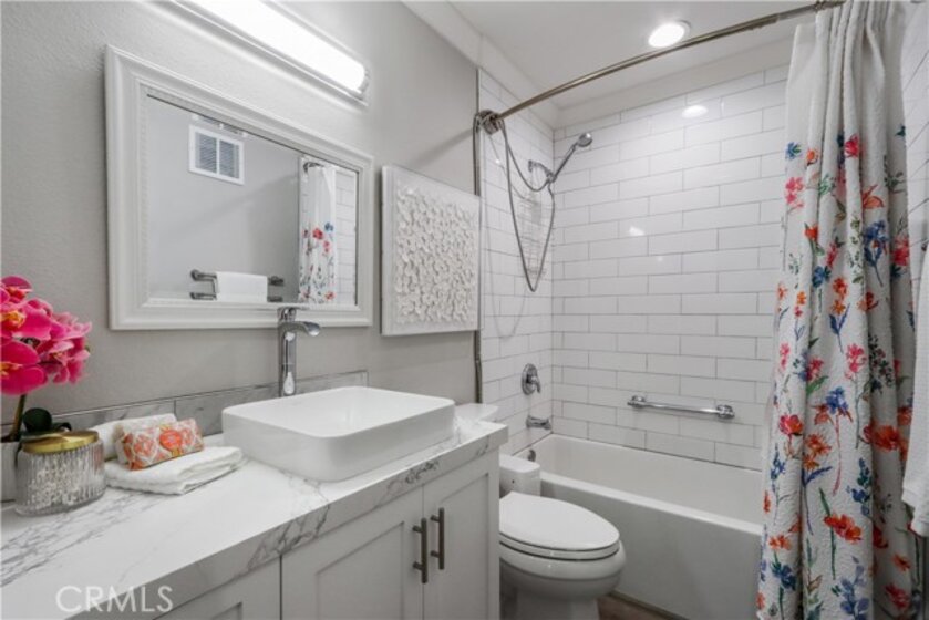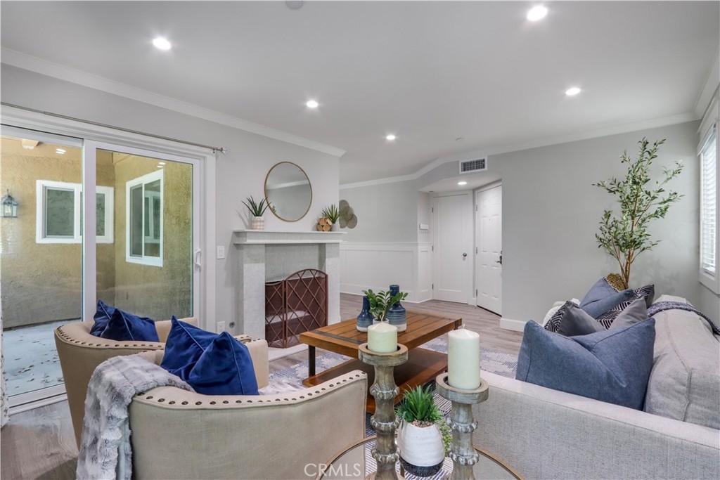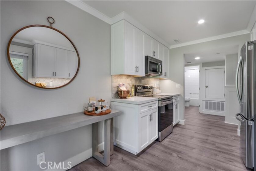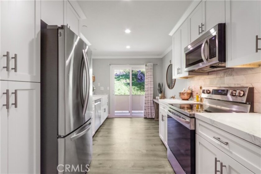 Don't Miss This Highly Upgraded Gorgeous Condo!!! Updated features include: New vinyl water-resistant wood look flooring, newer windows, newer sliding doors, dimmable can lights throughout, and shaker-style all-wood panel wainscot walls in hallways and dining room. Crown molding throughout, and the doors are single-panel craftsman style with flat stock trim. Custom stone slab fireplace mantel and hearth with glass rock for gas fire. The highly upgraded kitchen features custom-built shaker-style cabinets, white with finished maple interiors, a large farmhouse sink, a newer garbage disposal, subway tile backsplash, and a complete set of newer stainless appliances. Both bedrooms are good size and feature large walk-in closets and dimmable can lights. The master bathroom features a walk-in shower with a corner bench and niche, a separate vanity area, a custom-built shaker-style vanity, a newer toilet, and newer fixtures. The Hall Bathroom features a newer large soaking tub, custom-built shaker style vanity, newer toilet, and newer fixtures. A laundry room with an upgraded quartz countertop, upgraded cabinets, a newer washer, a newer dryer, and a newer water heater. This unit also features a nice large back patio with decorative lighting, and 2 covered parking spaces #120 & #121.