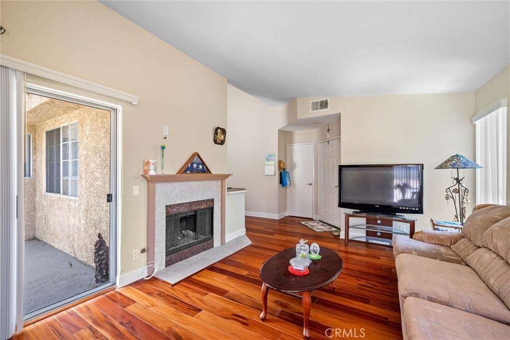 LOWEST PRICED 2-BED/2-BATH CONDO IN YORBA LINDA (as of 09/09/24). Welcome to The Hills of Yorba Linda! This well-designed single-story condo features two bedrooms and two full bathrooms as well as a wrap-around balcony that you can access from the living room, kitchen, and master bedroom. With wood flooring and a cozy fireplace, the living room leads into a separate dining room boasting high ceilings and multi-purpose space. The kitchen is designed with white cabinetry & countertops, stainless steel appliances, and ample storage space. The master bedroom includes a private bathroom and walk-in closet; the spacious second bedroom also includes a walk-in closet with a nearby bathroom. A separate laundry room is conveniently located on the balcony next to the master bedroom. Close to the pool, playground, and mail room, this unit includes two assigned covered carport spaces (#122 & #123) for added convenience. Recent updates to the building include a newer roof, ensuring peace of mind for years to come. Also, a brand new AC unit was installed three years ago. HOA amenities include water & trash services, two pools, three spas, tennis courts, clubhouse access, a billiard room, an exercise room, and a secured mail room. Near local hiking trails and within the award-winning Yorba Linda School District, this home is ideal for first-time homebuyers looking for SoCal living!