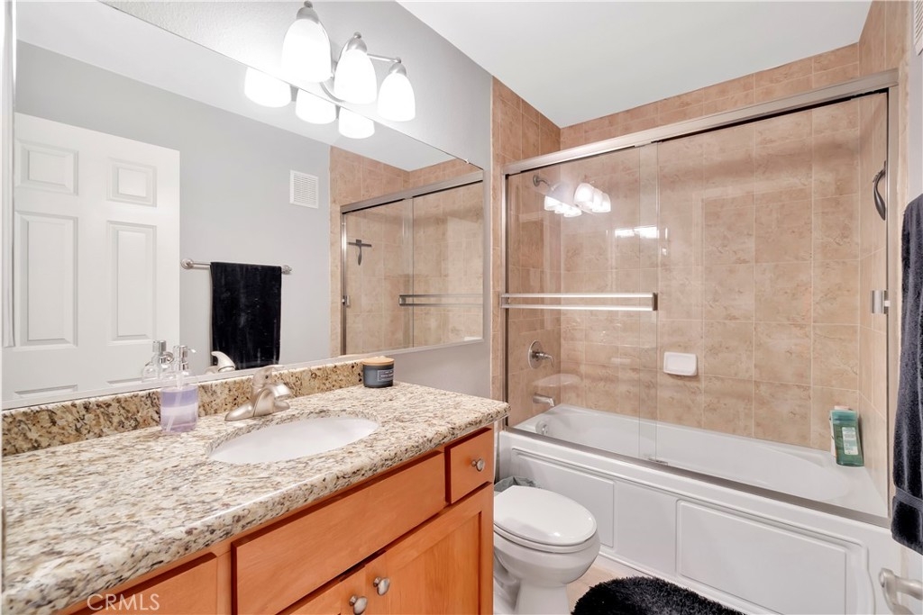 Welcome home to the "The Hills" a tranquil sanctuary! This single-story, corner end unit is move in ready and an awesome location. Located at the base of the well-maintained development for easy in/out access to desirable Yorba Linda. Great for those who love views and fresh air, plenty of outdoor activities available to create a healthy lifestyle. There are wonderful features to include an open living room with crown molding, a cozy fireplace, recessed lighting, sliders to patio, a good-sized dining room and a well-appointed galley kitchen with stainless steel appliances! Granite counter tops accent the kitchen and bathroom cabinets. Both bathrooms have been tastefully remodeled with tumbled marble/tile, custom shower doors, tile floors & designer paint colors. The WOW is that both the master (ensuite) and the secondary bedroom are really spacious, and both have walk-in closets! Faux wood shutters frame the windows, gorgeous wood like vinyl flooring was installed in 2020. A really smart layout for those downsizing or buyers wanting their own space. The seller has a large dog so he created a special place in the wrap-around patio near the master so the dog can have his own space. Private laundry room is adjacent to the patio housing full sized machines & storage. Extra storage on the front patio is a plus. There are 2 assigned parking spaces, plentiful guest parking and award-winning schools nearby. The HOA $405.00, covers water, trash, community pools, spa, gym, tennis courts, clubhouse, running trails and playgrounds. This is close to the freeway, shopping and restaurants