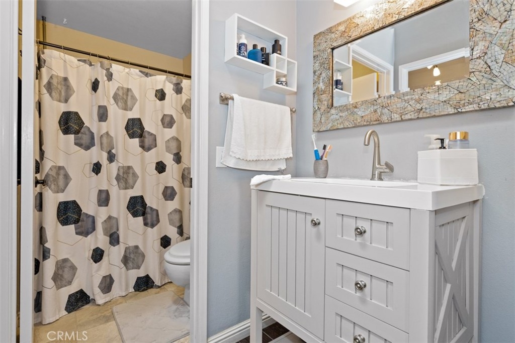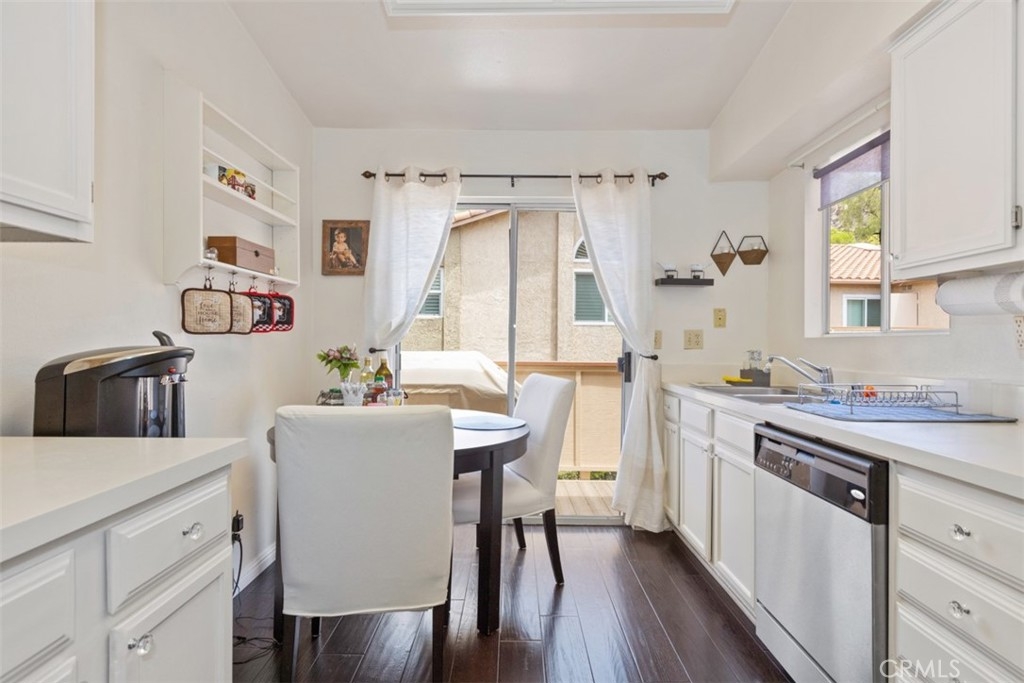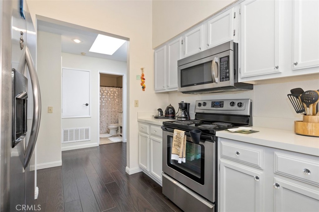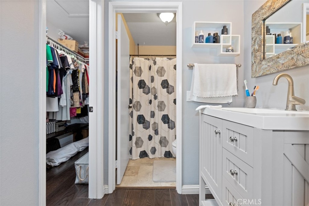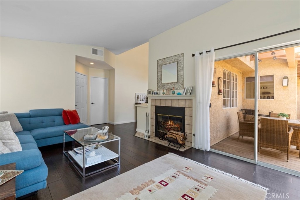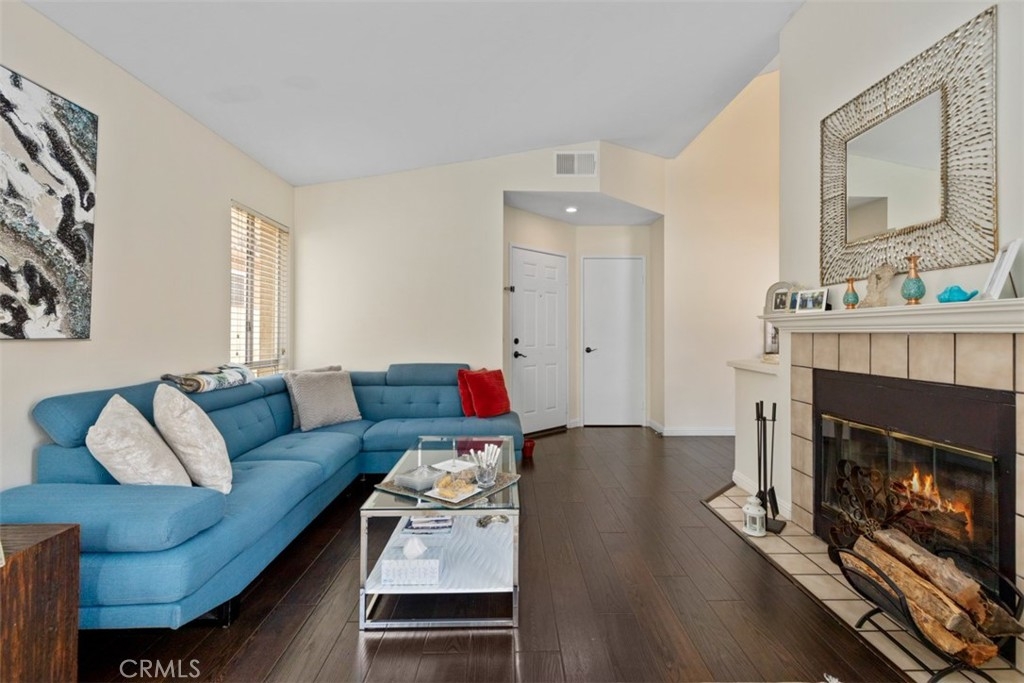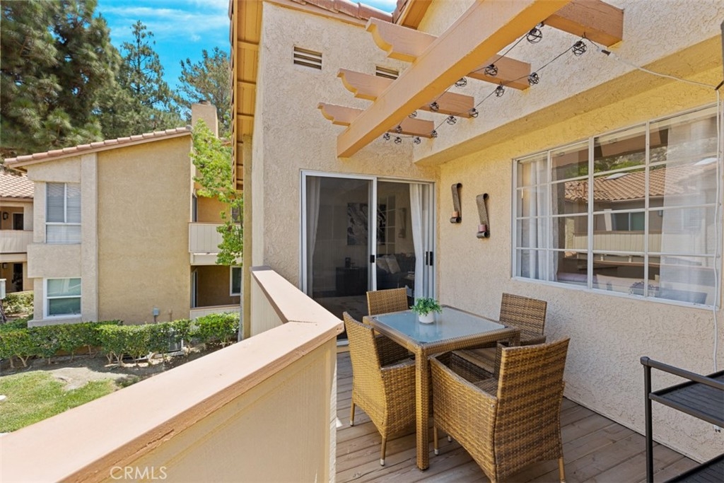 Welcome to The Hills, tucked away in the foothills of East Yorba Linda. 2 bedroom, 2 bathroom upper unit with large balcony with multiple access points through sliding glass doors in the living room, kitchen and main bedroom. Beautiful wood flooring throughout the majority of the unit and tile in the bathrooms. Cozy living room with fireplace adjacent to dining room or bonus room. Galley style kitchen with stainless steel appliances – electric range, microwave and dishwasher. Hall with linen closet and sky light. Main bedroom with sliding door access to balcony, skylight and includes en suite full bathroom – separate vanity/sink area; the large, oval bathtub and toilet are private with door from the bedroom. Nice sized secondary bedroom. Hall bathroom with large shower, single sink. Closet/room located outside of the main bedroom which houses the water heater and is also the laundry closet with washer and dryer hookups. HOA dues include water and trash along with fabulous amenities – pool/spa, fitness center, clubhouse, tennis court, play area and more. Located in the Placentia-Yorba Linda School District. Carports are 51 and 52