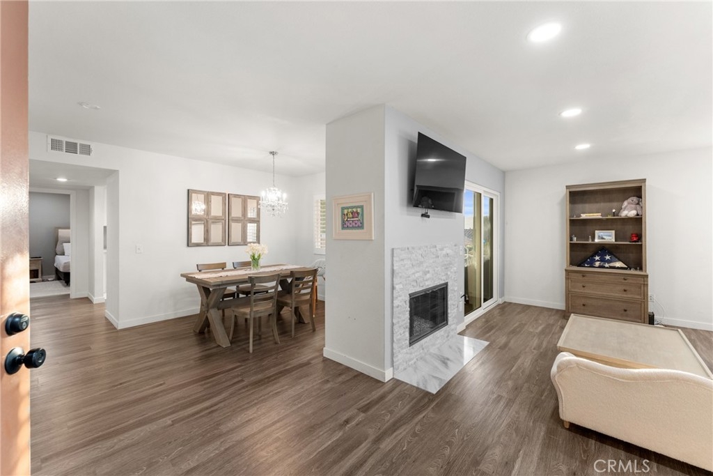 Feels like your new home!! Great hillside VIEW location on this stunning lower level end unit condo home in The Hills with NO STAIRS * Come experience this impressively remodeled home with everything you've been looking for * Almost everything inside and out has been upgraded including new windows, shutters and new HVAC!! Luxurious and modern interior features neutral flooring, fresh paint, DREAM kitchen with Thomasville white shaker cabinets, white quartz countertops, glass tile backplash, stainless steel appliances. Stretch out and relax in the living room with elegant fire and ice fireplace complete with sunset view!! Formal dining room is large and is ready for your next party! More modern luxury touches like LED lighting accentuate the new feel throughout * Mainfloor primary suite with large closet and primary bath with newer vanity and remodeled tub/shower and newer fixtures and lighting. Bedroom 2 is generously sized and is adjacent to bath 2 which is beautifully remodeled with a modern look- new vanity, flooring, lighting and step in shower. Watch the sun go down sitting on the wrap around patio. 2 assigned carports super close to front door. And bonus! The commumity pool and spa is close by when its time to soak in the sun. HOA also has gym, tennis, a clubhouse and Box Canyon park and playground are just up the hill. This home attends Bryant Ranch, Travis Ranch and Yorba Linda High! Amazing opportunity to get into a gorgeous luxury condo before summer!!