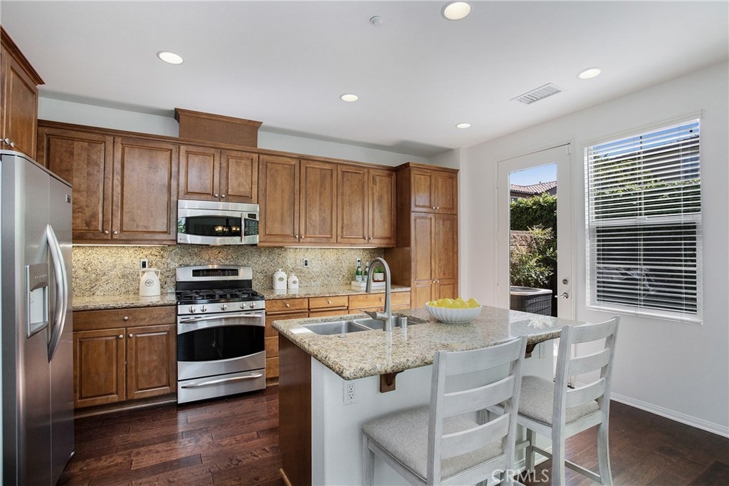 Surrounded by multi-million dollar homes and connected to excellent schools. Don't let this move in ready home slip away. One of the few homes in the Villagio Community ideally located on the end unit allowing for convenient ingress/egress and parking. Upon entering the home you'll experience a spacious open floor plan that seamlessly ties into the Living, Dining Room, and Kitchen that combines natural light with surrounding beautiful views. The kitchen encompasses all stainless steel appliances, gas stove, granite countertops, backsplash lighting, and a center island with bar seating. The beautiful, low maintenance patio with custom pavers and convenient access from the kitchen makes barbequing and al fresco dining a breeze. Upstairs you’ll find three bedrooms including a spacious master suite with shower, soaking tub and walk-in closet, the main bath includes a two-sink vanity and linens cupboard, a full-size laundry room with sink and a viewing balcony off of bedroom 2. The Villagio Community includes a playground, pool, and spa. Don't wait, this move in ready home will not last long.. The Villagio Community includes a playground, pool, and spa.