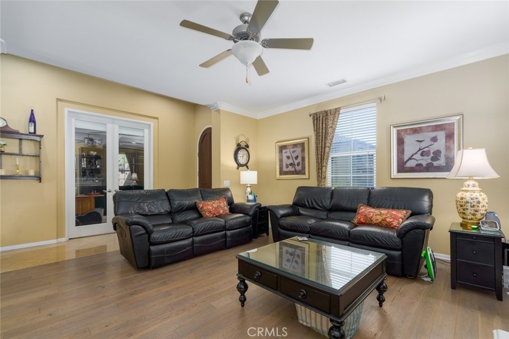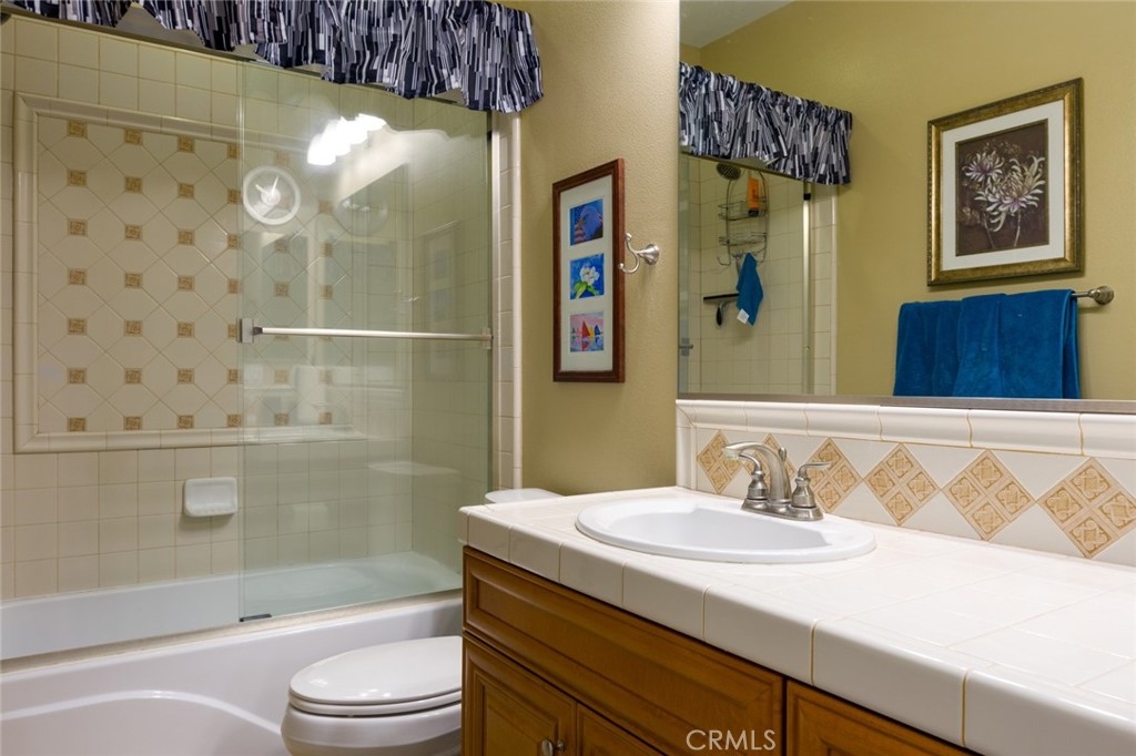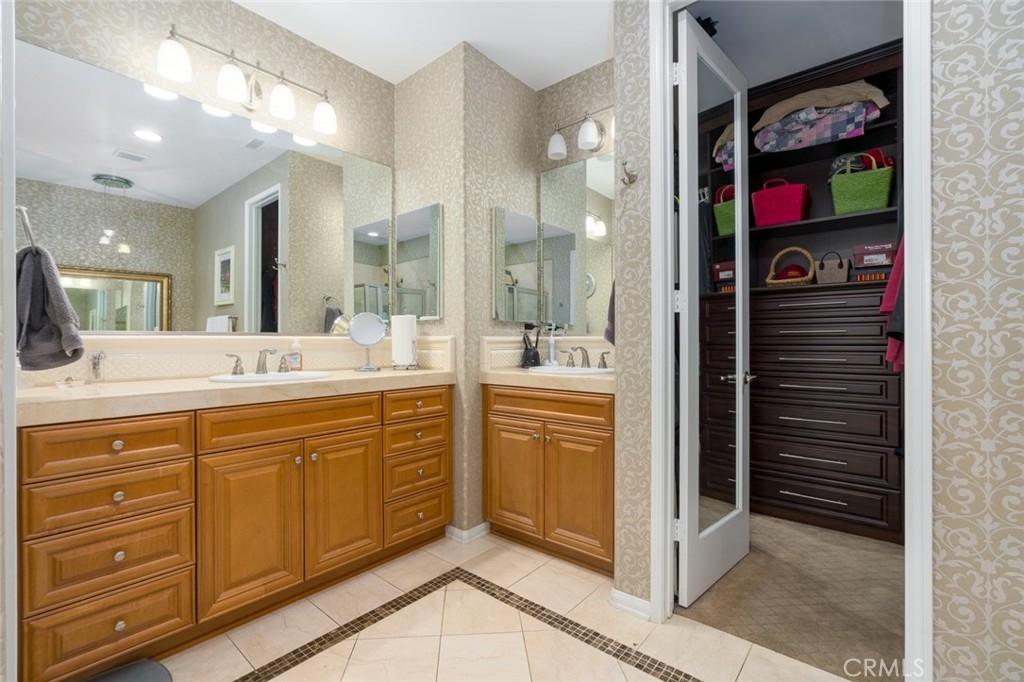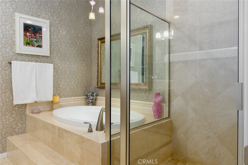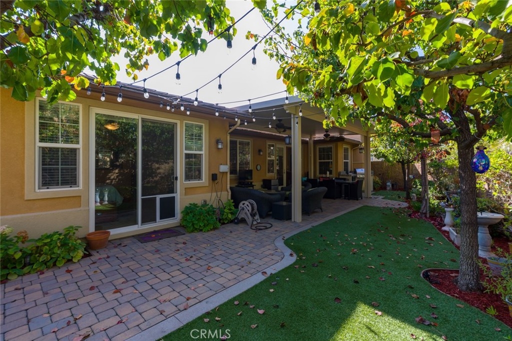 Beautiful home in the highly sought out Villagio community in Yorba Linda! This turnkey single-story condo features an open floor plan with a gorgeous kitchen that offers abundant detailed cabinetry and counter space, a large center island with bar seating for six, granite counters, stone backsplash, gas range top, double ovens, stainless steel appliances, recessed and under cabinet lighting plus a built-in microwave and fridge. The primary suite and bath feature a custom walk-in closet with natural wood shelves, shoe racks and storage. You will love the deep soaking tub and walk-in shower. The bedroom slider opens to amazing views of the large gorgeous yard with extremely functional covered patio, mature trees, paver systems walkways and slab, built in BBQ with counter space and outdoor fridge. This home features 8-foot doors throughout and 9 and 10-foot ceilings give an open, light and bright feel. There are two garages, one with direct access to the interior and another with access to the backyard, along with a large driveway. Seller added overhead storage at the garage for additional off the floor storage. The separate laundry room offers a sink and storage cabinets. Whether you are downsizing or looking for great schools and a wonderful community, this is the perfect home. While conveniently located near the meticulously maintained gated pool and spa, you’ll enjoy the privacy and seclusion of a tucked-away location with a dedicated walkway . Plenty of street and guest parking for everyone and steps away from the Yorba Linda trail system. Just a short distance to shopping, freeways, parks, theaters, restaurants, the new town center, library and performing arts center. Yorba Linda High School is steps away and awarding winning Fairmont Jr. High is close by. The 3rd bedroom is listed in original floor plan as an office. Add a closet and it is a large 3rd bedroom or keep as an office or den.