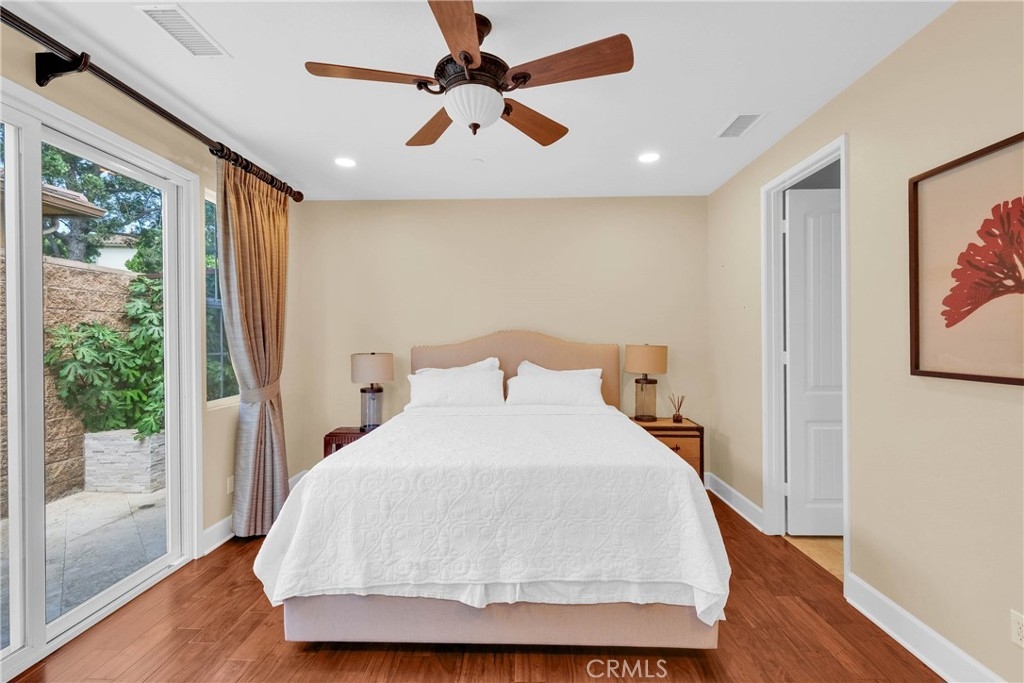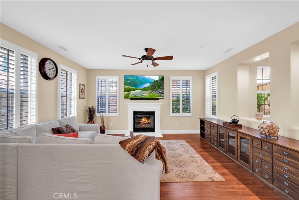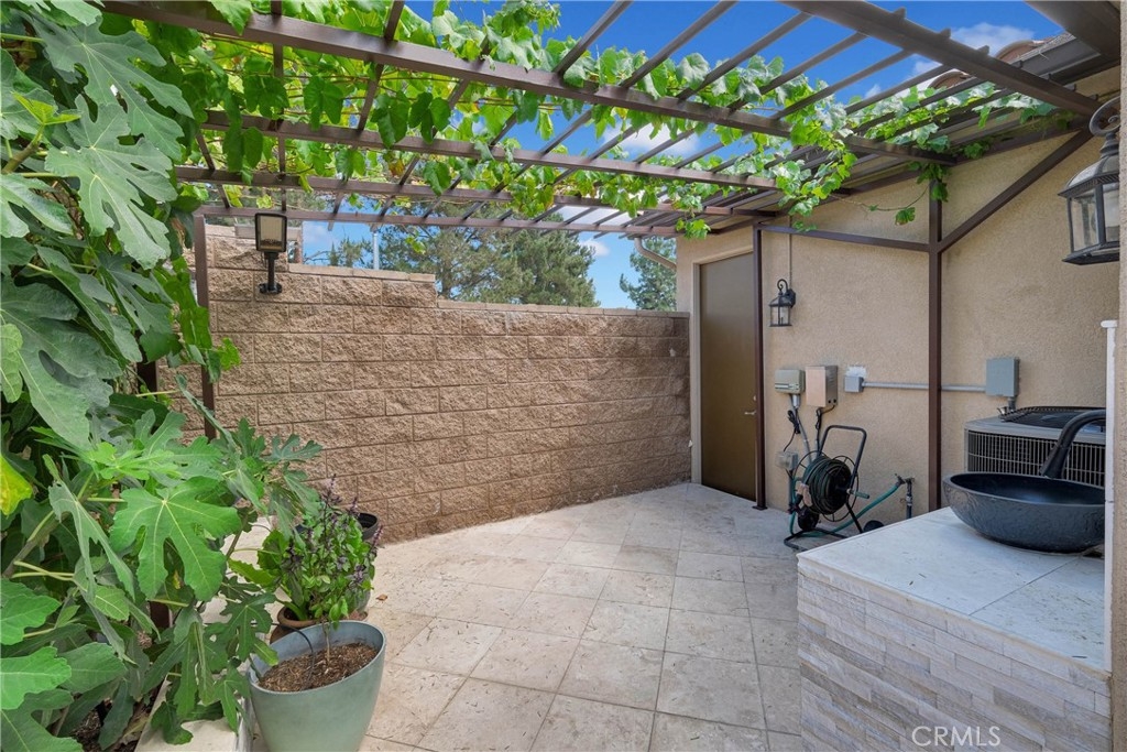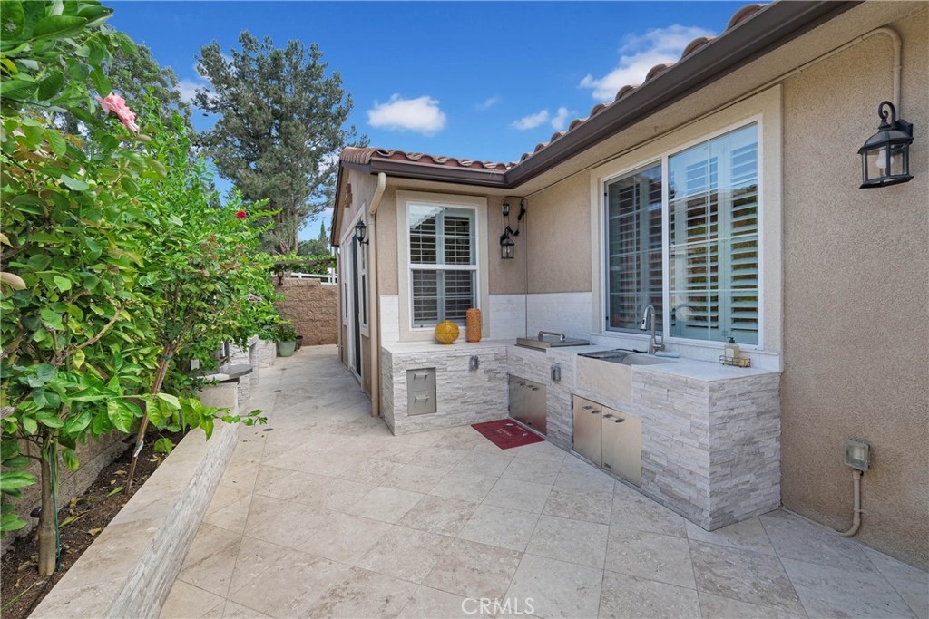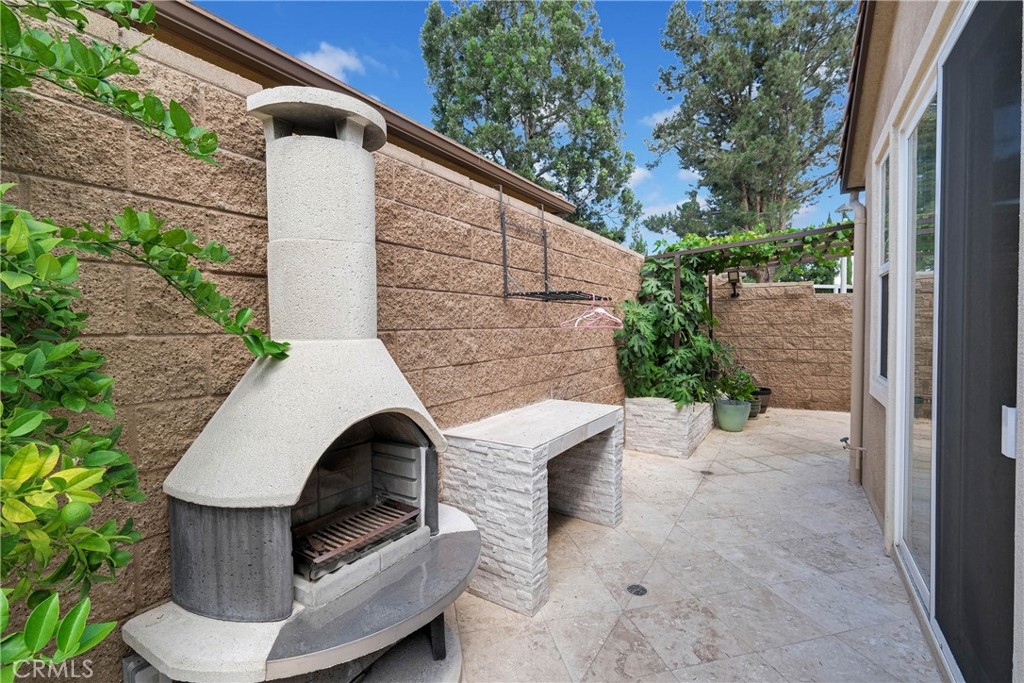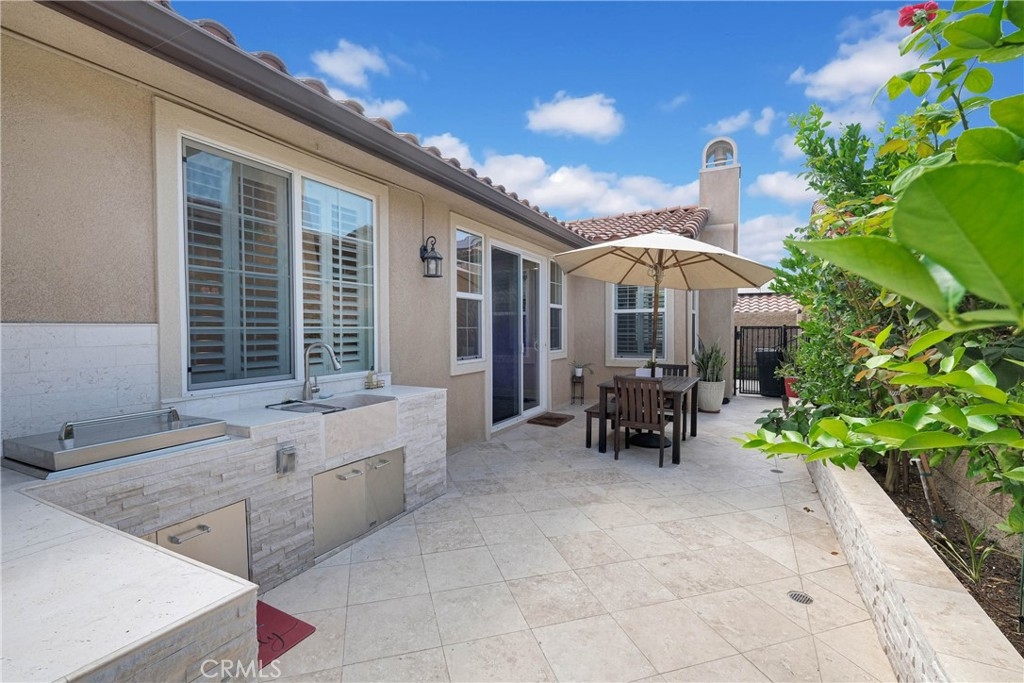 Immaculate Single-Story Home in Prestigious Villagio Community. Welcome to this beautifully maintained, private, single-story town home located in the heart of Yorba Linda’s sought-after Villagio community. Surrounded by top-rated schools and miles of scenic horse and walking trails, this 1,714 sq. ft. residence combines elegance, comfort, and convenience. Step inside to soaring ceilings, crown molding, and gorgeous hardwood flooring throughout. The versatile floorplan offers 3 bedrooms (one currently used as a den/office without a closet) and 2 bathrooms. The chef’s kitchen is a showstopper, featuring granite countertops with full backsplash, center island with bar seating, tremendous cabinet space, and premium stainless-steel appliances—including Samsung refrigerator, double ovens, gas cooktop, microwave, and dishwasher. Entertain with ease in the formal living room with fireplace, adjoining dining area, and optional den/office that could easily serve as a third bedroom. The primary suite offers a walk-in closet, private sliding glass door to the backyard, and a spa-like bathroom with dual vanities, soaking tub, and separate shower. Additional highlights include a convenient inside laundry room with sink and cabinetry, a newly upgrades include: AC system, Engineered hardwood flooring throughout, wolfer stove and range hood, along with California Faucets fixtures in the kitchen and bathrooms including shower heads, Custom rolling pull-out kitchen cabinet drawers, Custom closet organizer in each bathroom, water softener and more. Enjoy the functionality of two single-car garages, both upgraded with epoxy flooring—one with direct home access and the other with a private door to the backyard. The outdoor living space is newly custom built for both entertaining and everyday relaxation, featuring a custom outdoor kitchen with sink, prep counter, stainless-steel storage and fireplace. Stone accents, tiled flooring, raised planters with fruit trees, and a spacious dining area with umbrella create a seamless extension of the home. Community HOA dues include use of the sparkling pool and spa, plus exterior home maintenance—including roof, paint, and termite coverage. With no Mello-Roos and award-winning Placentia-Yorba Linda schools (Mabel Paine Elementary, Yorba Linda Middle, and walking distance to Yorba Linda High), this home truly has it all.