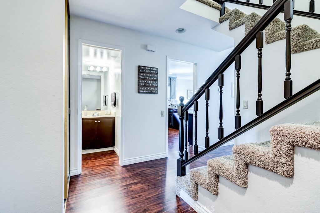 Welcome to the beautiful and very comfortable Yorba Linda Knolls community. This updated light & bright home is an end unit on a cul de sac with views of the hills from the upstairs, no neighbors above or below, and only 1 common wall with neighbors. Upgrades include Kitchen with stainless steel appliances, granite counter tops, tile back splash; dual pane windows throughout; dining room with sliding glass door access to covered patio; wood laminate flooring downstairs, new canned lighting; mirrored wardrobe doors and newer ceiling fans in the bedrooms. Master Bath with granite counter tops. Attached direct access two-car garage has built-in storage and convenient laundry hookups. New electrical box & HVAC ducting installed just 4 years ago. HOA amenities include 2 community pools & spas, club house, and green belts with access to nearby public tennis courts and Fairmont Knolls Park. This is an excellent opportunity in the heart of Yorba Linda. Has a Walk Score of 60 and is very convenient to Fairmont Elementary, Bernardo Middle School, Yorba Linda High School, St Martins Church, and Trader Joe’s!