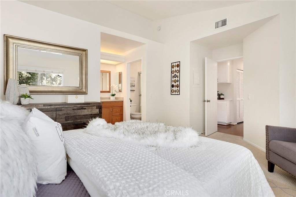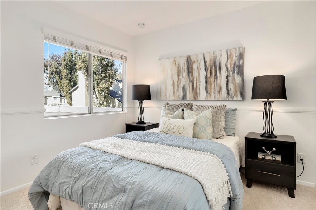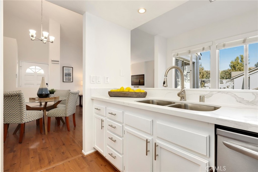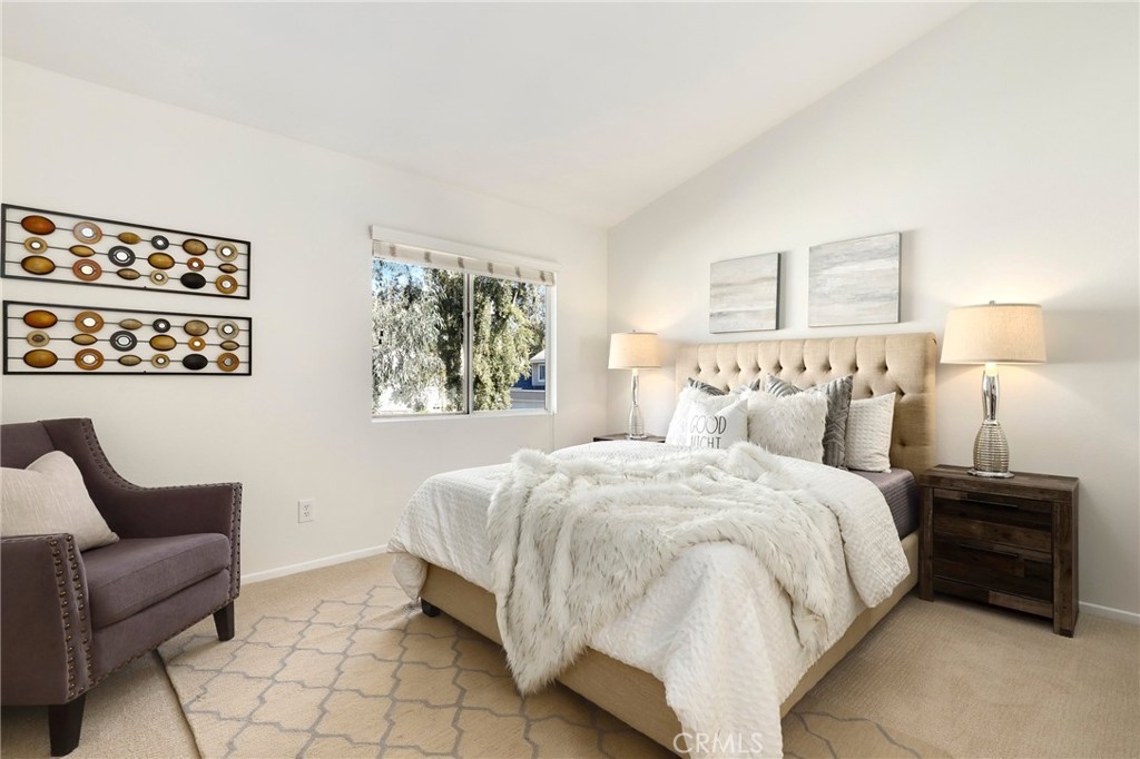 This beautiful home nestled in the Yorba Linda Villages features new interior paint of white bright modern tones, recessed lighting, upgraded laminate vinyl plank flooring. The large windows allow an abundance of natural light to illuminate the open floor plan. The living room boasts a cozy place and flows seamlessly into the dining area with a large sliding door that opens to the back balcony. The kitchen impresses with white cabinetry, Quartz countertops and stainless-steel appliance includes a gas single over range, microwave and dishwasher. Down the hallway is window bench seating, a full bathroom with Quartz countertops and inside laundry area. The spacious primary bedroom ensuite with a private bathroom, Quartz countertop vanity and shower. The secondary bedrooms has large mirrored wardrobe close doors. The 2-car detached garage, new door locks on the front and patio door. Enjoy the Community Amenities pool, spa, greenbelt and paths. Nearby shopping, restaurants, easy access to the 91, 55 freeway and toll roads. Must see this move in ready home just waiting for you!