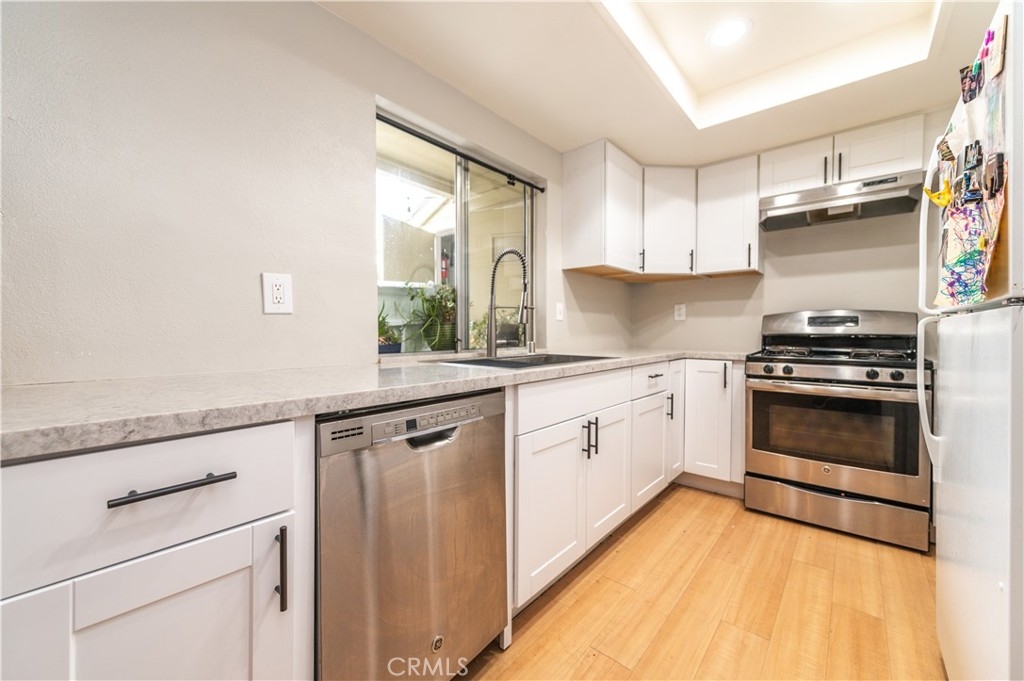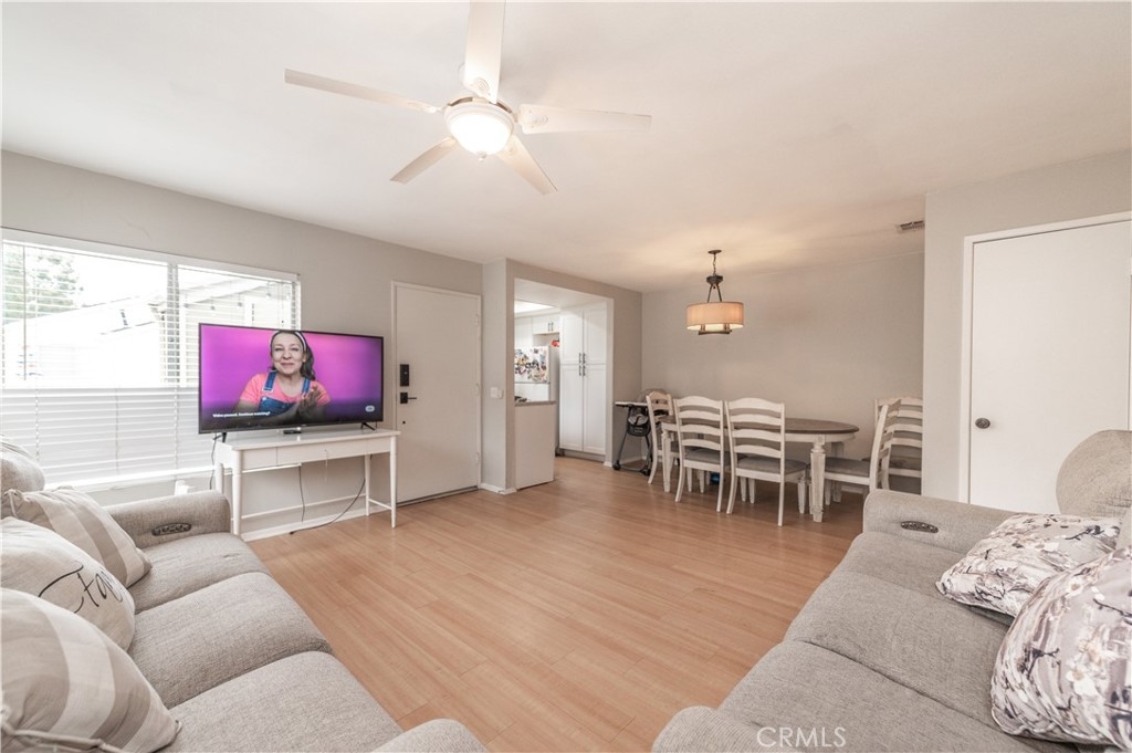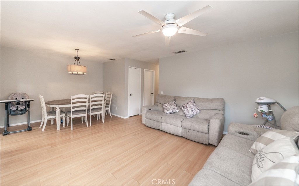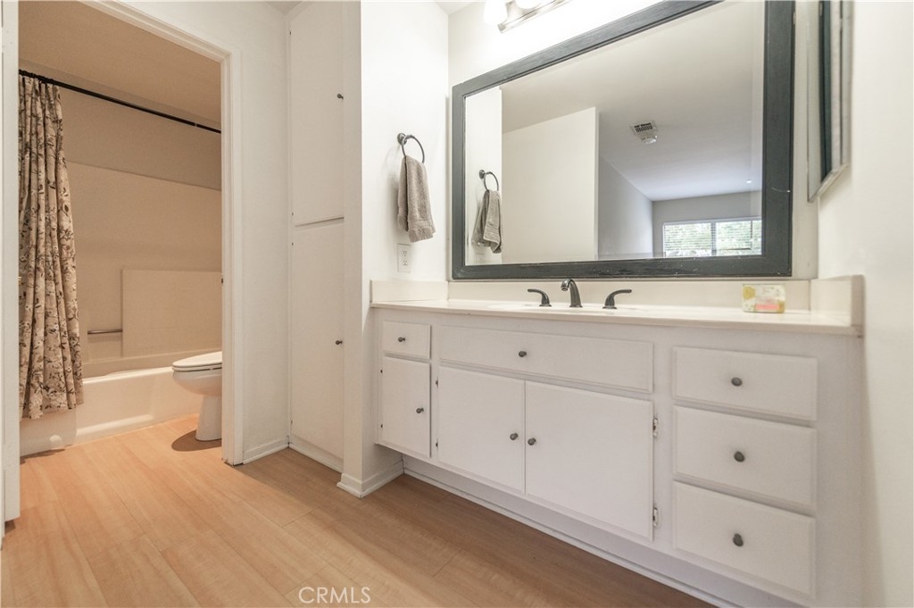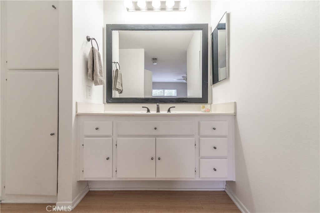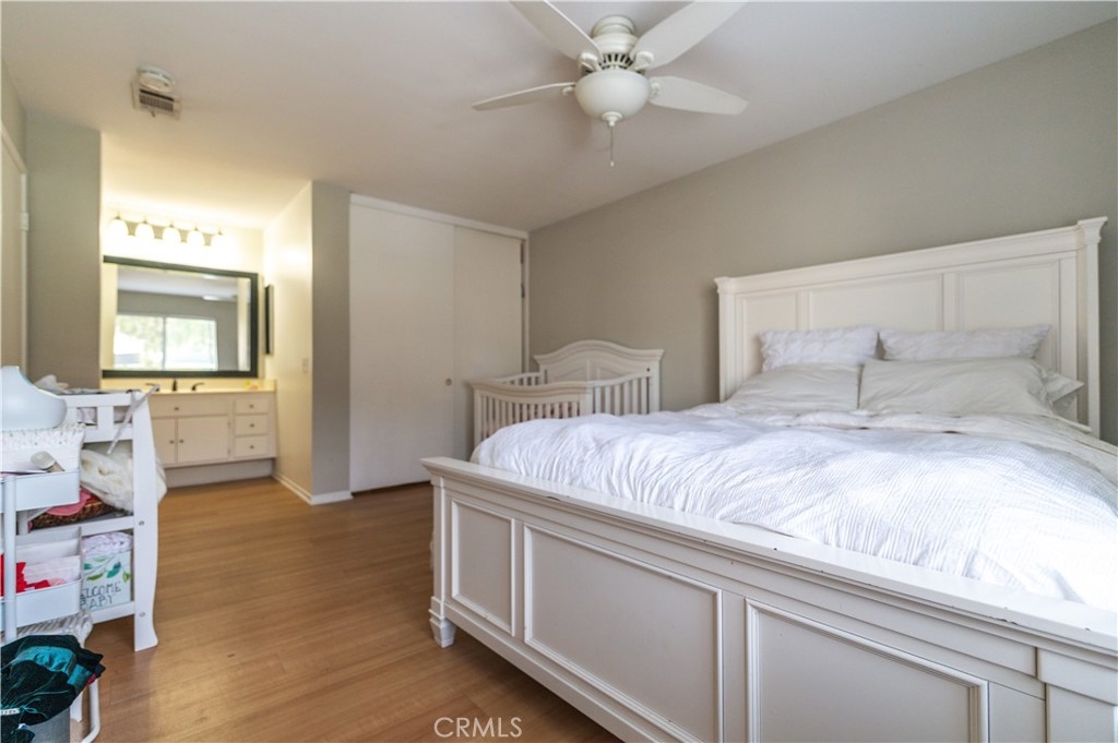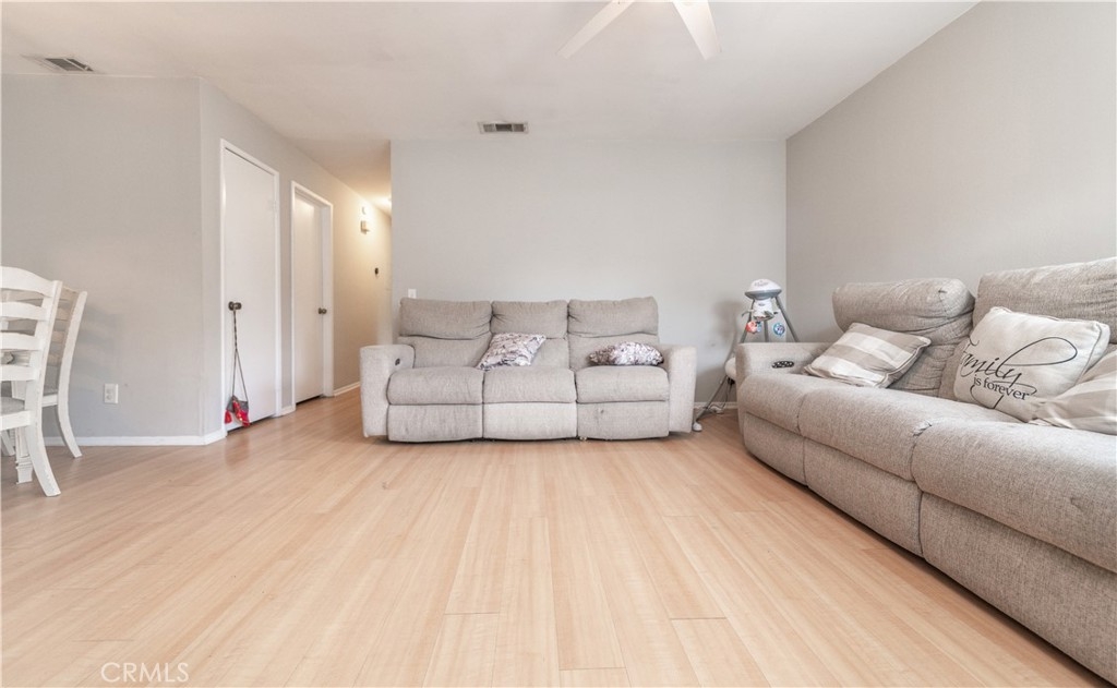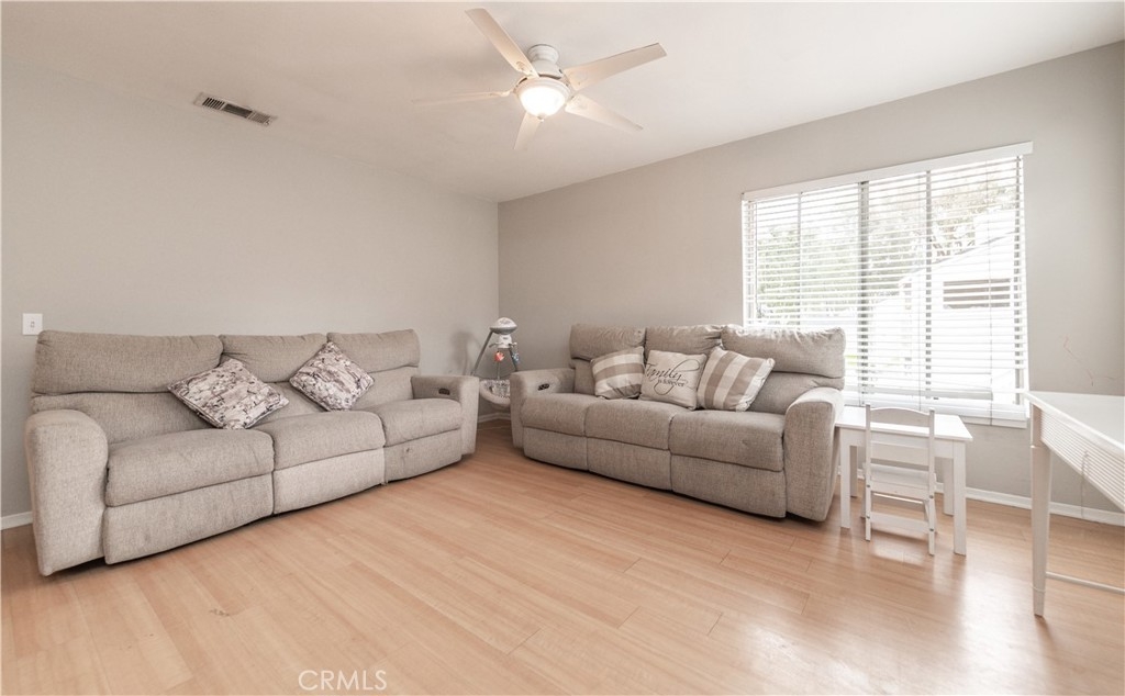 Presenting this beautiful 2-bedroom, 2-bathroom condo spanning 951 square feet of cozy living space. Situated as an upstairs end unit, it boasts a charming small front patio. Upon entering, the abundant natural light streaming through the windows immediately captures your attention, infusing the home with a welcoming ambiance. House is enhanced by vinyl wood flooring for comfort and appeal. A good sized kitchen featuring upgraded countertops and a handy workstation sink equipped with a convenient drying rack. Additionally, the kitchen has upgraded with beautiful white wood cabinetry, perfect for fulfilling your daily gourmet needs. One of the bathrooms was gently remodeled with upgraded countertops as well, showcasing modern fixtures and finishes that enhance the condo's overall aesthetic. Additional property highlights include a conveniently located laundry hookup near the front patio, two generously sized bedrooms, ceiling fans in the living room and both bedrooms and two car garage downstairs just a few steps away. HOA Covers water, trash, and insurance, clubhouse, playground, volleyball and BBQ areas. Nestled within the esteemed Yorba Linda school district, this property offers not only comfort but also access to top-tier education.