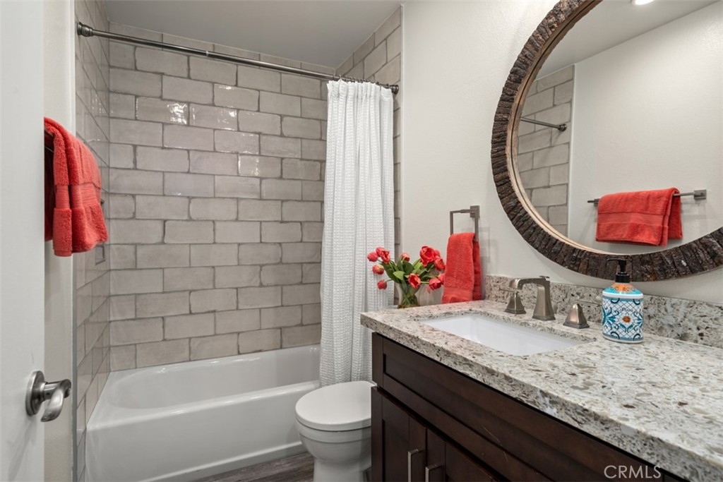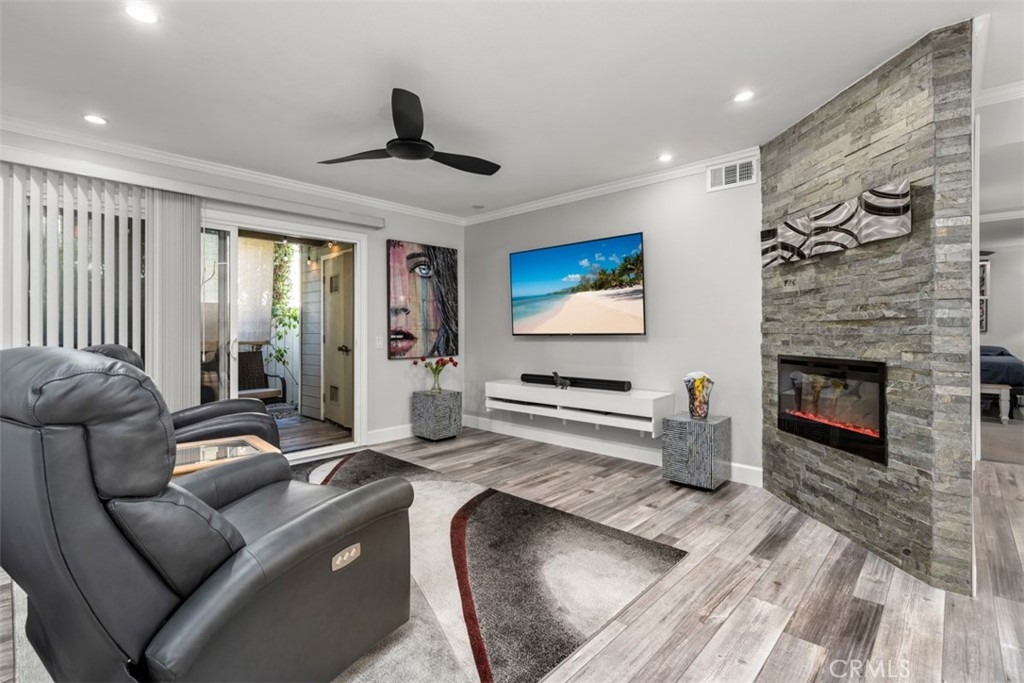 Completely remodeled 2-bedroom 2-bath condo is conveniently located in the desirable Yorba Linda Villages community. The open floor plan creates plenty of room for entertaining and highlights the fully upgraded kitchen, dining and living room space! Both bathrooms have new vanities with self-closing cabinets and drawers, quartz counters and all new fixtures; the Master bath has a barn door with a beautiful walk-in shower. New luxury vinyl flooring and paint throughout, new recessed lighting and ceiling fans, electric heater fireplace, new A/C - too many upgrades to list- a real “must see”! Two car garage, in-unit laundry. All the conveniences of a single-family home without the upkeep. Schedule an appointment today- this will go FAST!