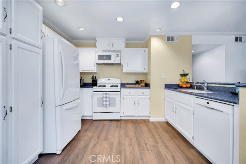 Welcome to this charming end-unit in the Yorba Linda Villages community! This lower-level unit is conveniently located across from the clubhouse and pool, and provides ample parking for residents and their guests! Just a short distance from the front door is a community park as well! Stepping inside, you are greeted with an open floor plan and beautiful ceramic tile "wood" floors. The living room has an inviting fireplace and the slider leads out to your own private patio. This unit provides an oversized primary bedroom with upgraded en suite bathroom, as well as 2 additional generously sized secondary bedrooms and one additional upgraded bathroom. The hallway is large and provides a warm, open feeling. Close to shopping and freeway access, and part of the PYLUSD, this is one you don't want to miss!