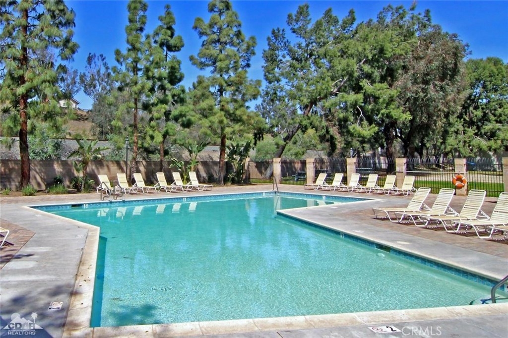 Largest floor plan in ideal location with 3-bedrooms, 2-bathrooms, Upgrades include New Quartz counters, sinks & fixtures in kitchen and both bathrooms. NEW Oven & Range. NEW wood like laminate flooring in living area and NEW carpeting in bedrooms. NEW Ceiling Fans and Blinds throughout. Freshly painted. Upper level offers higher ceilings, more light, extra peace & quiet and greater security! Bright open floor plan, fireplace, cathedral ceilings, private covered patio with view, individual laundry room, master bedroom w/full-wall closet & private bath, spacious 2-car detached garage w/ample storage just steps from condo. Nearby Swimming pool, Spa, and Clubhouse. There's also a playground, picnic & BBQ area and lush greenbelts. Adjacent Hiking & bike trails too. Easy freeways access and convenient to shopping, dining, Savi Ranch & Costco. Award winning schools: Bryant Ranch, Travis Ranch & New Yorba Linda High. *No Mello Roos