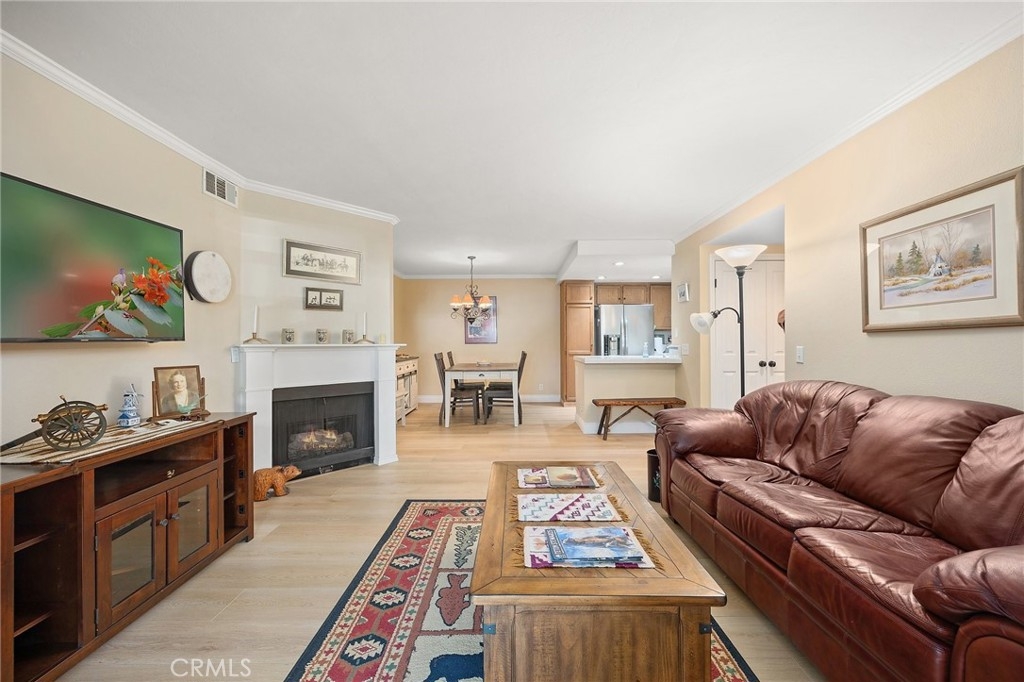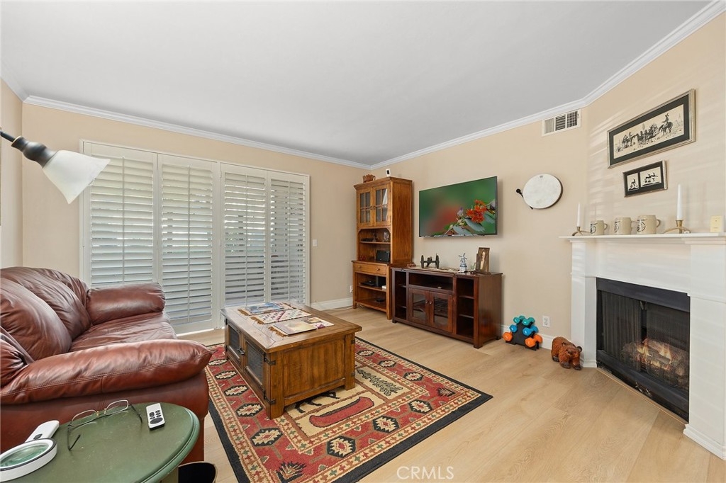 BEAUTIFUL 2-Bedroom Condo in the highly desirable community of The Villages in Yorba Linda! This DOWNSTAIRS unit features an open floor plan with plenty of natural lighting. Upon entry, you are greeted by the large living room with plenty of room to entertain and features a cozy fireplace, sliding glass door with plantation shutters that provides access to the brick patio and laundry area. Adjacent to the living room is the spacious formal dining room that is open to the kitchen. The kitchen features plenty of cabinetry for storage, a gas range with overhead stainless-steel microwave and recessed lighting. The primary suite features spacious bedroom area, walk-in closet, vanity area and walk-in shower. Secondary bedroom and has access to beautiful, full bathroom with its own beautiful vanity and a tub/shower combo. Additional features of the home include new flooring in the main areas of the home, new interior paint and 2 car detached garage. HOA amenities include a clubhouse, pool, spa, playground, volleyball court, BBQ area, greenbelt walking paths, and includes water and trash services. Conveniently located close to the 91 and 241 freeways, bike trails to Featherly Regional Park, Savi Ranch Shopping Center, and some of the best schools in the Placentia-Yorba Linda Unified School District! Come see this home and make it yours today!