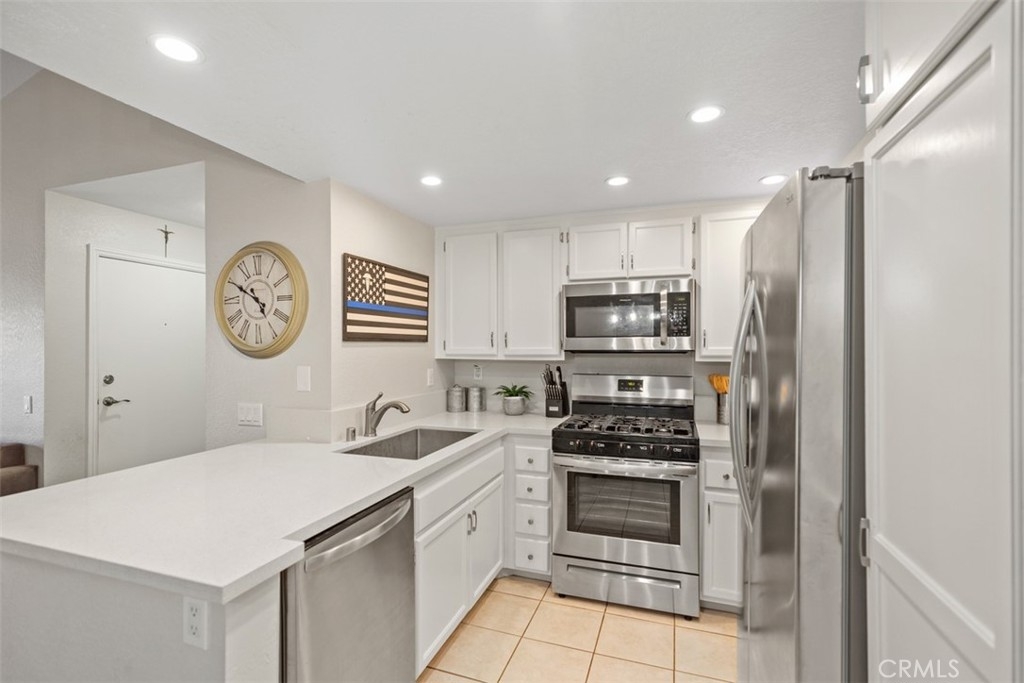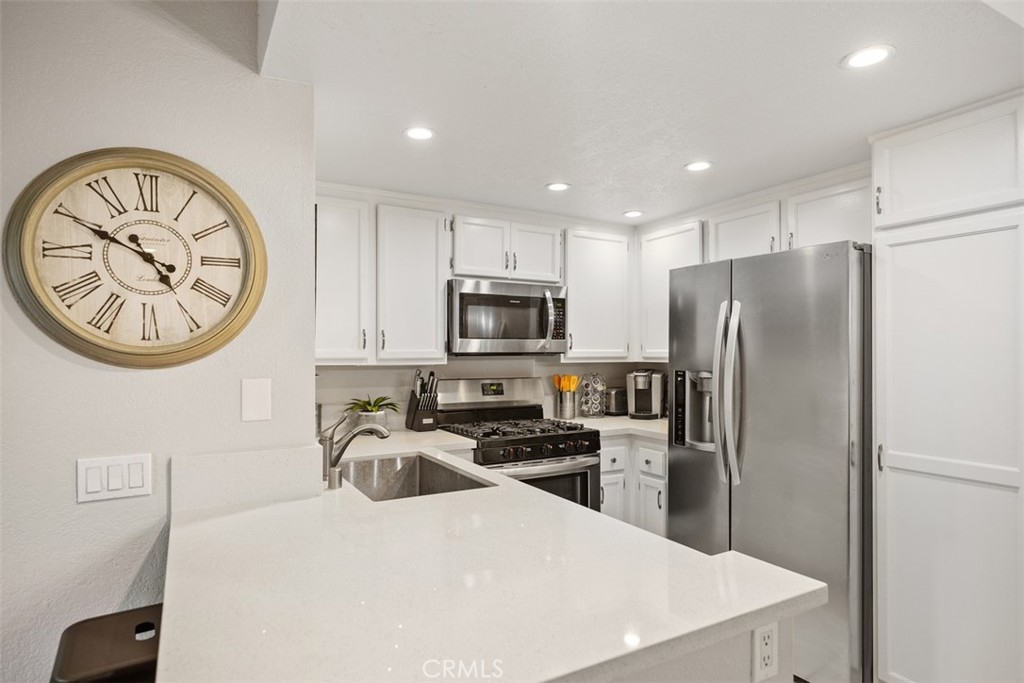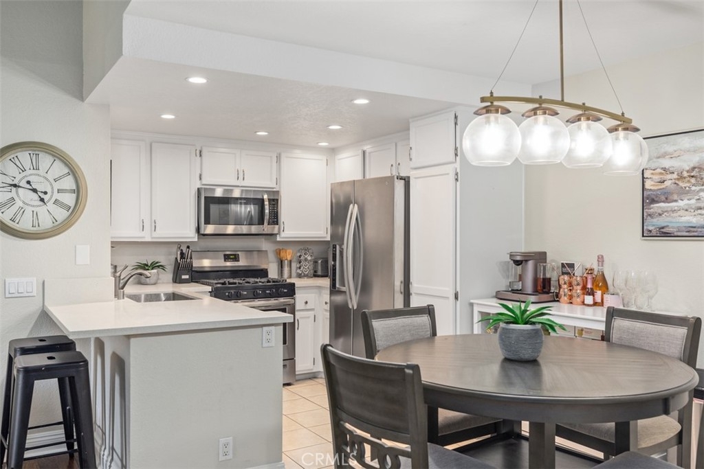 Great Home located in the beautiful community of The Villages. Fantastic end unit with view. Beautiful kitchen with new quartz counter tops, newer stainless appliances, including dishwasher, oven, microwave and refrigerator. Everything has been recently painted within the last year, with fresh neutral colors and newer door and cabinet hardware. New Nest thermostat and Ring doorbell installed. 2 large bedrooms with laminate floors, newer ceiling fans with remote and lots of natural light. 2 spacious baths, hall bath has a tub shower combination and the master bathroom has a nice size shower. Both have tile floors, newer vanities, fresh paint and mirrors. Front entrance opens to a spacious living room with a fireplace and vaulted ceilings. Go out the slider onto a private patio with room to relax and unwind. Enjoy the views of the surrounding trees. Off the patio is a large utility room with space for a full size washer and dryer. Detached 2 car garage is a short distance away and has an opener for added convenience. Super close to the community clubhouse, volleyball courts, playground, pool and spa. Enjoy the miles of outdoor trails. Easy access to freeways and toll roads. Award winning Placentia Yorba Linda Unified School District. HOA offers pool, spa, volleyball, playground and more. HOA also covers water sewer and trash. Roof recently replaced by HOA as part of maintenance.