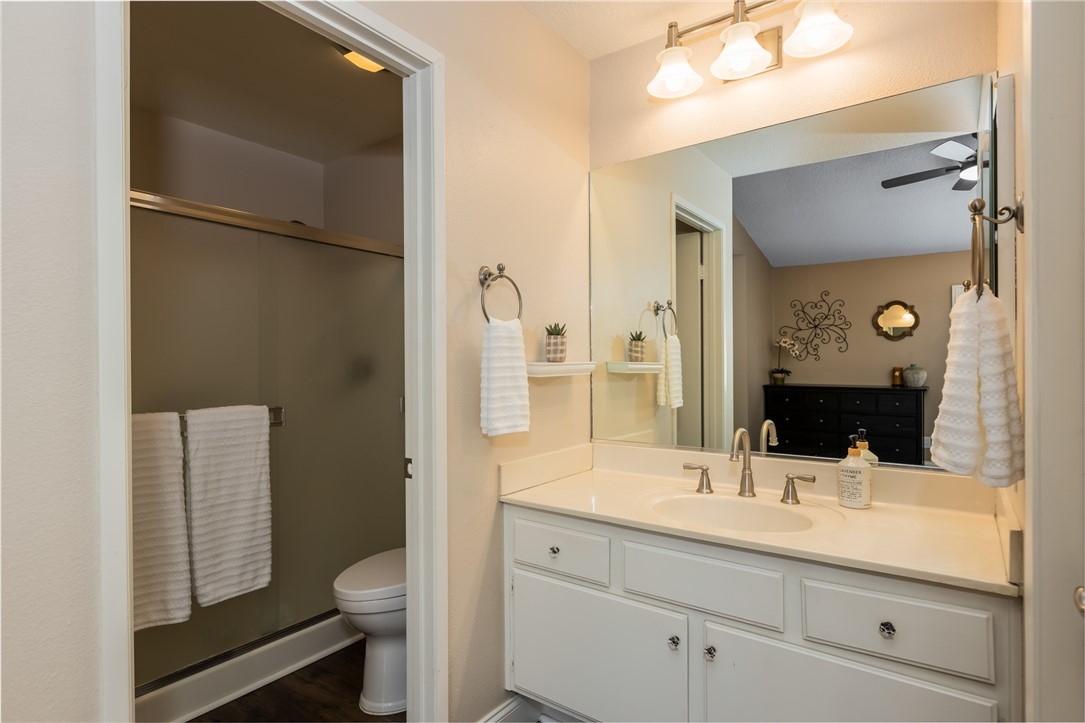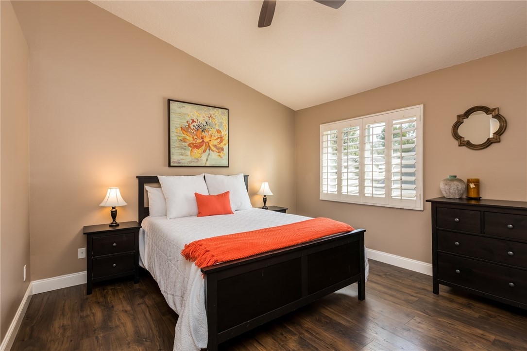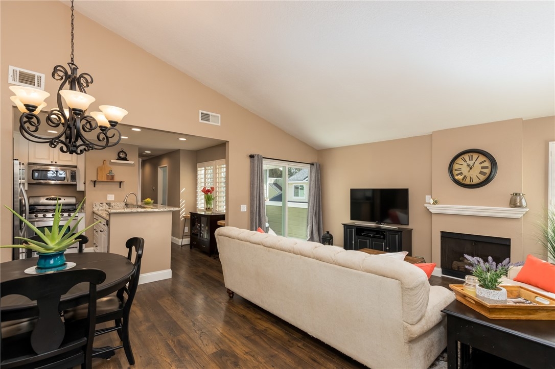 Welcome home to the land of Gracious Living, Yorba Linda! As you enter this amazing open floor plan condo you will first notice the vaulted ceiling and luxury vinyl flooring throughout. You will be welcomed by the dining room and living room both open to the light and bright kitchen. Living room offers plenty of light, gas fireplace and access to your private patio. Kitchen has beautiful white cabinets, granite counter tops and breakfast bar. This floor plan is perfect for entertaining. Down the hall is the large primary bedroom with en suite bathroom and walk-in closet. The secondary bedroom offers a full wall of closets with plenty of storage and located across the hall from the guest bathroom. Additional features of this home are the conveniently located in-unit laundry and whole house fan. The large private two car garage is located on the bottom floor of the building. Don't miss out on this Orange County Condo with award winning schools and close to the 91 freeway for easy commute.