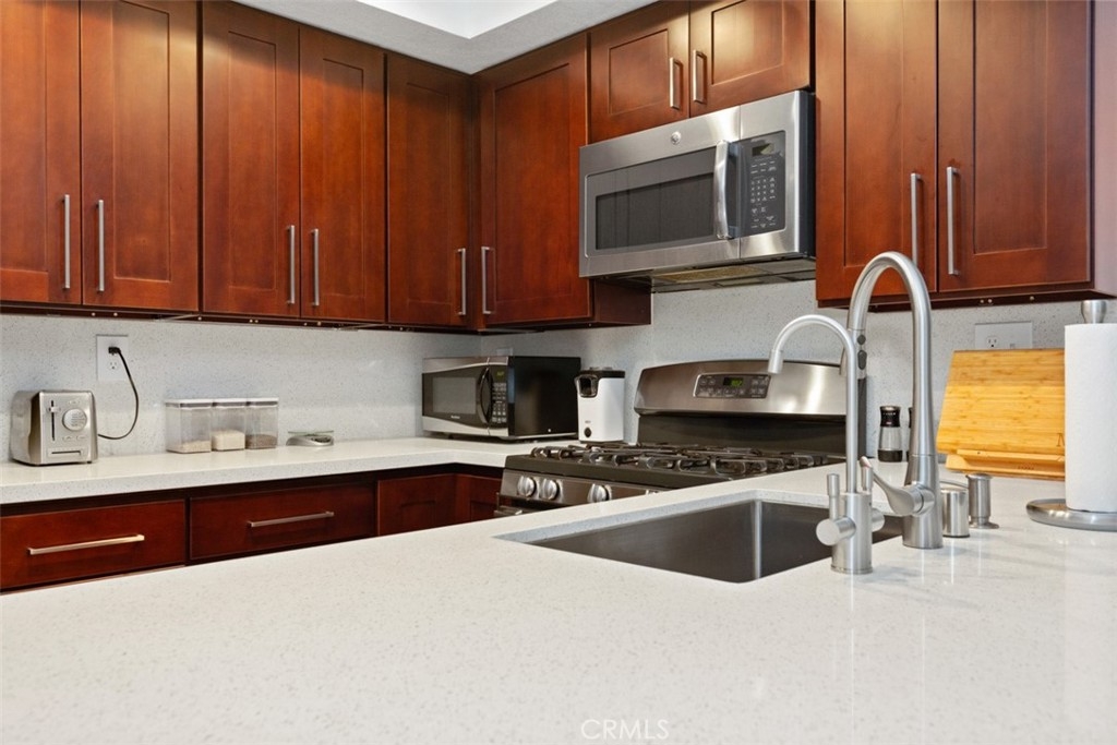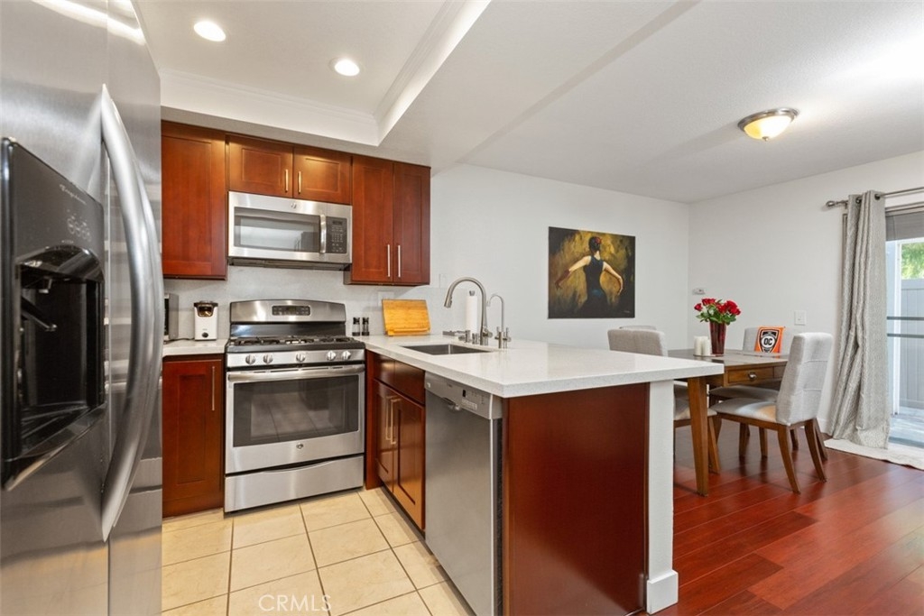 Welcome to this beautiful well maintained home In ”Yorba Linda Villages”. With 2 beds 2.5 baths near Santa River and minutes away from 91 fwy access this 2 story home features all bedrooms upstairs with each its own individual restroom and plenty of bedroom space. Downstairs includes mondernized kitchen with quartz counter tops updated cabinets tile flooring with appliances included. Adjacent from kitchen is small dining area leading to sliding door and out to private patio. Living room has laminate flooring with guest restroom downstairs, attached 2 car garage with epoxy flooring and washer dryer hookups. Community features playground, pool, street parking and minutes away from “The Rinks”. This home is move is move ready!!!