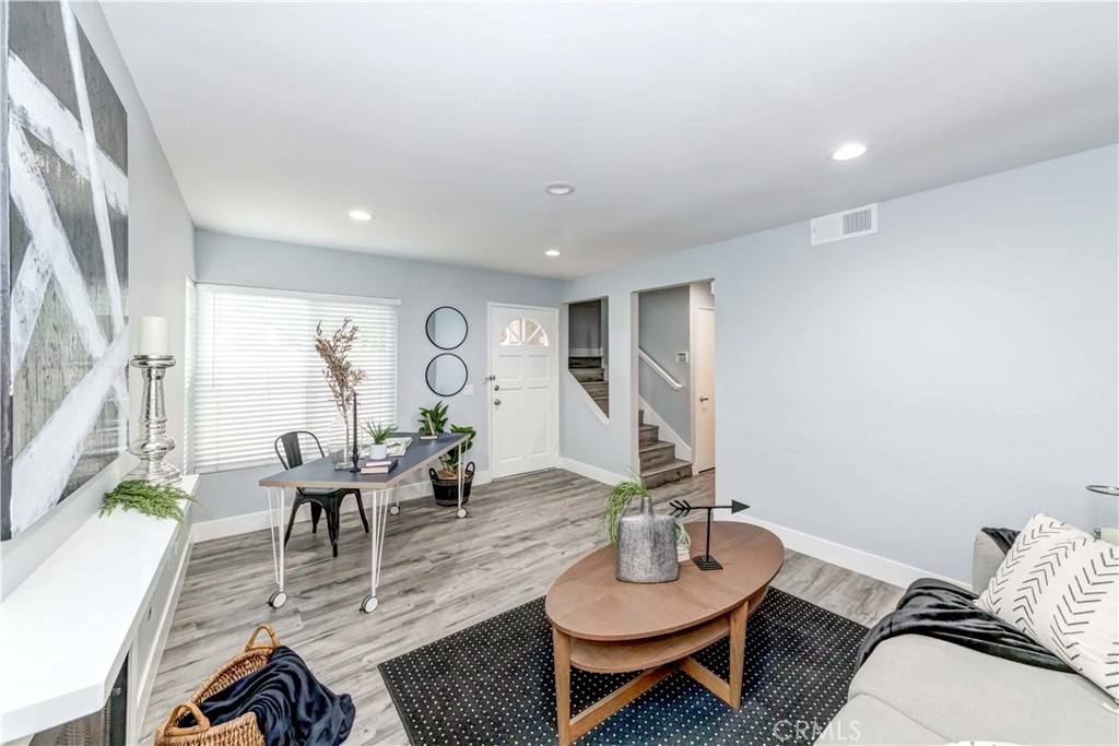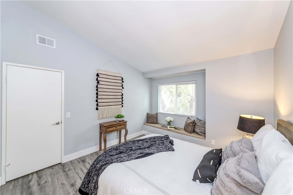 End Unit Condo located in the highly desirable neighborhood of Villages of Yorba Linda is 2 Beds, 2.5 Baths with 1,124sqft of spacious layout plan. Two Story unit with private patio with recently newly installed vinyl fence. Spacious enough for Patio Table and BBQ area for friends and families. Waterproof Laminated Flooring throughout the place with recess lights in the living room and kitchen. Two Master Suites with high ceilings upstairs with extra storage spaces in each room. Downstairs bathroom can be conveniently used for guests and fireplace in the living room to warm the family. Direct access to the 2-car garage from the kitchen. The kitchen has an extra pantry cabinets which are great for storing everything you need in the kitchen. The HOA has a large pool area, picnic areas, Community Room for events, and padded play area safe for even little kids. HOA also includes water and trash. This Villages is located near the 241 Toll Road and 91 Freeway, Costco and many more famous shopping areas. Walking and Biking Trails are right next to the community for morning jogs and afternoon walks. Award Winning School district includes Yorba Linda High School, Travis Ranch and Bryant Ranch Elementary School.