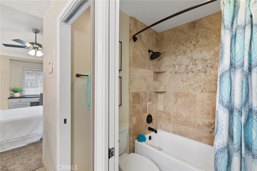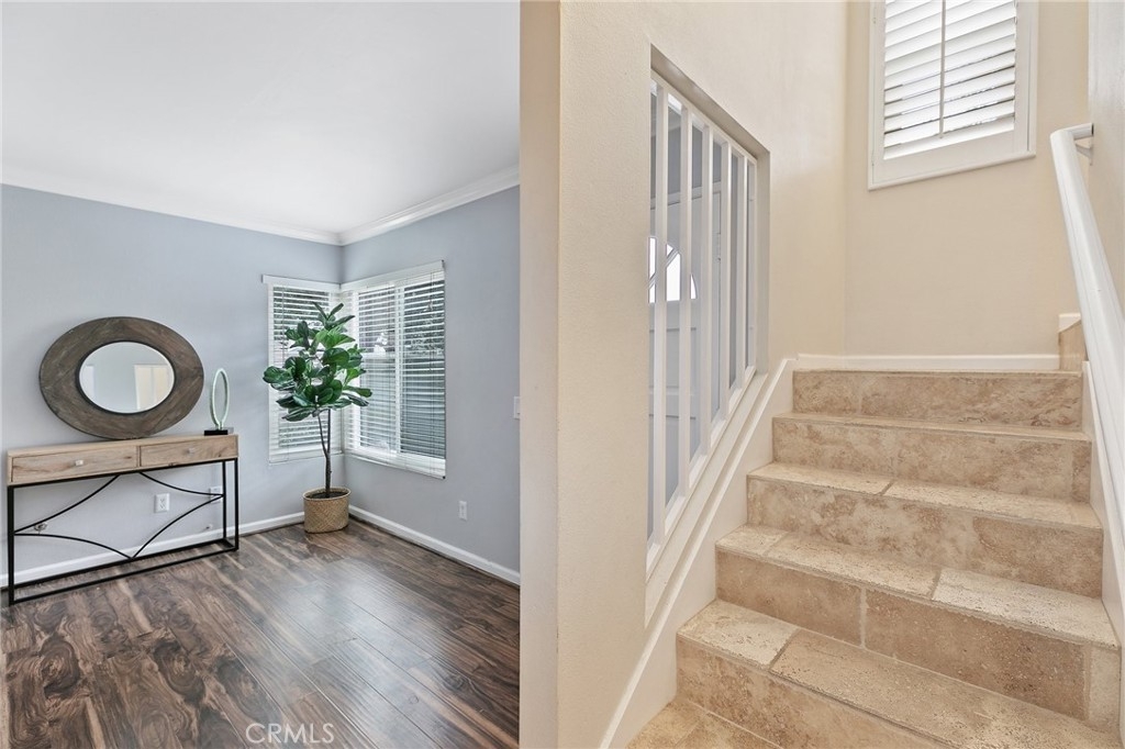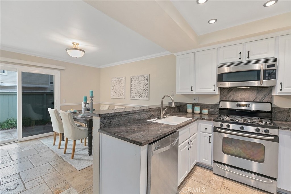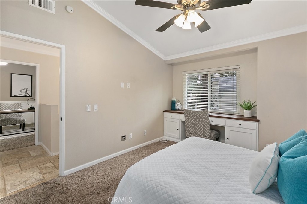 This light and bright end unit condo in The Villages in Yorba Linda is stunning! Enjoy the privacy with nobody above you, or below you. This home showcases a cozy fireplace in the living room that leads to a bright kitchen with recessed lighting and stainless appliances. The kitchen boasts bright white cabinets with granite counter tops and breakfast bar. Dining area has a convenient slider to the large front patio and beautiful wainscoting with chair rail. You'll also find a half bathroom downstairs that is perfect for guests. Up the tumbled travertine stairs you will find 2 bedrooms with vaulted ceilings and ceiling fans. Both bedrooms have their own full bathrooms! Master bathroom has a tub-shower combo and larger closet space. 2 car attached garage with direct access has epoxy flooring and garage cabinets for lots of storage. Washer and dryer hook-ups in garage. Minutes from shopping, dining, and freeways. Come enjoy Yorba Linda, "The Land of Gracious Living"