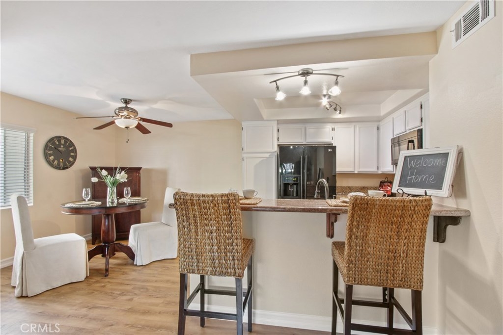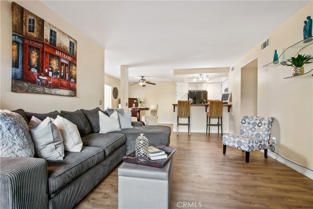 Beautiful 3 bedroom , 2 bathroom condo located in the Villages , Yorba Linda. This Unit is located on the bottom level ,end unit. Great location and 2 car garage very close to unit. The back patio has its own laundry area with washer and dryer hook-ups. All the bedrooms have ceiling fans, newly installed flooring throughout most of the home, base boards , new paint in some areas. Family room area is open to kitchen , fireplace .