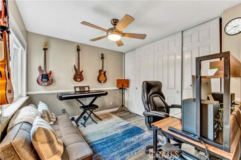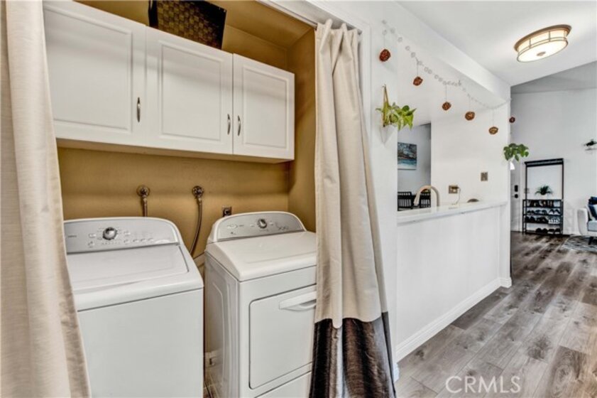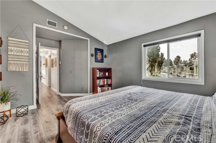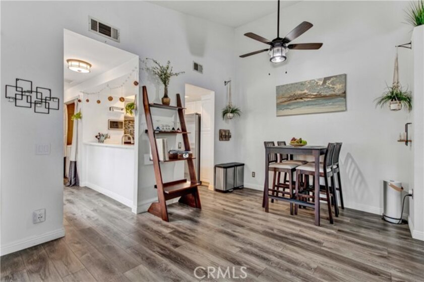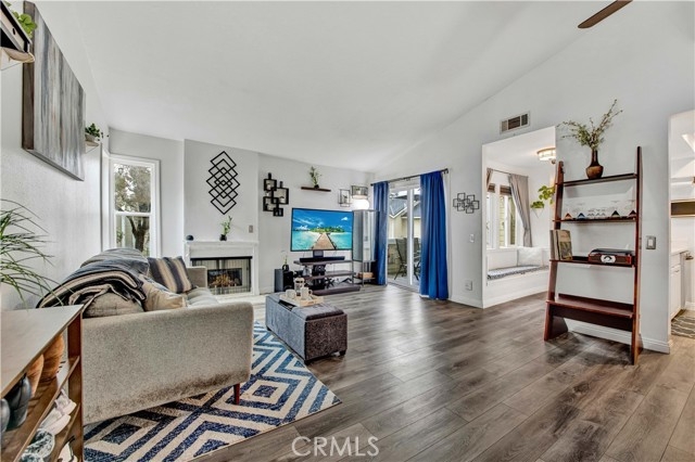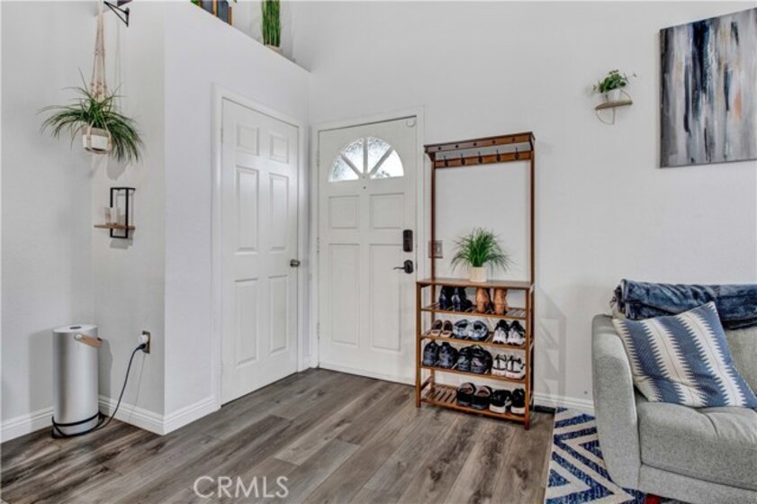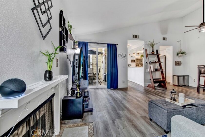 Gorgeously upgraded 2 bed, 2 bath condo with vinyl flooring, cathedral ceilings, open floor plan, recessed lighting, white cabinetry, dual pane vinyl windows, newer paint throughout, custom kitchen backsplash, newer baseboards, private patio with community views, in unit laundry, tons of closet space, & all in a prime location of Yorba Linda feeding the best schools of Placentia-Linda School District. Start with newly painted waterproof flooring, new stairs, new railing, & new light fixtures into the covered foyer entrance with smart lock and new door. Then into the totally open living room with cathedral ceilings, pristine vinyl plank flooring, privacy film on front door window, wood hearth fireplace, tons of natural light from the sliding doors to your private patio with newly painted floor, & opens to the dining area with newer lighted ceiling fan. Kitchen is totally remodeled with custom designer back splash, white cabinetry, Samsung stainless steel fridge with ice maker (2020), Samsung stainless steel gas stove (2020) with matching stainless steel vent, Samsung stainless steel dishwasher, new garbage disposal, new water pressure valve behind fridge, new paint, extra deep sink, stainless steel faucet, indented ceiling with recessed lighting, & more natural lighting from the large windows with new screens over reading bench with hidden storage. Hall bathroom is gorgeous with shower over tub, pedestal sink, newer mirrors, and medicine cabinets built in. Master bedroom is extra spacious with more cathedral ceilings, shelved storage area, new paint, lighted ceiling fan, tons of natural light plus beautiful private bathroom with extra spacious walk in tiled shower with glass doors, designer tile inlays, built in tiled shower seat, insets, vanity with tons of storage, & walk in closet with built in storage & new light fixture. Secondary bedroom is used as an office & is also large with more natural light from large windows plus has new 2 tone paint, lighted ceiling fan, & extra large closets. HOA has gorgeous pool, clubhouse, playground, &walking trails throughout. Newer water heater (2023), new light in closet by door, smart thermostat (2023), 2 car garage spot with fresh paint on ceiling and walls, new hose & hose storage, new outlet covers throughout the house with silver covers, new 2nd hanging storage rack, manual garage lock on the outside of the garage door in case of power outages so owner can access garage/cars, & tons of guest parking. A must see!