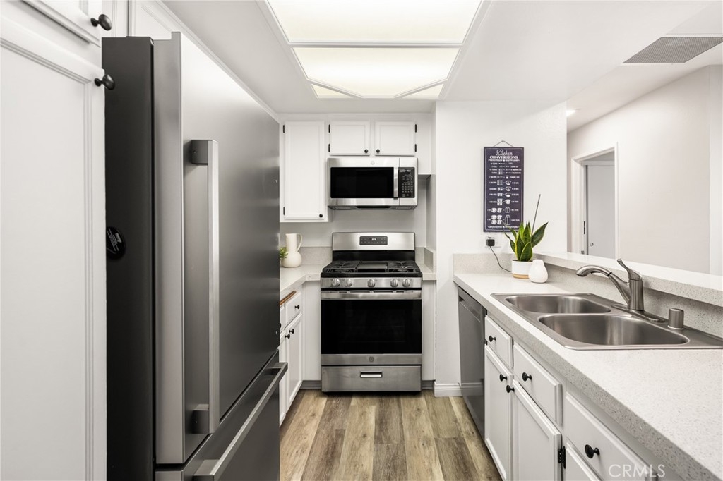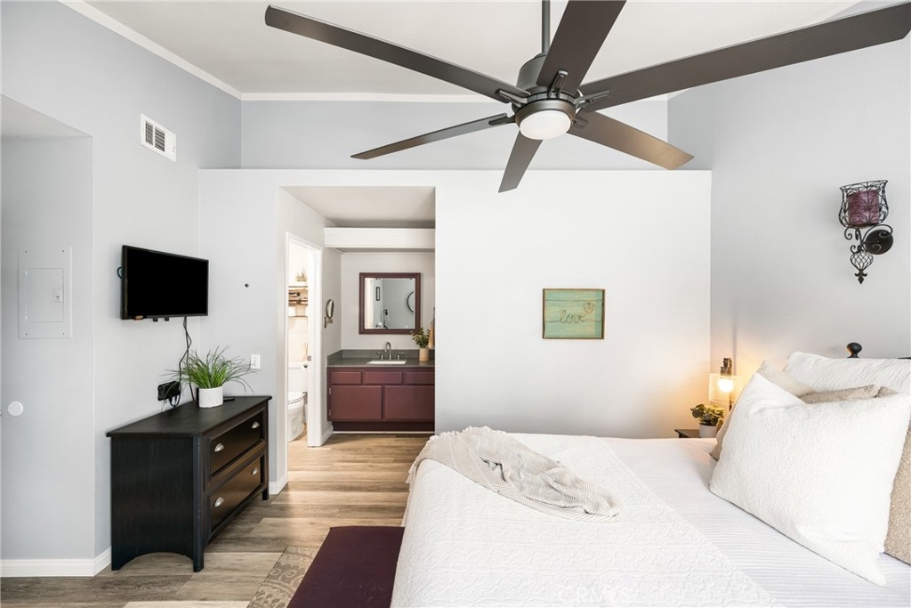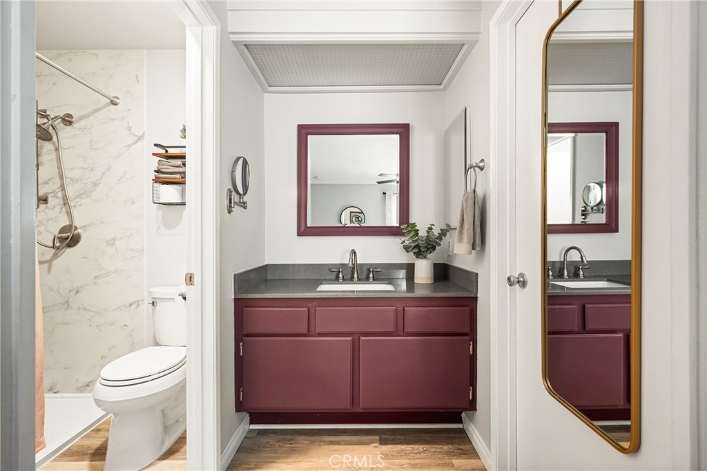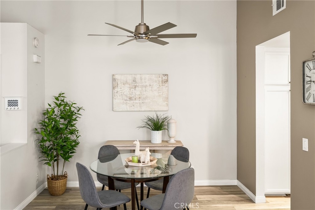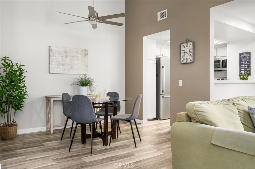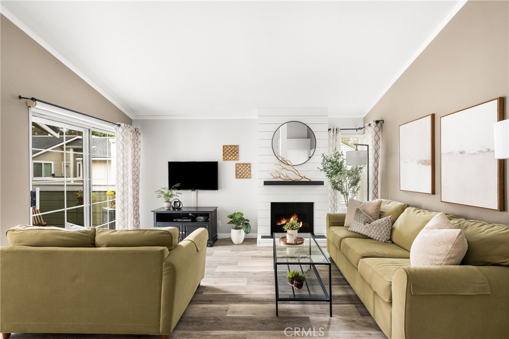 Tucked away in the peaceful canyons and surrounded by lush trees, this beautiful upstairs, renovated 2-bedroom, 2 bathroom condo in Yorba Linda Villages offers the perfect mix of modern comfort. This spacious layout, is an end unit that let's in tons of light and creates a brite and airy vibe! The remodeled kitchen has a newer gas stove and microwave, pull out drawers in the cabinets with an opening to enjoy a view of your patio balcony. From your living room step out to your private patio balcony to relax and enjoy the fresh air and sunshine. The living room has a cozy gas fireplace, crown moldings and custom paint. Heading down the hallway is a very cute window seating area to again, enjoy the patio balcony. The first bedroom boasts a 3 door oversized closet, window blinds, ceiling fan and laminate flooring. The hall bath has a tub/shower and has been remodeled. The large primary bedroom with crown molding, custom shutters, ceiling fan, laminate flooring and a large walk in closet. The primary bathroom remodeled with a separate toilet room and a large walk in shower. The home has been updated with style and thoughtfulness to ensure a comfortable living space. In this quite community you can enjoy the sparkling pool, spa, clubhouse and tot lot area. Located next to walking trails, Santa Ana River Trail for biking and walking. Yorba Linda award winning school district. Plus, a detached 2-car garage with plenty of storage cabinets and parking. This condo is the ideal retreat for anyone looking to enjoy a peaceful lifestyle with easy access to nature and all the comforts of modern living!