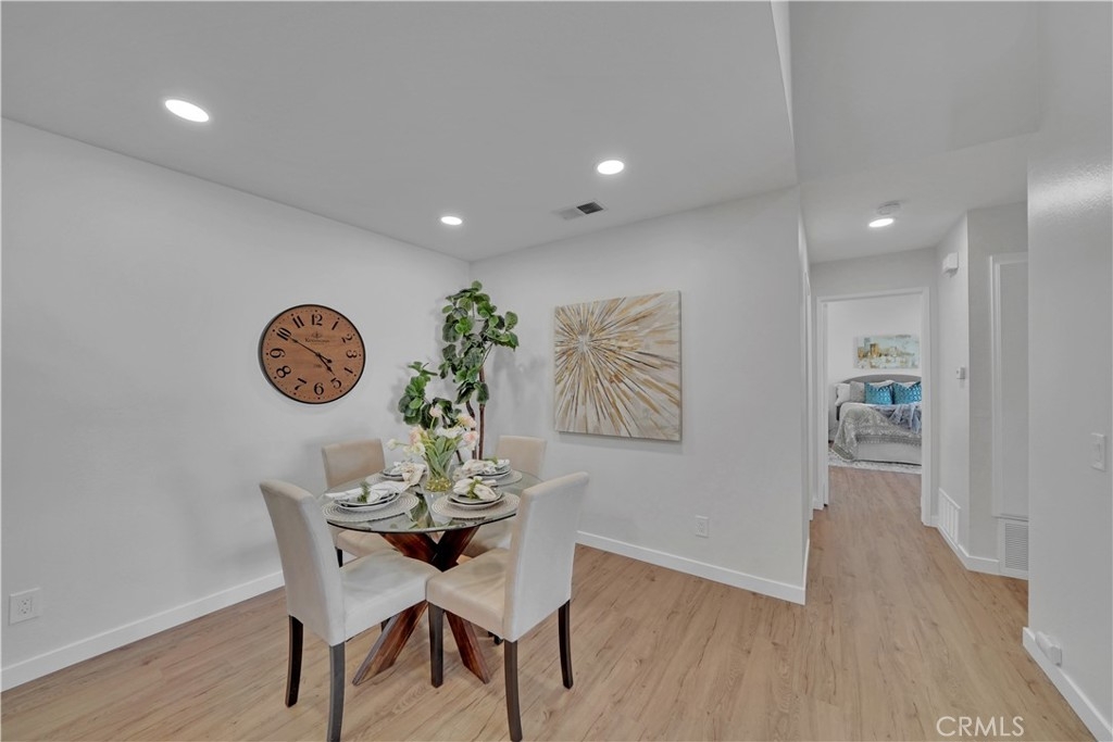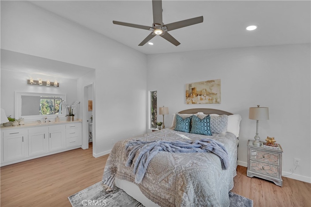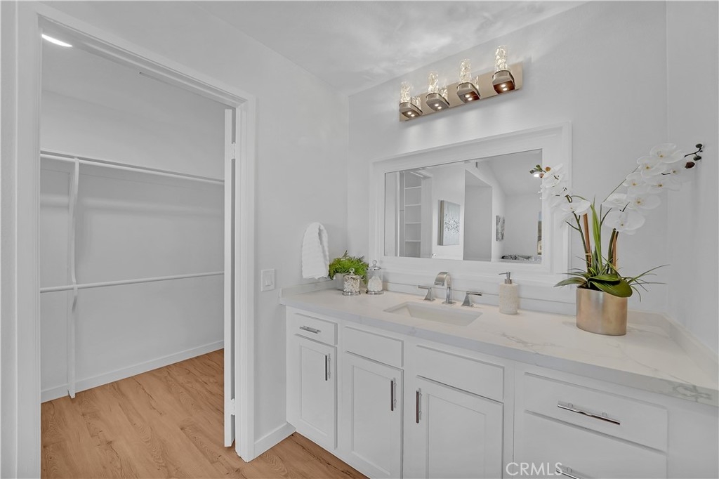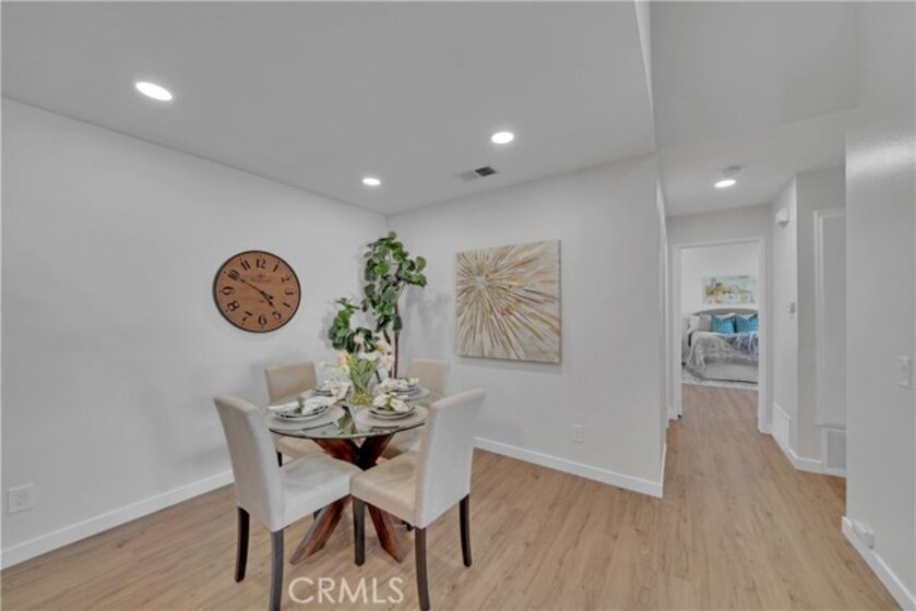 Remodeled Gem in The Yorba Linda Villages. This upper unit two bedrooms, two bathrooms with detached two car garage has recently been completely remodeled. New smooth ceilings with recessed lighting and beautiful luxury vinyl floors, new baseboards, and crisp white paint. Newly remodeled kitchen with white shaker cabinets with stainless door pulls, quartz countertops with breakfast bar, white subway tile backsplash, deep stainless steel sink with chrome faucet and stainless steel appliances: dishwasher, gas range with 5 burners and built in microwave . Hall bathroom has new white shaker vanity, quartz countertop with shiny chrome faucet, new vanity mirror & wall sconce, low flow toilet, glass shower/tub enclosure with white subway tiles & niche. Master Bedroom has recessed lighting, new baseboards, ceiling fan, vaulted ceilings, freshly painted spacious walk in closet with built in shelves. Master bathroom has white shaker cabinets, quartz countertop & backsplash, new vanity mirror, new wall sconce, low flow toilet, sliding frameless glass shower door with chrome hardware, white subway tile walls with custom pebble tile floor. Located in the coveted Placentia/Yorba Linda Unified School District.