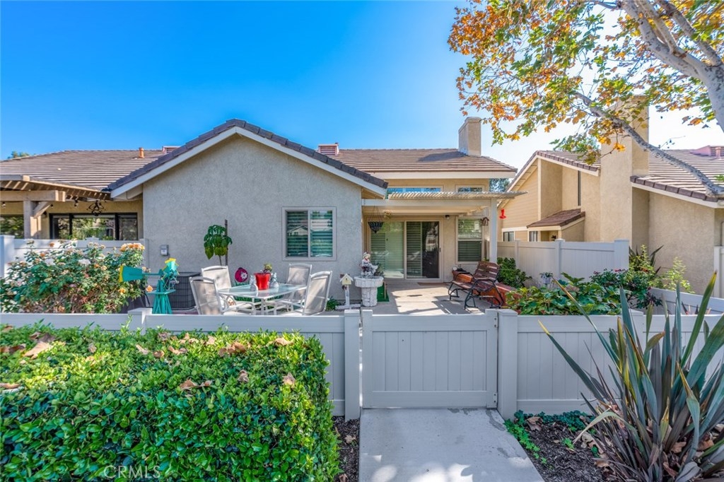 Charming single level condo located in highly desirable area of Meadow Woods. This beauty features 2 bedrooms, 2 baths and almost 1200 sq ft of living space, custom plantation shutters throughout, wood Pergo floors, vaulted ceilings, baseboards, ceiling fans, new insulated windows, new interior doors, large master bedroom with high ceilings and walk in custom closet, remodeled master bath with gorgeous walk in shower, open floor plan with kitchen opening to large family room. The garden patio is perfect for relaxing or entertaining your family and friends. Great neighborhood close to schools, shopping, restaurants and freeway close.