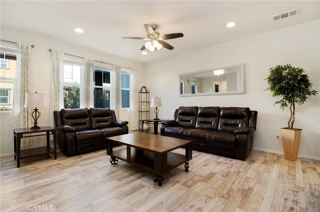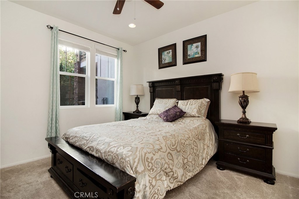Come and see this beautiful home in the highly desirable Heritage Crossings neighborhood that can be yours. Built in 2016 and exceptionally well maintained the property features 3 levels and an open concept living plan. The fabulous kitchen features lots of upgrades including granite counters, stainless steel appliances, breakfast counter, and pantry. The upgraded kitchen is the very center of the home and opens to a bright and spacious dining and living room. The large master suite is on the 3rd level with a walk-in closet, master bathroom with dual sinks, glass framed shower and separate soaking tub. Master Suite is comfortably located next to the secondary bedrooms at this level. Laundry is located close to the bedrooms and has built-in cabinets. On the 1st level there is a 2 car garage and another bedroom with a full bathroom - ideal to give your guests comfort and privacy or use as your office. Roomy, private front yard and patio just perfect for entertaining! Enjoy meeting your friends and neighbors in the community using the common areas including an outdoor fireplace, built-in BBQ, and picnic tables. Great schools close by, parks, and shopping. This is the only home currently for sale in this amazing family community! The property is located on the 2nd row from the outside and does NOT back at the Yorba Linda Blvd.