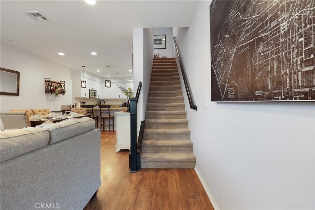 Welcome to the Heritage Crossings Community built in 2015 and located in the beautiful city of Yorba Linda. This modern tri-level condo has been updated over the years and is in turnkey condition for its next owners. On the main floor, you'll find a bright open floor plan in the living room and kitchen, a full guest bathroom, and bedroom or office. Open up the door to step outside to your own private balcony, with treetop views of the quiet courtyard. Upstairs on the third level, you'll find a master suite with a large walk-in closet. Laundry room is conveniently located on this floor, just down the hall. The third bedroom upstairs also has its own on-suite bathroom, a truly perfect layout. The garage has plenty of room for two cars parked tandem, or you can use it for a rec room and storage. Also included is a tank less water heater. The community offers a well maintained BBQ area with picnic tables, and a grassy area for your family and friends, plus a second outdoor social area with a grand fireplace and fountain to enjoy. This Yorba Linda condo offers award-winning schools, nearby CSU Fullerton & other colleges, close to freeways, variety of shopping, dining & entertainment options including the new Yorba Linda Town Center. With low HOA dues this is a great place to call home!