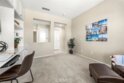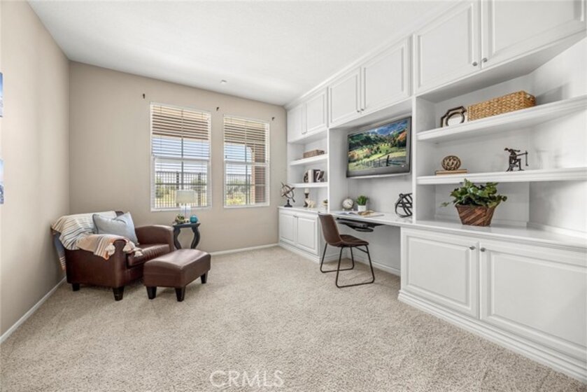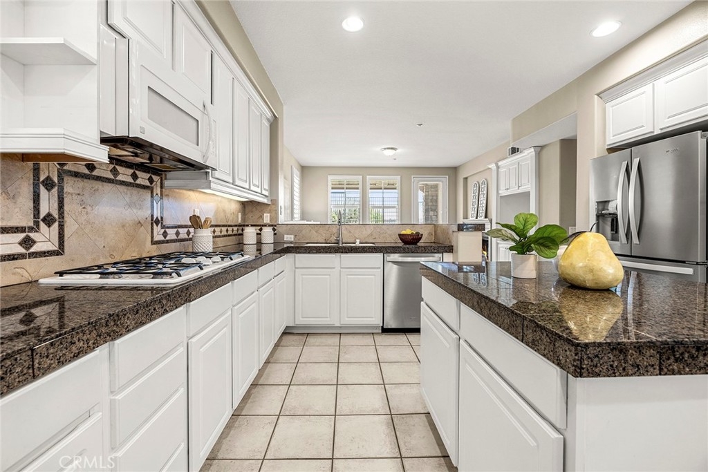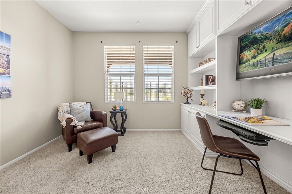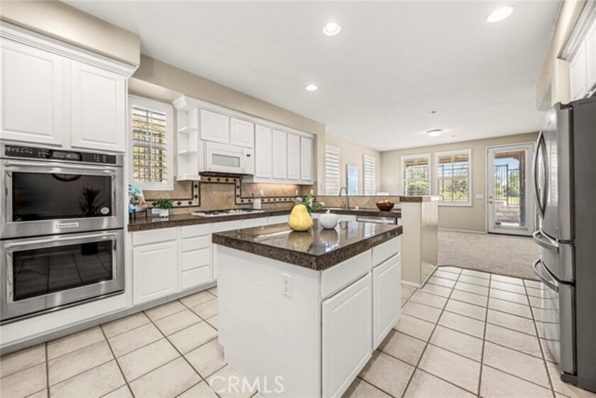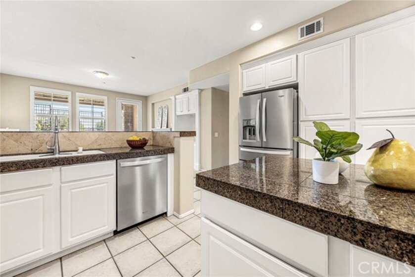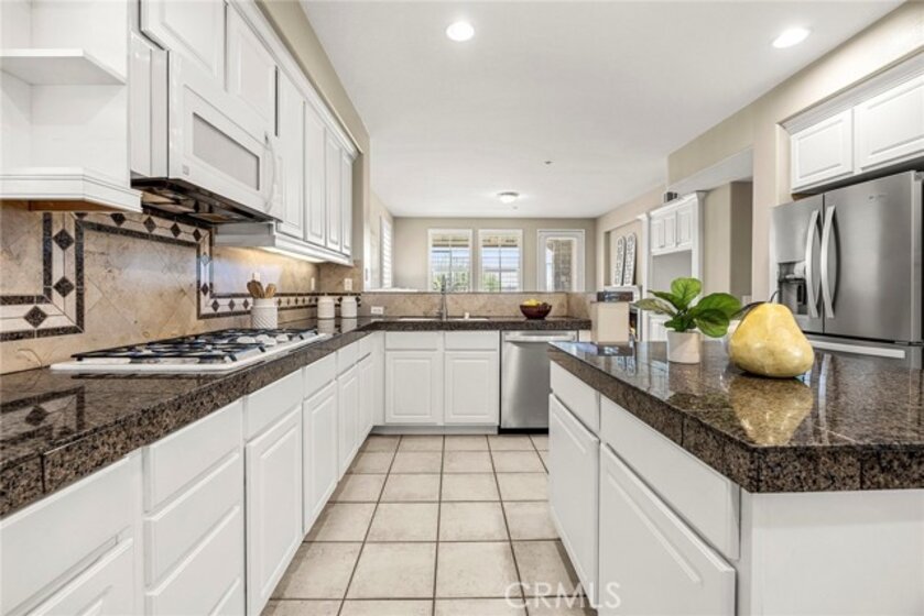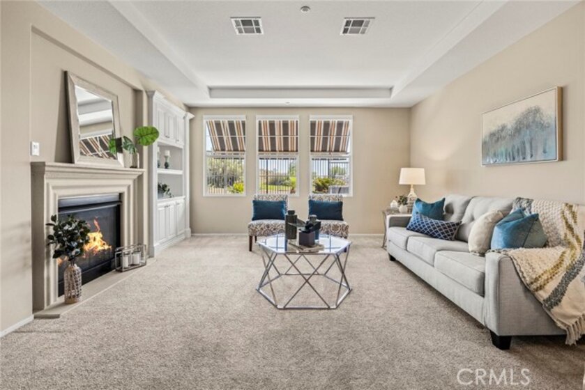 Nestled within the highly desirable Canterbury enclave of Vista del Verde in Yorba Linda, this beautifully maintained single-level residence offers a rare blend of comfort, privacy, and scenic golf course views. Perfectly positioned along the fifth fairway, the home enjoys tranquil surroundings and an open, airy feel that is hard to find. A private gated entry welcomes you into a charming courtyard, setting the tone for the inviting interior. Inside, the thoughtfully designed floorplan showcases effortless flow and abundant natural light, with immediate sightlines to the lush outdoor setting. The kitchen is both functional and stylish, featuring a 5-burner cooktop, KitchenAid double ovens, and a full suite of appliances. A generous center island provides ample prep space, while the breakfast bar opens to the living area—ideal for casual dining or entertaining. The adjacent living and family rooms are anchored by a striking two-sided fireplace, creating a warm and cohesive gathering space. This home offers three bedrooms, including a versatile office with custom built-ins that can easily serve as a guest room. The spacious primary suite is a true retreat, complete with a spa-inspired bath featuring dual vanities, a soaking tub, walk-in shower, and a large walk-in closet. Step outside to a full-length patio that captures sweeping golf course views—perfect for morning coffee or evening relaxation. Open space beyond enhances the sense of privacy and serenity. Additional highlights include a two-car garage, interior laundry room, and turnkey condition throughout. A rare opportunity to own a single-level home with golf course frontage in one of Yorba Linda’s most sought-after communities.