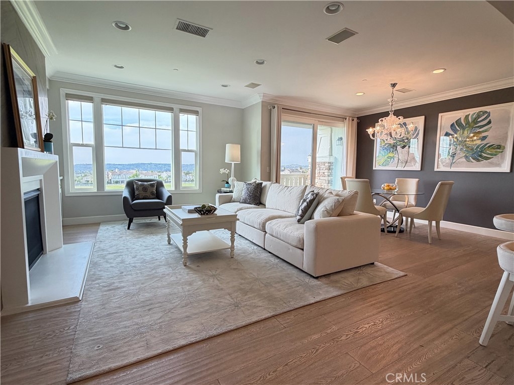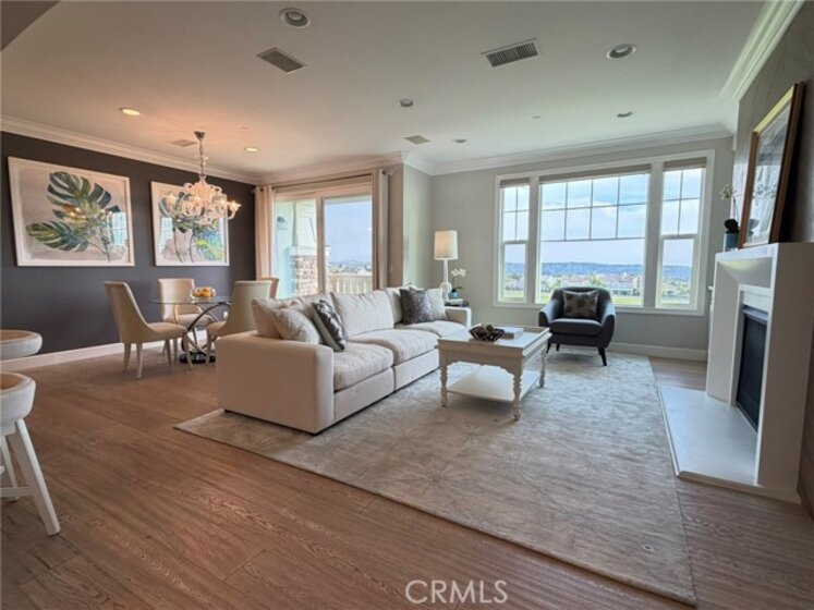 Spectacular views from this desirable townhouse located adjacent to Black Gold Golf Club. This thoughtfully designed 3-level home offers maximum privacy, with each bedroom featuring its own en-suite bath. Featuring 3 bedrooms and 3.5 bathrooms, the home is tastefully upgraded with hardwood flooring, crown molding, and custom window coverings throughout. The living room includes custom built-in cabinetry, while the gourmet kitchen boasts a center island and top-of-the-line appliances. The spacious primary suite offers a luxurious bath and a large walk-in closet. Located in the highly desirable Vista Del Verde community with amenities including pool, spa, clubhouse, and fitness center. Situated within an excellent school district.