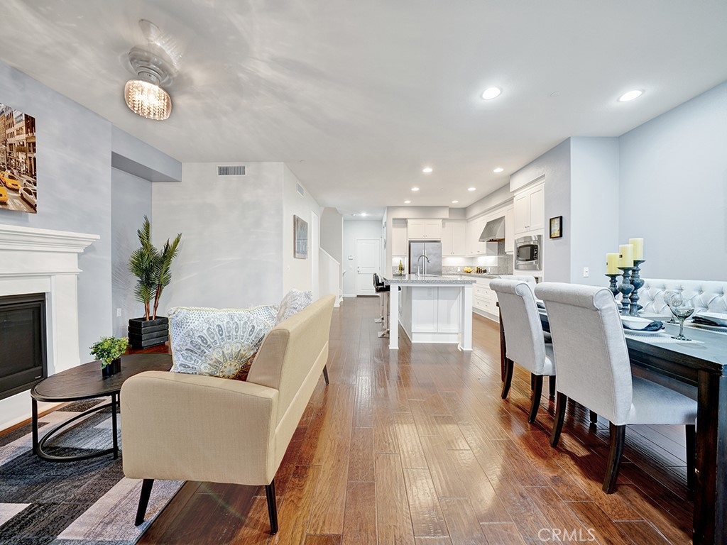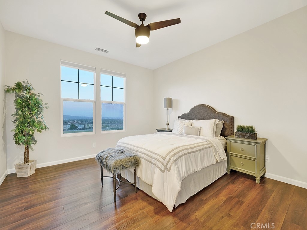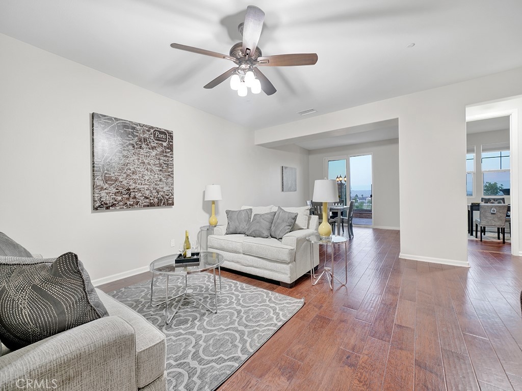 Introducing an amazing premium lot luxury townhome with unobstructed panoramic view in the highly prestigious Palisades of Vista Del Verde. Built in 2013, this beautifully appointed home offers the biggest and one of the most desirable floor plans in the community with wood flooring throughout the whole house. As soon as you enter the house, you will be stunned by the gorgeous views and Open concept chef's kitchen which has a huge center island, granite countertops and stainless steel appliances, adjacent to family entertainment Great room. Whether you are relaxing on the patio, or entertaining in the open kitchen, you can enjoy an open view of the city lights, sunrise/sunset, Catalina Island and Disneyland fireworks from every floor of the house. It backs to a city park where you can walk the dogs and play with the kids. This Plan 6 model unit offers 4 bedrooms, 3.5 baths and a huge bonus room on the bottom floor which can be the fifth bedroom or an office or media room, or a family theater. There is one bedroom with full bath on the bottom floor which is ideal for the in-laws/guests. The spacious master bedroom suites with a professionally organized closet and freshly redone shower floor occupies half of the third floor which provides great privacy. On the other side of the third floor are two other secondary bedrooms. The laundry room is equipped with hook ups for washer and dryer, a utility sink and lots of cabinets. You will be delighted with the nice size two-car garage with epoxy flooring, lots of cabinets/storage, tankless water heater, water softening system and direct access to the home. Home is located ideally near top rated schools, the exclusive Black Gold Golf Course, entertainment , restaurants, the new town center and library. Enjoy the community's resort style amenities: recently renovated sparkling pool and spa, BBQ , picnic area, clubhouse, playground, recreation room, gym, meeting room, green belts, walking trails, and so much more! Yorba Linda is rated as one of the top five safest cities in California. Don't miss this rare opportunity to make it your home . Please don't forget to view our 3D virtual tour and video.