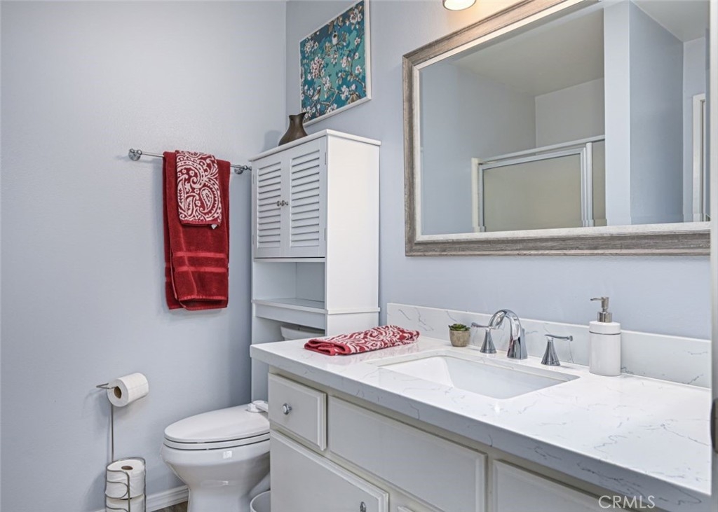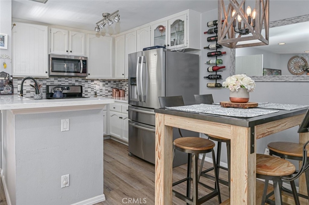 Live the good life in this gorgeous, remodeled upstairs unit nestled in the quiet complex of Kellogg Terrace. As you step through the entry door you'll be impressed by the open concept floorplan revealing a family room with a slider to the balcony and a dining room adjacent to the thoroughly modern kitchen. The recent remodel showcases a kitchen with new water proof vinyl plank floors, new stainless steel appliances, large SS sink, a gooseneck faucet, stunning glass tiled backsplash and recessed lighting. Recent upgrades include new vinyl plank floors gracing the entire home along with a freshly painted interior,, upgraded bathrooms with quartz countertops and new wood blinds. The nursery (second bedroom) has a door to the second bathroom which makes for a two MASTER floorplan with LARGE walk-in closets! The quaint balcony, roomy enough for a BBQ and bistro table, is the location of the laundry closet which fits a full sized washer and dryer! From the balcony enjoy the beautiful grounds of the exterior with green belts and mature trees. The community is well-maintained and recently underwent an exterior remodel with new siding, refinished patio decks, and paint. Other amenities include a pool, spa, playground and a large park area. Kellogg Terrace is nestled in the upscale city of Yorba Linda with it's award winning schools, easy freeway access, plentiful walking trails and parks and is close to shopping and restaurants. Welcome home!