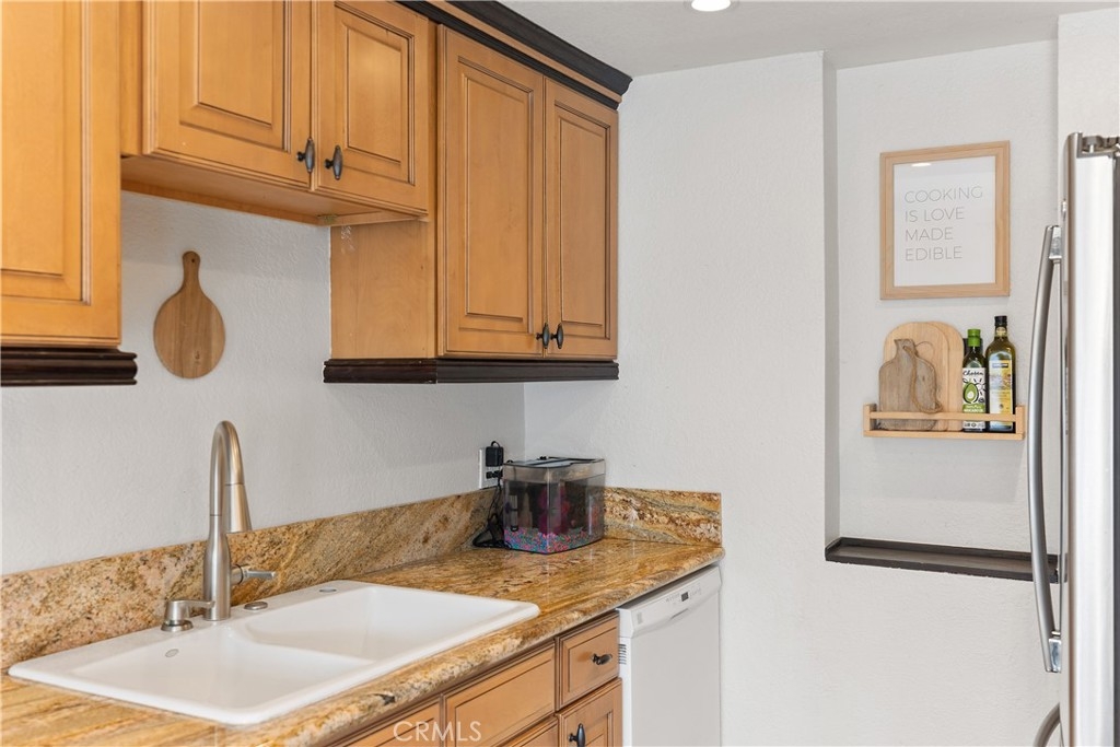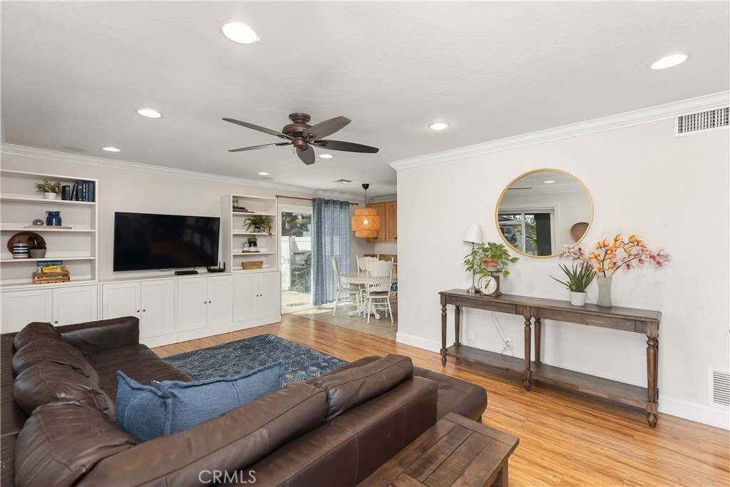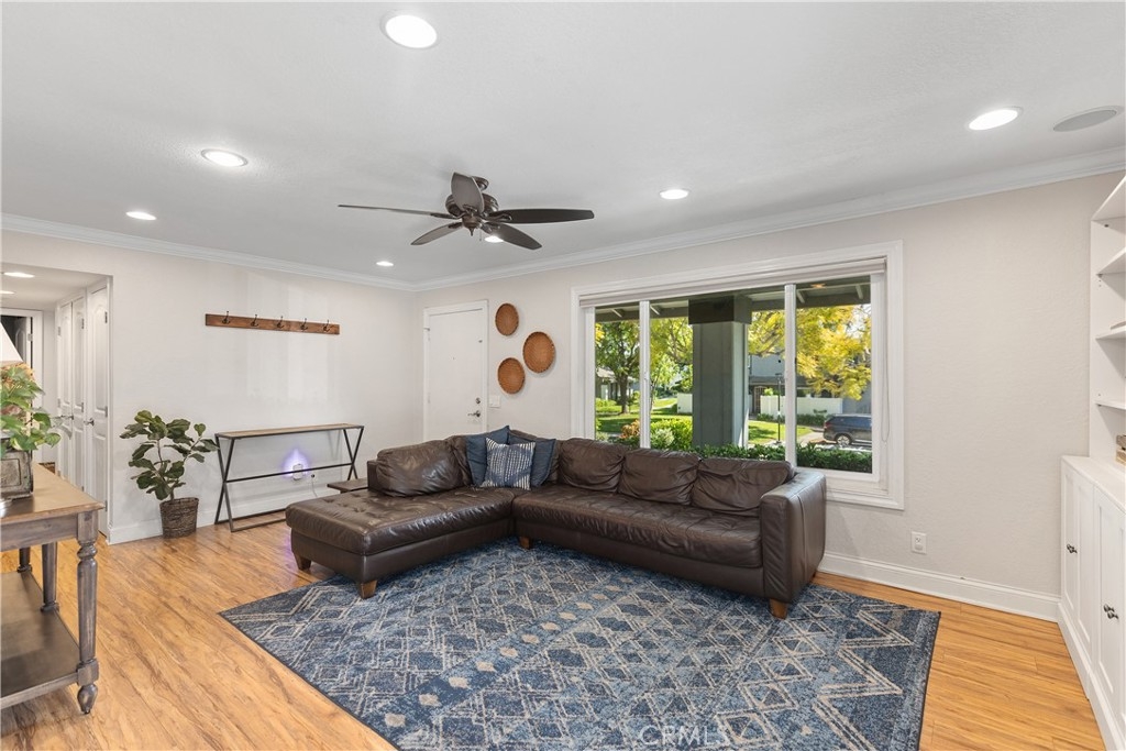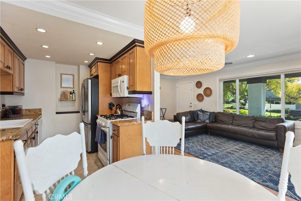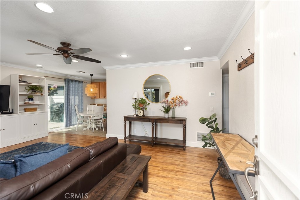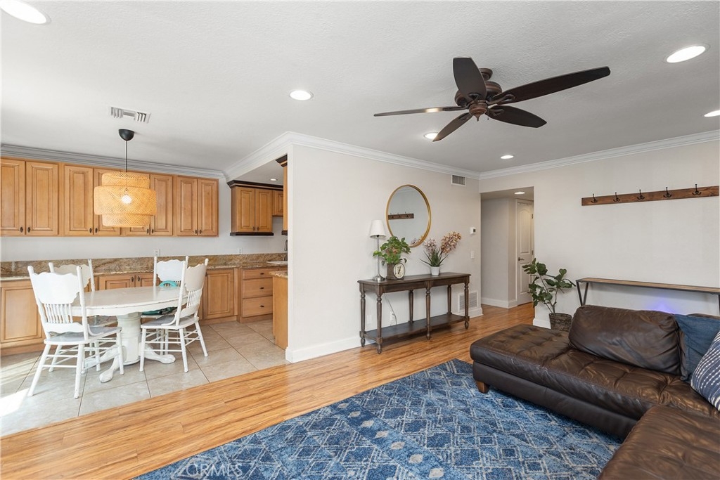 This attractive single-story end unit is situated in the highly desirable Fairmont Hill community. The spacious home features numerous upgrades, such as light wood kitchen cabinets with dark hardware and granite countertops that flow seamlessly into the dining area. Other enhancements include recessed lighting, ceiling fans, and laminate wood flooring throughout most of the interior. The kitchen and bathrooms boast tile flooring, and all three bedrooms include mirrored closet doors. Recent improvements include a new A/C and furnace installed in December 2022, along with a new water heater in September 2022. The dining area opens onto a private enclosed patio with artificial grass and concrete for easy maintenance. Inside, you'll find crown moldings, custom baseboards, recessed lighting, ceiling fans in every room and faux wood blinds. Conveniently located, there's an indoor laundry closet with a washer and dryer included, as well as a two-car garage accessible from behind the unit. HOA dues cover cable TV, trash, exterior maintenance, roofs, and more. Enjoy the benefits of the esteemed Yorba Linda School District, convenient freeway access, and many other amenities!
