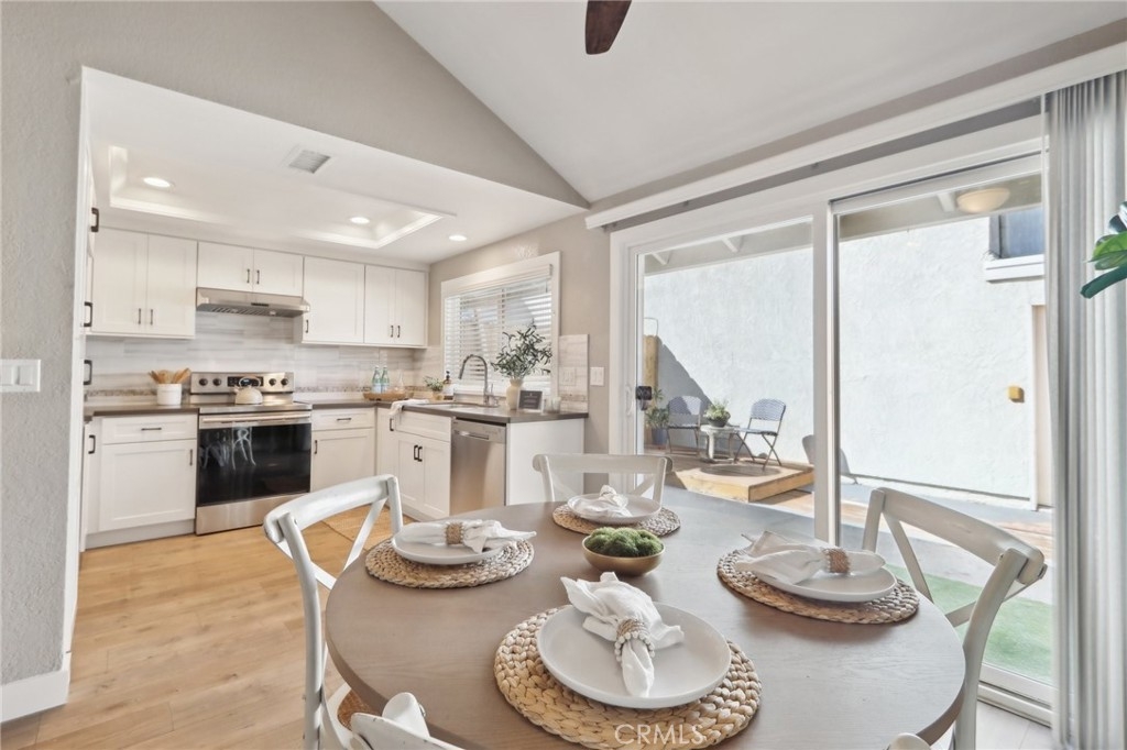 Welcome to the highly desirable Rancho Dominguez Community in Yorba Linda, where charm and convenience come together in this beautifully updated corner unit. This spacious three-bedroom, two-bathroom residence offers 1,128 square feet of thoughtfully designed living space, highlighted by soaring vaulted ceilings that enhance its open and airy ambiance. The home features an upgraded kitchen, flooring and bathrooms, complemented by fresh paint that adds a modern, move-in-ready appeal. A private outdoor patio provides a courtyard feel, ideal for relaxation or entertaining. The two-car garage offers both convenience and additional storage. Residents of this well-maintained community enjoy access to lush greenbelt areas, scenic walking paths, a community pool and tennis courts. Ideally situated, the property is just minutes from award-winning schools, shopping, dining, Yorba Regional Park, and the Santa Ana River Trail, offering an abundance of recreational opportunities. With its prime location, updated features, and inviting community amenities, this exceptional home is an opportunity not to be missed.