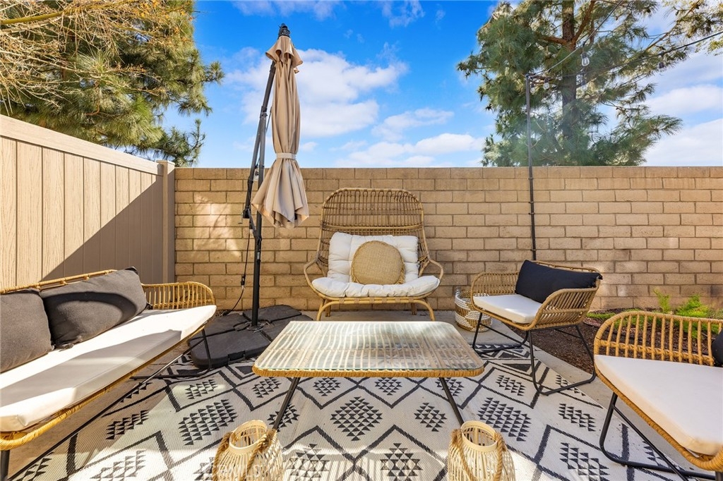 Nestled in a safe and quiet neighborhood, this beautiful end-unit condo is ready for its new owners! Situated directly across from a lush greenbelt and gazebo with plenty of guest parking, this home offers a fully landscaped backyard adorned with market lights and stunning views of Anaheim Hills—perfect for relaxing or entertaining. Step inside to an oversized living room featuring a cozy fireplace, while the adjacent open-concept dining and kitchen area seamlessly connects to the backyard through sliding doors, creating the ultimate indoor/outdoor living experience. The kitchen boasts a wrap-around quartz peninsula with bar seating, soft-close white shaker cabinets, a grey subway tile backsplash, a farmhouse sink, and stainless steel appliances. Upstairs, enjoy two spacious ensuite bedrooms with high ceilings and abundant natural light. The attached 2-car garage with direct access provides added convenience. Located in the highly acclaimed Placentia-Yorba Linda Unified School District, and just minutes from the 91 Freeway, shopping centers and parks, this home won’t last long! Don’t miss this rare opportunity!