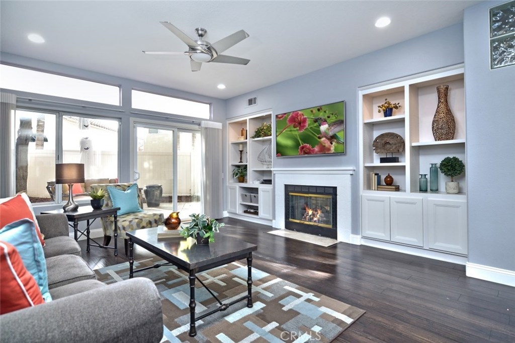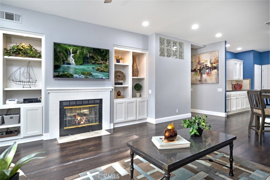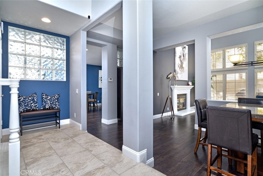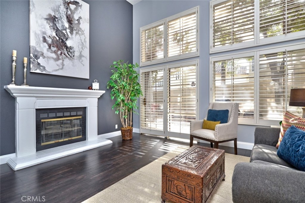 La Terraza is a beautiful community in the hills of Yorba Linda designed for busy lifestyles.These lovely paired homes feature low-maintenance yards for outdoor living plus stunning association pools & spas so you have all the enjoyment & none of the work!With the look of a single family home,this home sits on a greenbelt & has a full size driveway.You enter the home through a side courtyard that creates a wrap around with the backyard.Entering the home,you look through the formal dining room with bay window through to the light filled living room with soaring ceilings & a wall of windows.Rich wood flooring adorns the downstairs floors & plantation shutters accent the windows.A double sided fireplace sits between the living & family room with built-ins.A breakfast nook & kitchen with stainless steel appliances opening to the family room creates a great room overlooking the backyard.There's a spacious main floor bedroom with bay window & adjacent bath ideal for guests or a home office.Upstairs,an open landing overlooks the foyer & leads to a gorgeous master suite with fireplace,huge walk-in closet & opulent bath with soaking tub,double vanities-one with make-up desk,a separate step-in shower & privacy door to the commode.On the opposite side of the stairs are 2 spacious bedrooms that share a Jack 'n Jill bath with double vanity & tub/shower combo.The laundry room is conveniently located on the bedroom level.This amazing home will invigorate your senses! Come make it yours!