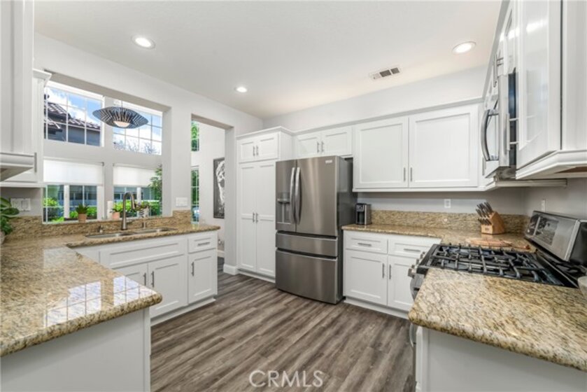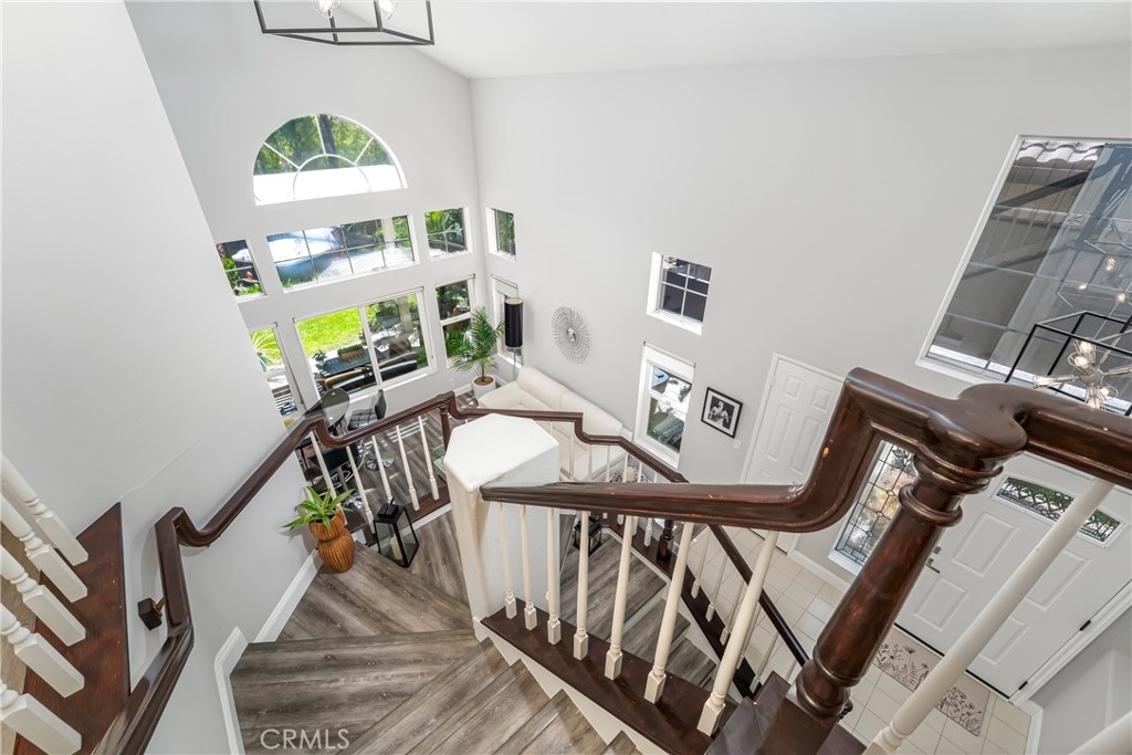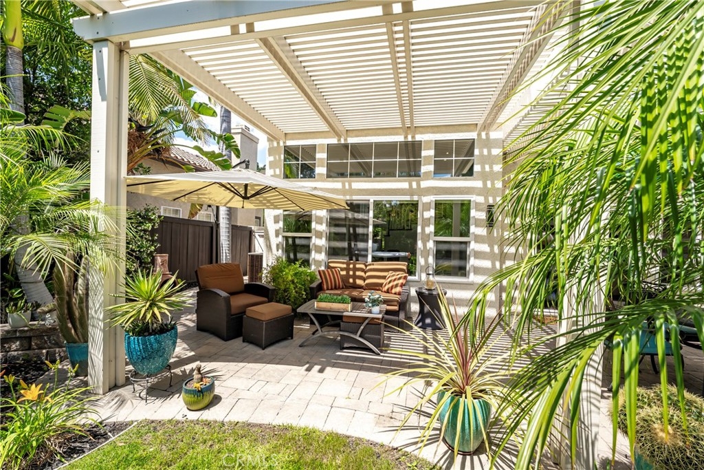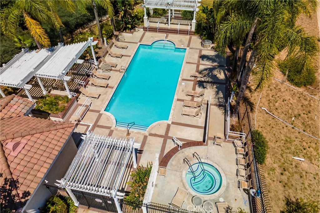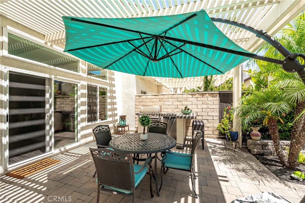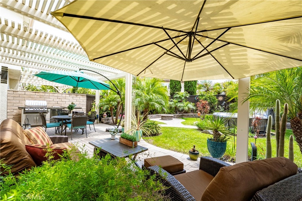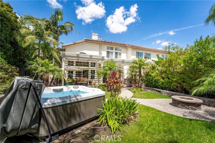 Located in the prestigious La Terraza community in the hills of Yorba Linda, this beautifully upgraded residence offers approximately 1,958 sq ft with 3 bedrooms and 2.5 baths, ideally situated on a prime single-loaded street with impressive curb appeal. Soaring ceilings and large, gorgeous windows fill the home with an abundance of natural light, highlighting the formal living room and separate dining area with dramatic two-story volume. The remodeled white kitchen features stainless steel appliances, granite countertops, ample cabinetry, a pantry, and a breakfast nook, opening to the inviting family room with fireplace and direct access to the backyard. The expansive yard is a true showpiece—recently redesigned with paver patios and walkways, an Alumawood patio cover, built-in BBQ bar with gas grill and refrigerator, firepit, and a high-end spa, all surrounded by lush landscaping for exceptional privacy. Upstairs, the inviting primary suite offers vaulted ceilings, dual sinks, a separate walk-in shower, Roman soaking tub, private water closet, and an organized walk-in closet. Two secondary bedrooms are well separated and share a full bath with dual sinks, both enjoying peaceful views of the surrounding greenbelts. Additional features include a full-size indoor laundry room, an oversized direct-access two-car garage, and a rare extended driveway accommodating two additional vehicles. Upgrades include hard surface flooring throughout (no carpet), newer dual-pane windows and sliders, custom window coverings, and designer lighting. La Terraza residents enjoy resort-style amenities including two pools and spas, as well as tennis, pickleball, and basketball courts—all set in a serene, beautifully manicured community. This is a location you truly have to experience in person to appreciate.