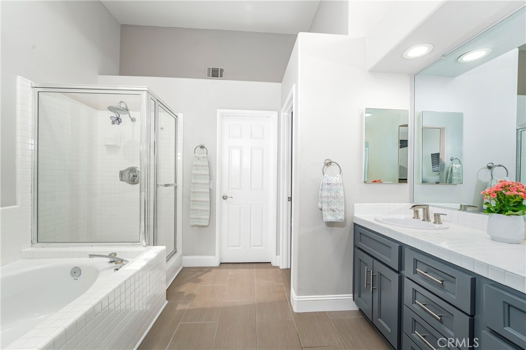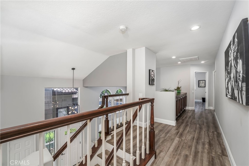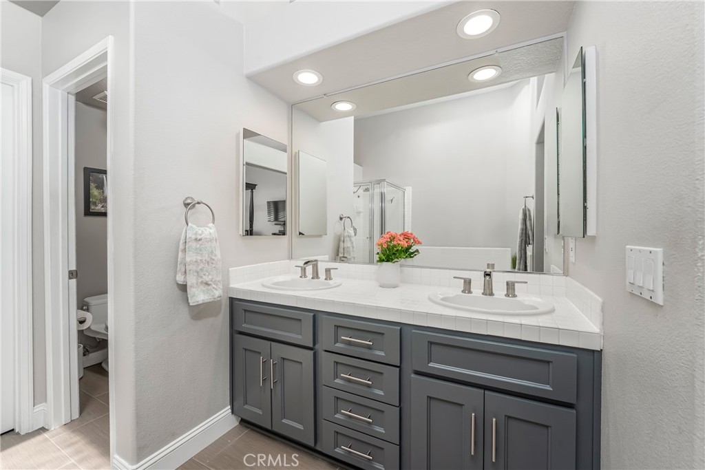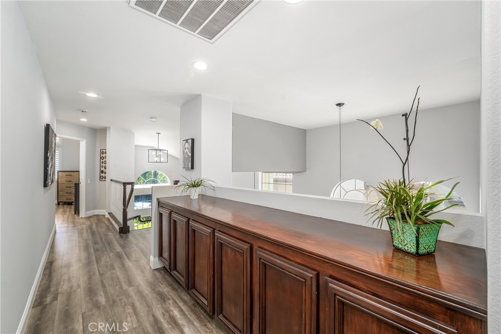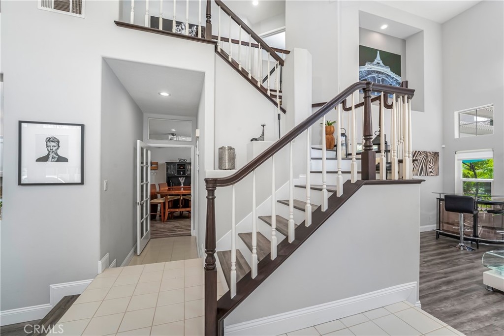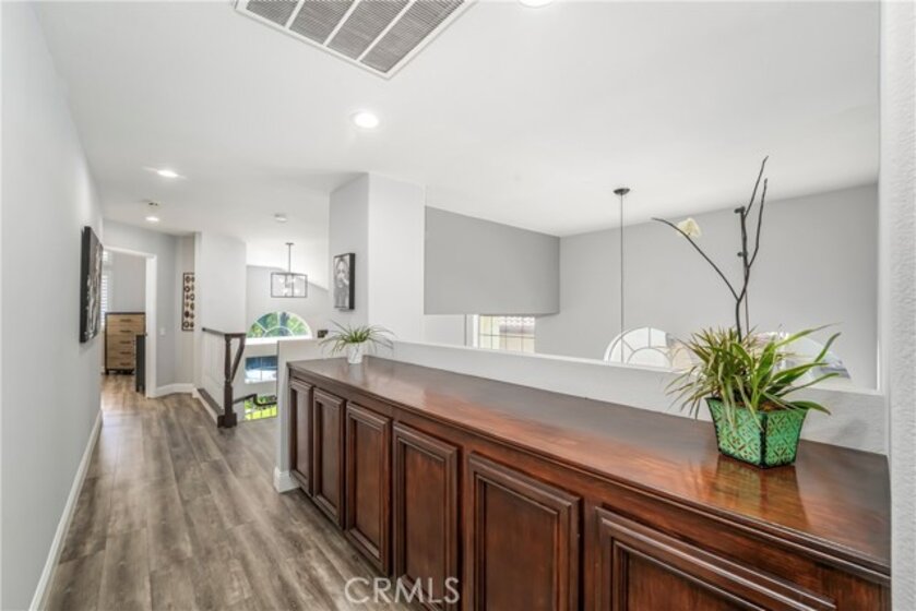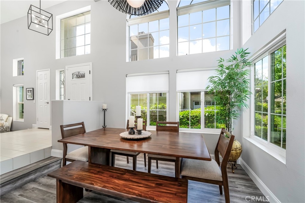 Located in the prestigious La Terraza community in the hills of Yorba Linda, this beautifully upgraded residence offers approximately 1,958 sq ft with 3 bedrooms and 2.5 baths, ideally situated on a prime single-loaded street with impressive curb appeal. Soaring ceilings and large, gorgeous windows fill the home with an abundance of natural light, highlighting the formal living room and separate dining area with dramatic two-story volume. The remodeled white kitchen features stainless steel appliances, granite countertops, ample cabinetry, a pantry, and a breakfast nook, opening to the inviting family room with fireplace and direct access to the backyard. The expansive yard is a true showpiece—recently redesigned with paver patios and walkways, an Alumawood patio cover, built-in BBQ bar with gas grill and refrigerator, firepit, and a high-end spa, all surrounded by lush landscaping for exceptional privacy. Upstairs, the inviting primary suite offers vaulted ceilings, dual sinks, a separate walk-in shower, Roman soaking tub, private water closet, and an organized walk-in closet. Two secondary bedrooms are well separated and share a full bath with dual sinks, both enjoying peaceful views of the surrounding greenbelts. Additional features include a full-size indoor laundry room, an oversized direct-access two-car garage, and a rare extended driveway accommodating two additional vehicles. Upgrades include hard surface flooring throughout (no carpet), newer dual-pane windows and sliders, custom window coverings, and designer lighting. La Terraza residents enjoy resort-style amenities including two pools and spas, as well as tennis, pickleball, and basketball courts—all set in a serene, beautifully manicured community. This is a location you truly have to experience in person to appreciate.