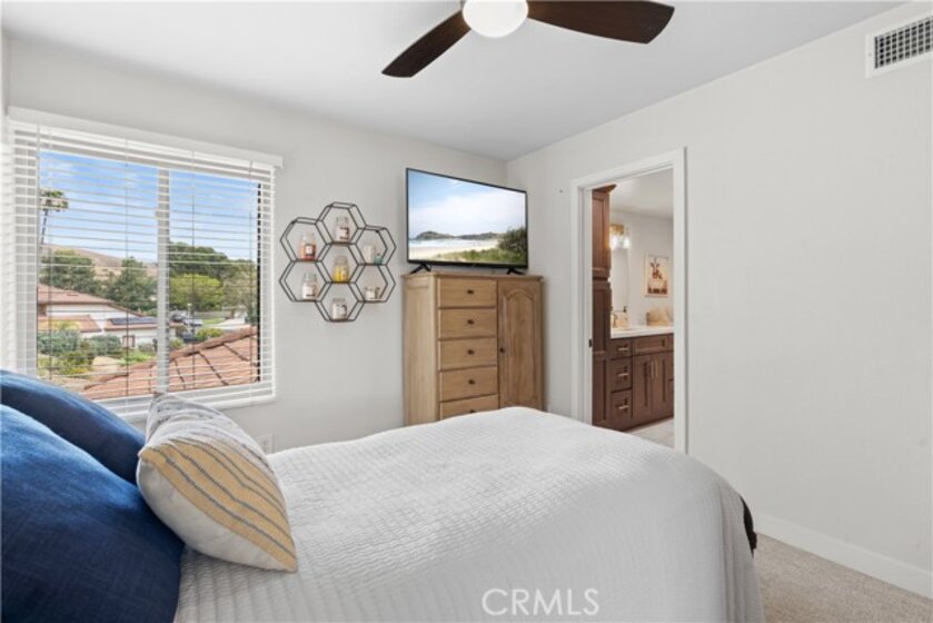 Turnkey with Panoramic Views in the Heart of Yorba Linda! Welcome to 3755 Forest Ave, an impeccably maintained 3-bed, 3-bath home zoned for top-rated YLHS. The remodeled kitchen features quartz counters, a center island, and self-closing cabinetry, and flows into the family room with its dual gas and wood-burning fireplaces. A rare main-floor bedroom and full bath with a walk-in shower offer flexibility for guests or multi-gen living. Upstairs, two primary suites each include spacious closets and updated baths with dual sinks and quartz counters. The upper balcony offers panoramic views of the mountain, hillside, and city lights. Recent upgrades: newer ENERGY STAR HVAC, new Anlin dual-pane windows (2022), fresh exterior paint (2022), an iron entry door (2019), and new wrought iron fencing (2026). All work permitted. No HOA, No Mello-Roos. Welcome home.