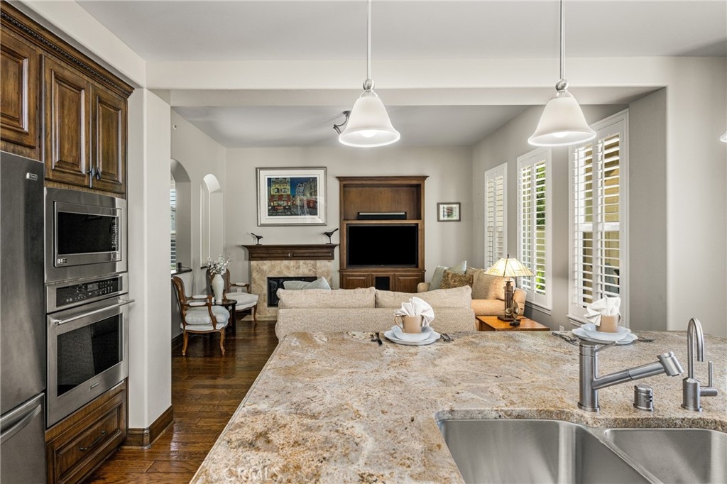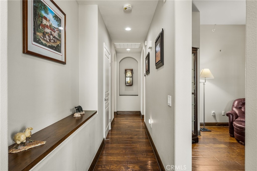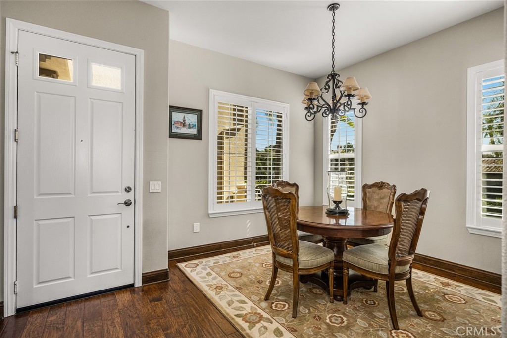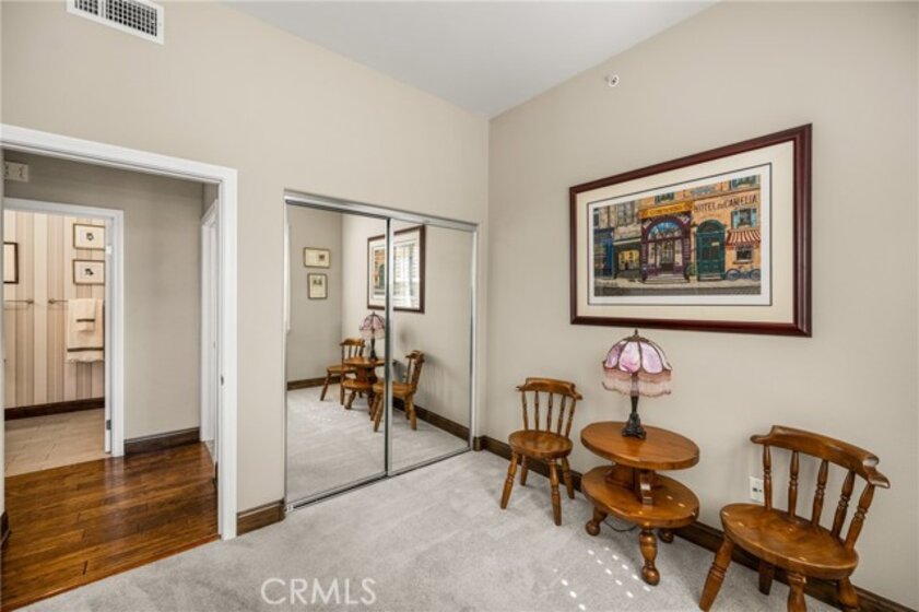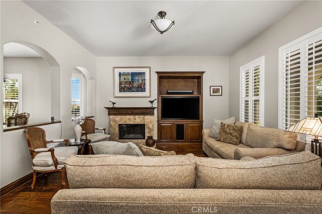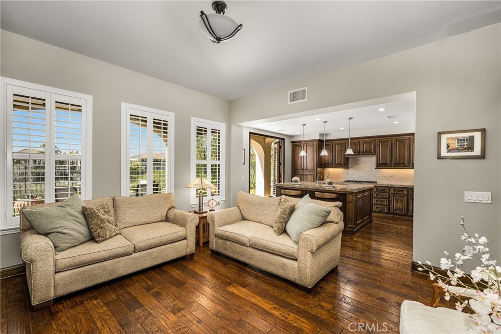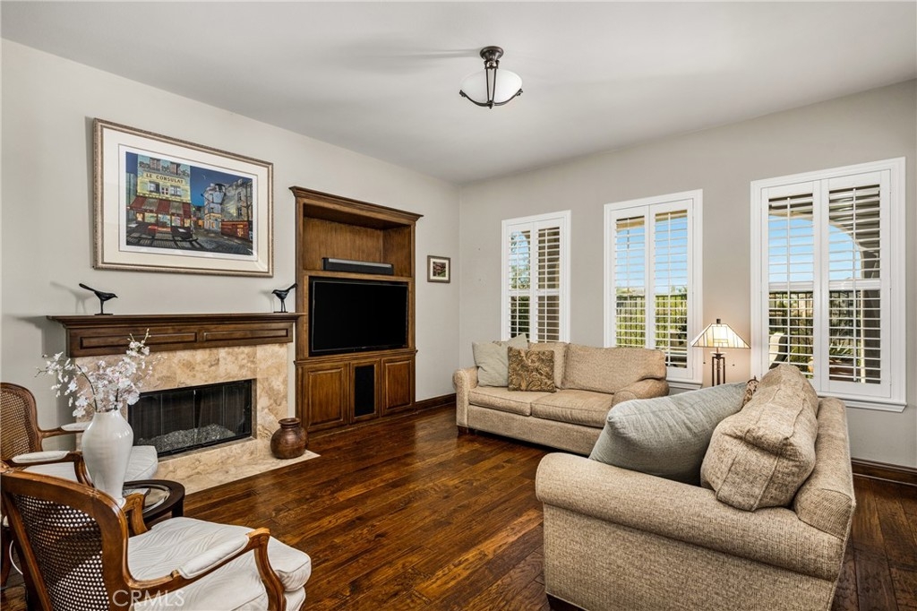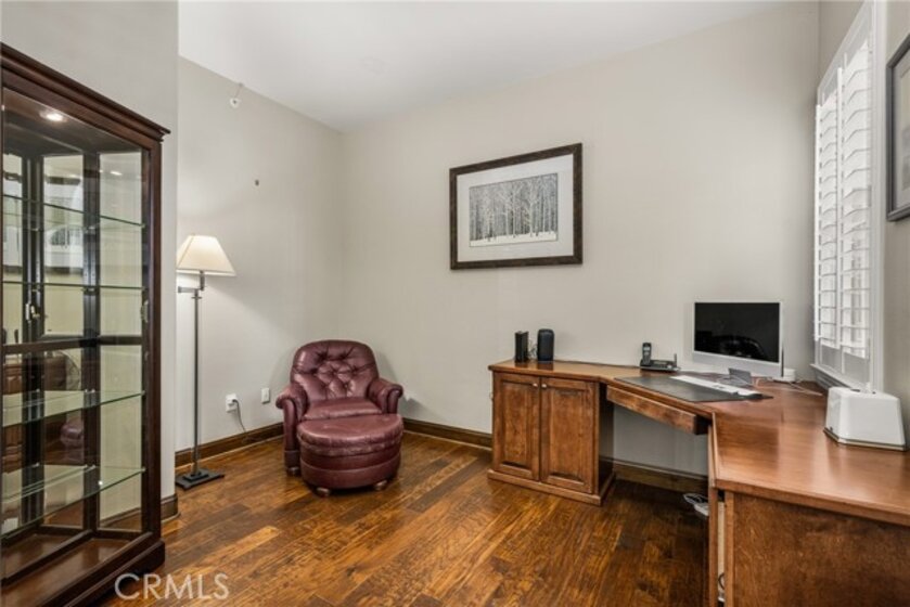 Imagine waking up to sweeping fairway views on the 15th tee of Black Gold Golf Course. Perfectly positioned on the fairway, this first floor, one level residence offers peaceful scenery, abundant natural light, and a lifestyle of comfort and relaxation. Welcome to 4045 Balmoral Drive in the San Lorenzo community of Yorba Linda, California. Step outside in the morning from your 3 bedroom (one currently an office) and 2.5 bathrooms, upgraded kitchen with an oversized island featuring granite countertops, ample storage, stainless steel appliances and recessed lighting. Open entertainer's floor plan with beautiful hardwood floors throughout, upgraded moldings, and LG 55” TV in custom cabinetry included. French doors open to your private patio perfectly manicured to enjoy a morning cup of coffee or an evening sunset view and a cocktail. This meticulously maintained, prime corner Model 1 is perfectly positioned in the community - bright, quiet and highly private. Immediately adjacent to the community amenities which include the swimming pool, jacuzzi, BBQ, club house and ample parking for guests. Offering 1,702 sq feet of open airy space, a large primary master suite with custom closet built-ins, large shower and oversized soaking tub. Additional features include inside laundry (LG Washer and Dryer included), custom plantation shutters throughout, water softener system, Nest thermostat, attached 2 car garage just off a larger 18’ driveway allowing for extra off street parking with custom storage that you can move right into. Why keep reading about it when you can come see this stunning fairway home for yourself?