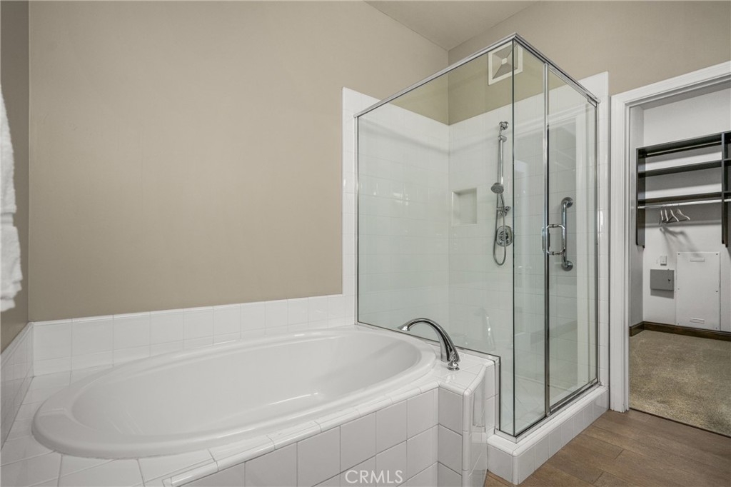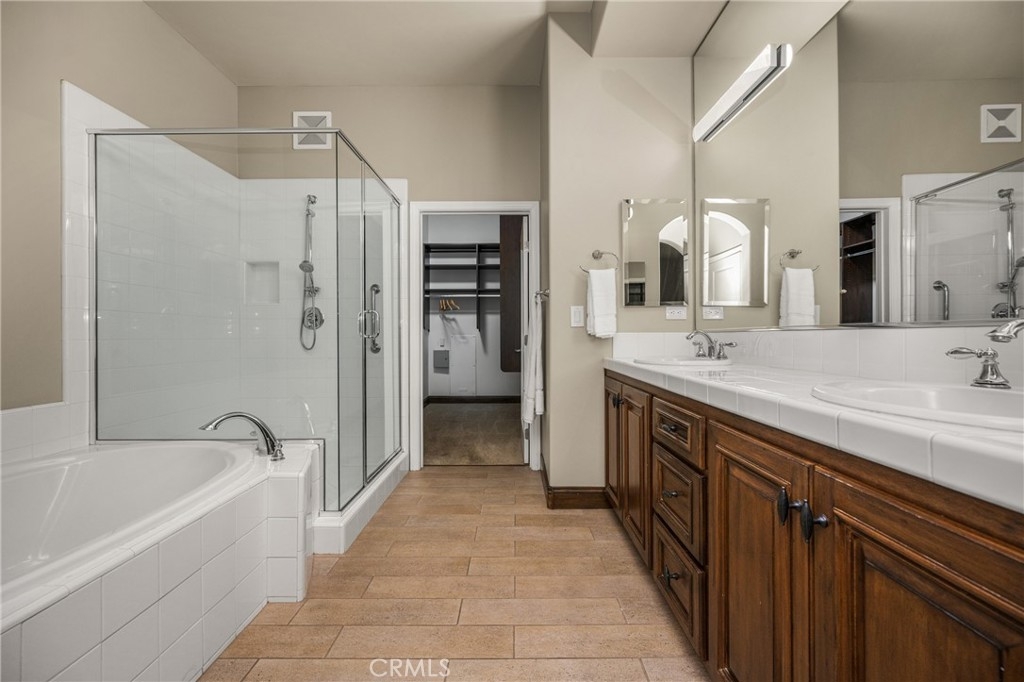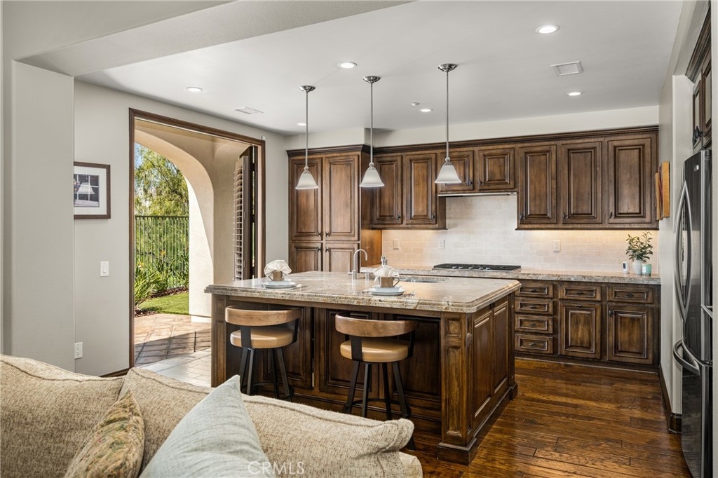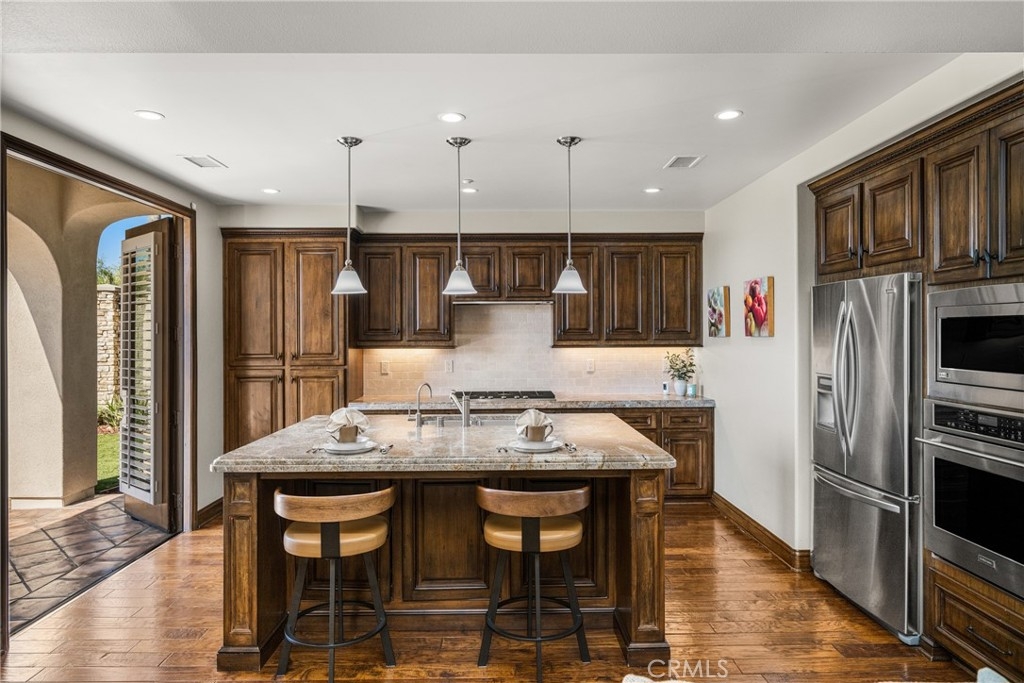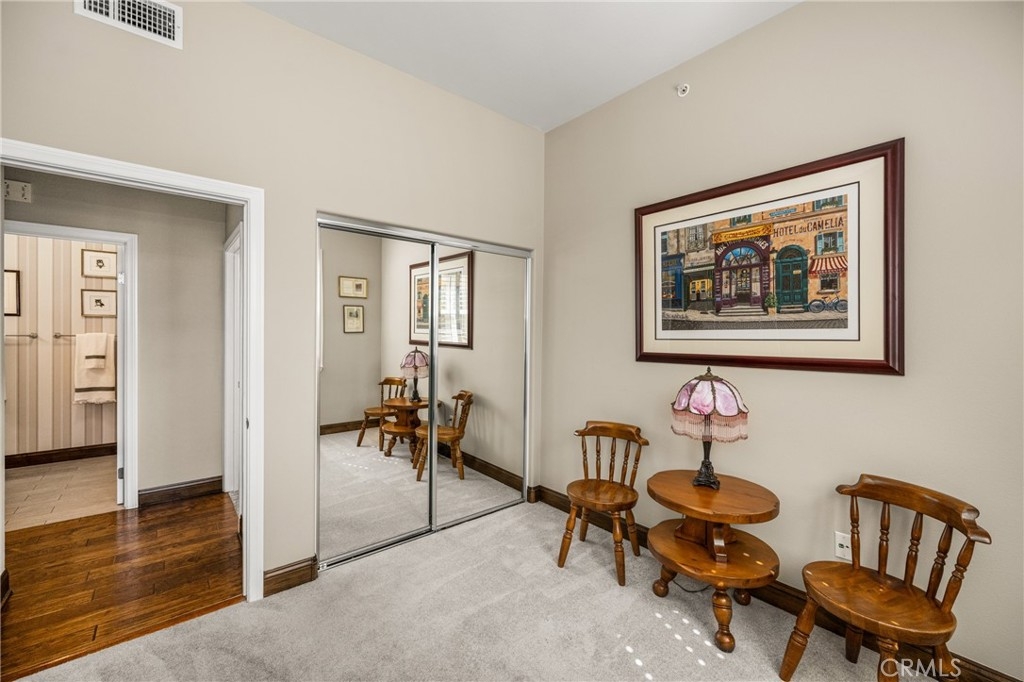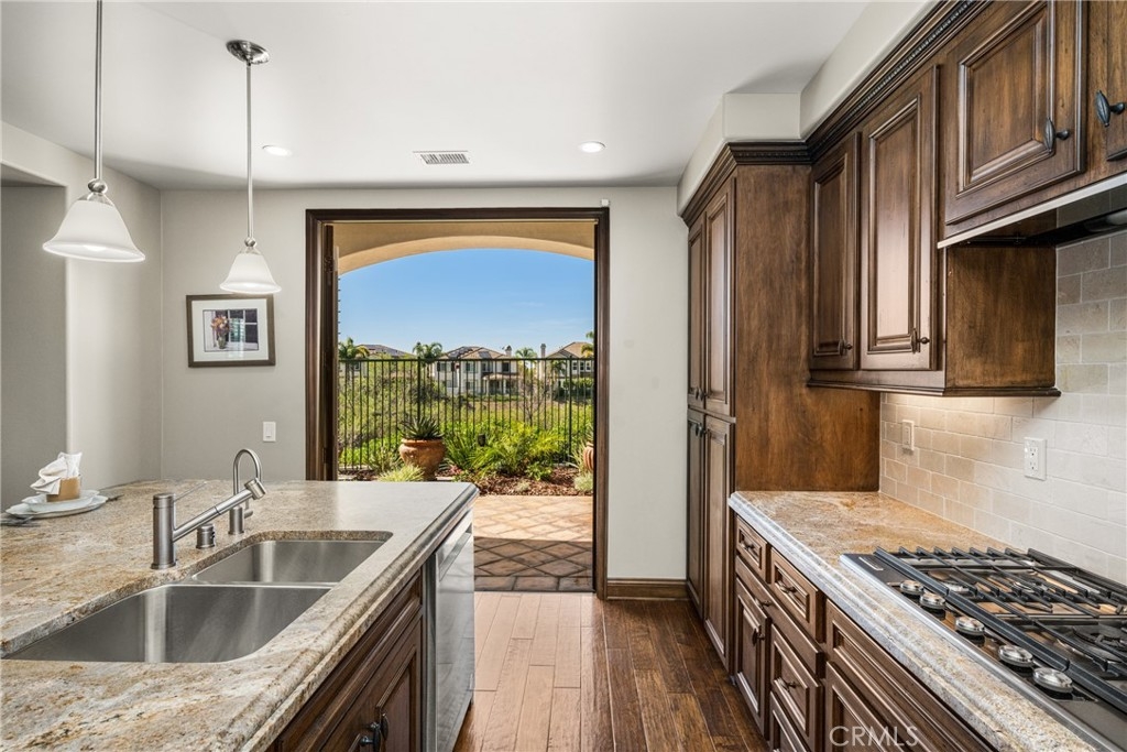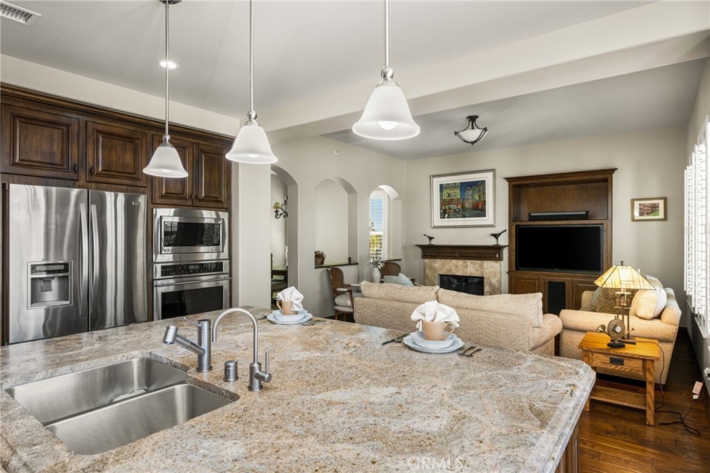 Imagine waking up to sweeping fairway views on the 15th tee of Black Gold Golf Course. Perfectly positioned on the fairway, this first floor, one level residence offers peaceful scenery, abundant natural light, and a lifestyle of comfort and relaxation. Welcome to 4045 Balmoral Drive in the San Lorenzo community of Yorba Linda, California. Step outside in the morning from your 3 bedroom (one currently an office) and 2.5 bathrooms, upgraded kitchen with an oversized island featuring granite countertops, ample storage, stainless steel appliances and recessed lighting. Open entertainer's floor plan with beautiful hardwood floors throughout, upgraded moldings, and LG 55” TV in custom cabinetry included. French doors open to your private patio perfectly manicured to enjoy a morning cup of coffee or an evening sunset view and a cocktail. This meticulously maintained, prime corner Model 1 is perfectly positioned in the community - bright, quiet and highly private. Immediately adjacent to the community amenities which include the swimming pool, jacuzzi, BBQ, club house and ample parking for guests. Offering 1,702 sq feet of open airy space, a large primary master suite with custom closet built-ins, large shower and oversized soaking tub. Additional features include inside laundry (LG Washer and Dryer included), custom plantation shutters throughout, water softener system, Nest thermostat, attached 2 car garage just off a larger 18’ driveway allowing for extra off street parking with custom storage that you can move right into. Why keep reading about it when you can come see this stunning fairway home for yourself?