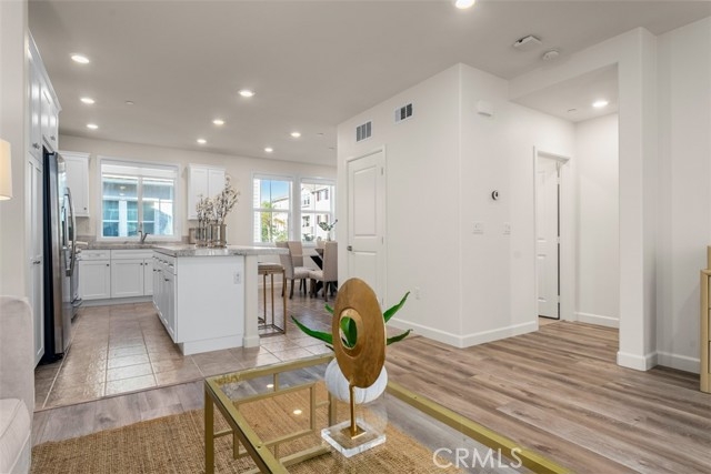 Discover an impressive 3-bedroom, 2.5-bath townhome situated in the highly sought-after Loma Vista community of Yorba Linda. Thoughtfully upgraded and designed for modern living, this residence combines beauty, comfort with modern convenience built with smart home technology. Step inside to find brand-new wood flooring, freshly painted interiors, and custom window treatments that create a bright, elegant ambiance throughout. The first level features a versatile flex room—perfect as an office, gym, or creative space. Heading up the second level, an expansive living space flows into an open functional and well equipped kitchen complemented with stainless steel appliances, crisp white cabinetry, and quartz countertops. Refrigerator, washer, and dryer are all included for your convenience. From the living room, step out into the balcony to enjoy fresh air without leaving the home. The top most level is where you'll find restful and tranquil bedroom spaces. The primary suite with a walk-in closet and a well-appointed primary bath with full-sized standing shower, double sinks and private toilet, promotes an elevated experience to refresh and renew. Designed with today’s lifestyle in mind, the home features a range of smart technologies—including USB outlets, a Quiet Cool whole house fan, a tankless water heater with recirculating system, a Honeywell smart thermostat, Ring Video Doorbell, Baldwin smart lock, and Lutron WiFi lighting system. Every room is prewired for ceiling fans or chandeliers, as well as mounted flat screens. For peace of mind, safety features include a sprinkler system, smoke alarms, and carbon monoxide detectors. The garage with epoxy floors adds both style and durability. Enjoy access to the Loma Vista community amenities, featuring a pool, spa, playground, and tot lot, while being just minutes from Yorba Linda Town Center and Yorba Linda High School. Don’t miss this exceptional opportunity to call this modern and sophisticated townhome your new home!