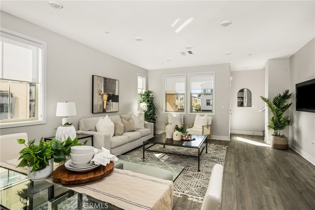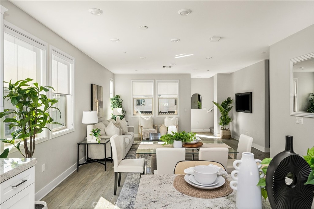 Don't miss this rare opportunity to own a beautiful home in one of the most sought-after communities in Yorba Linda (Loma Vista), known for its award-winning schools. This spacious end unit residence offers 4 bedrooms and 3.5 bathrooms, including a convenient first-floor bedroom and full bath — perfect for guests or multi-generational living. Upstairs, you’ll be welcomed by a bright, open-concept living area featuring a generous family room, dining space, and a gourmet kitchen with a large center island. Expansive windows fill the home with natural light, while a charming balcony provides the perfect spot for morning coffee or relaxing with a book. The private primary suite boasts a huge bedroom, an oversized walk-in closet with dual entries, and a luxurious bathroom with dual sinks and a large glass-enclosed shower. Two additional upstairs bedrooms and a well-sized hallway bath complete the top floor. This home has two attached car garage along with tankless water heater and EV charger. The community amenities include a resort-style pool, spa, multiple playgrounds, and ample guest parking. Ideally located within walking distance to Mabel Paine Elementary School and less than 10 minutes from Yorba Linda High School. You’re also just minutes from Yorba Linda Town Center, Bristol Farms, Movie theater, dining, shopping, and so much more.