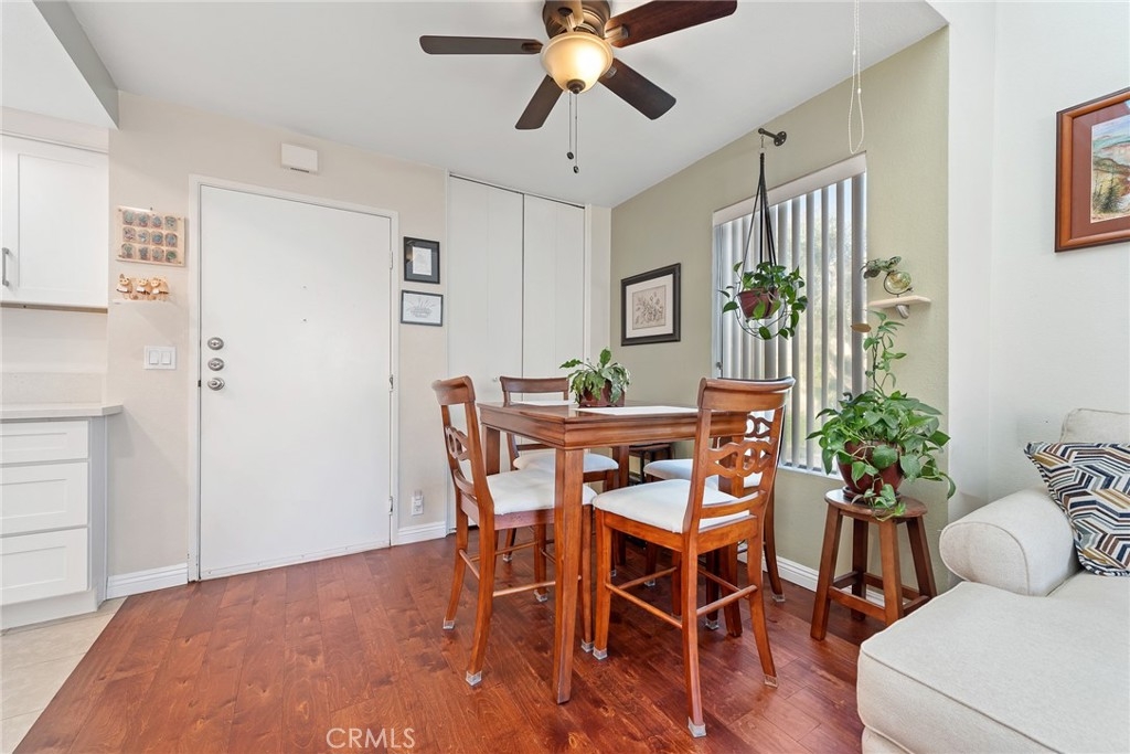 Welcome to your charming oasis in a vibrant 55+ community! This beautifully remodeled condo, built in 1982, offers an inviting 580 square feet of thoughtfully designed living space. Step inside to discover stunning laminate flooring throughout, creating a warm and welcoming atmosphere. The bright and airy living room seamlessly flows into the dining area, perfect for both entertaining friends and enjoying quiet meals at home. The well-appointed kitchen features modern Corian countertops and is open to the living and dining areas, ideal for social gatherings. Natural light pours in through The windows, enhancing the spacious feel of this delightful home. Your tranquil primary suite boasts a generous walk-in closet and convenient access to the charming balcony, also accessible from the living room, which provides a peaceful retreat for enjoying neighborhood views and fresh air. Additional comforts include air conditioning for those warm summer days and easy access to the building’s elevator and the ramp that makes this seem as though its on the first level. This is a level unit but is on the second floor. This condo is truly a hidden gem, combining convenience and style in a picturesque setting. Experience the ease of low-maintenance living with community amenities that enhance your lifestyle. Don’t miss this opportunity to own a wonderful home in a great community! There is also a large clubhouse as well as a library within the clubhouse. Located just across the street from the Yorba Linda town center, you'll have easy access to shopping, dining, entertainment and a local coffee shop that is just down the road. The library and cultural center are also close by. Schedule your private tour today and picture yourself calling this place home.