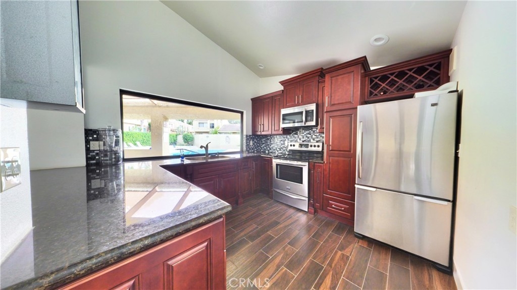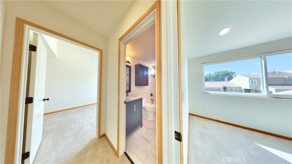 Light and Bright Yorba Linda Knolls Community positioned in a quiet interior cul-de-sac location, with soaring vaulted ceilings, upgraded primary bathroom, recessed lighting throughout, Smart detectors, and NO COMMON WALLS for upstairs bedrooms (rare)! Freshly painted and meticulously cleaned, this home boasts of a BRAND NEW Kitchen with Stainless Steel appliances accented by clean white cabinets, all flowing openly to dining and family room. The Spacious Primary Bedroom boasts of vaulted ceilings, walk in closet, and upgraded en-suite bathroom with Travertine Tile Shower. Two car attached garage with direct entry, full of built-in storage, and laundry hookups. Included in the HOA dues are nightly security parking enforcement, renovated clubhouse, multiple pool / spa, landscaping, and insurance. The home features award winning schools within walking distance: Yorba Linda High School, Bernardo Yorba Linda Middle School, and Fairmont Elementary. Nearby Trader Joe’s, Home Goods, multiple tennis courts, newly constructed park, and equestrian walking trail surround this beautiful home. A true Gem in the Land of Gracious Living!