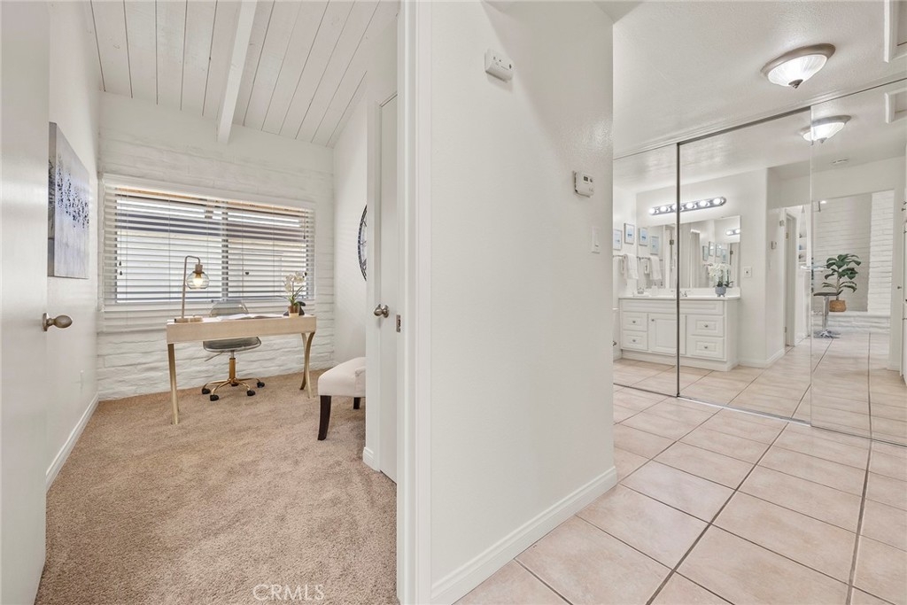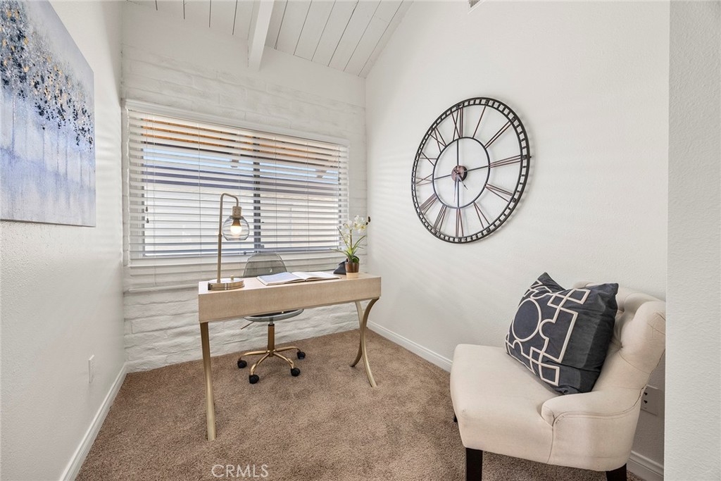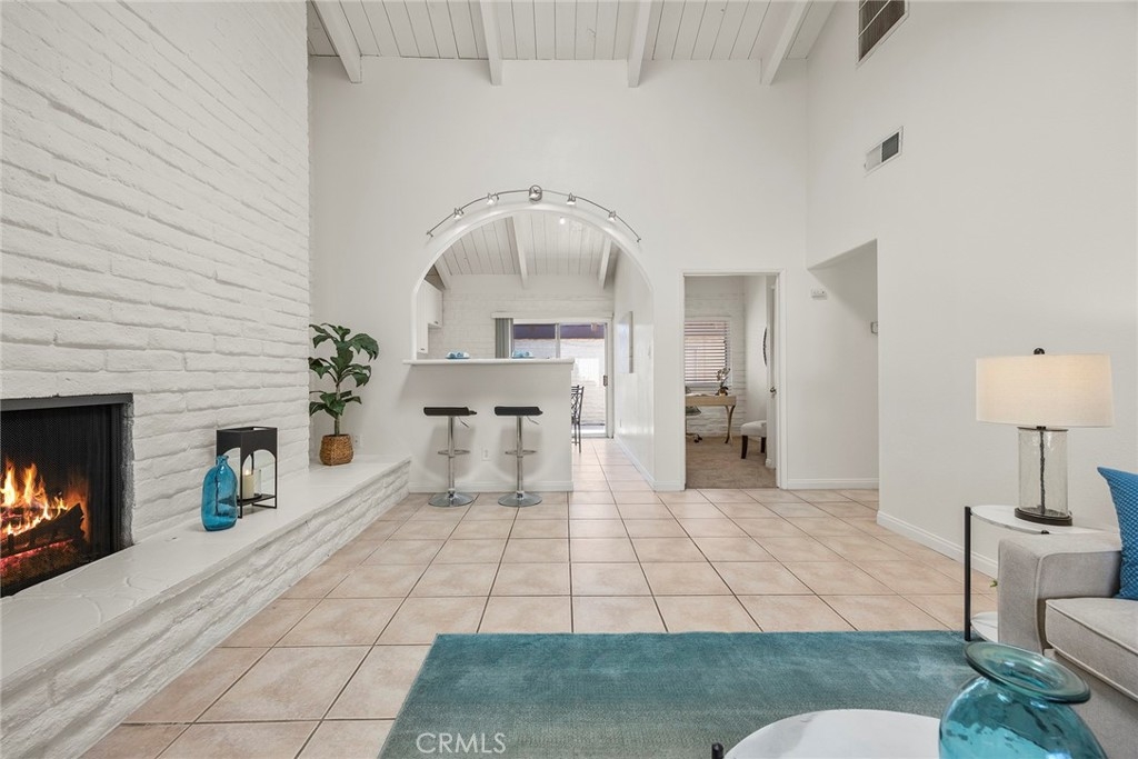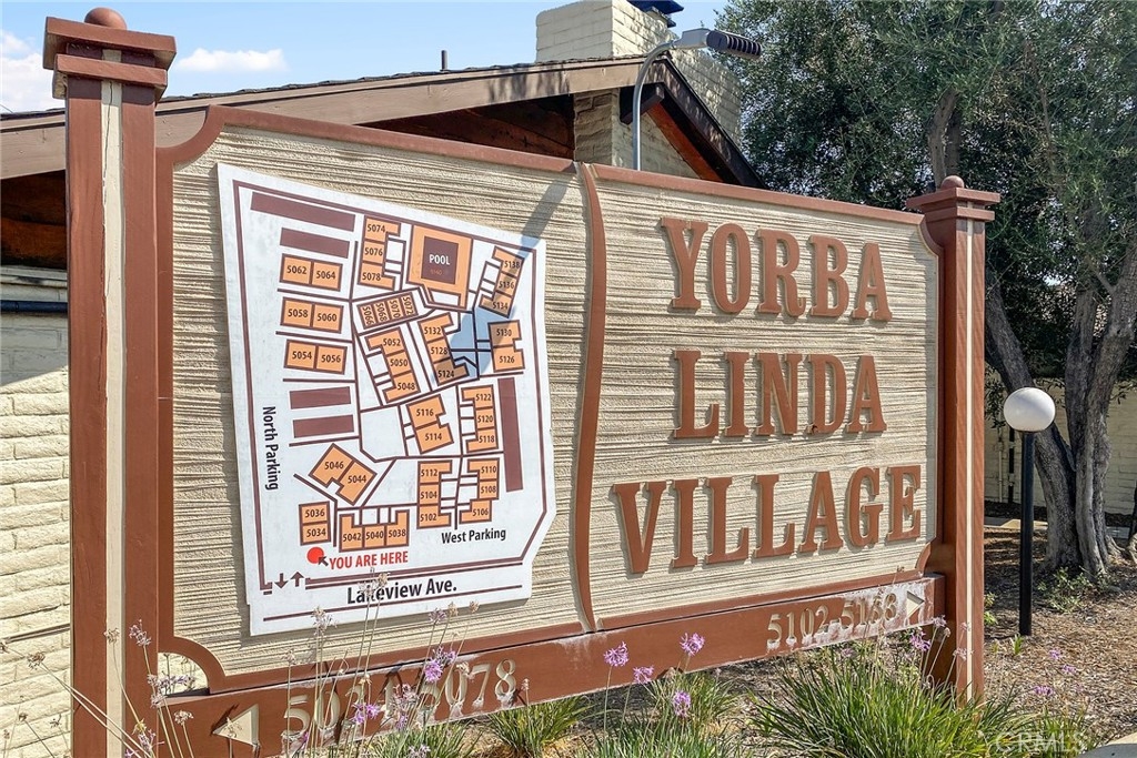 Come and join the Yorba Linda Village Community! You are right in the middle of Yorba Linda and just a short walk to groceries, restaurants, the Yorba Linda Library, and the Town Center. Single level living in a unit that has been refurbished and ready to move into. There are two bedrooms, the smaller one is set up as an office and the other bedroom is very spacious. The bathroom has a sink area and then the room with a tub/shower combo and the toilet. The kitchen has also been refurbished with a new stove and dishwasher and the counters have been resurfaced. Tile floors cover the living room and the kitchen and the bathroom and carpet covers the two bedrooms. The living room has a gas fireplace with a raised hearth. The kitchen has counter seating as well as a breakfast nook. This unit is really nice! A slider leads out the patio area with an area for planting, if that is your need or for pets. Private as well. Open the door from the patio to the back wall and you are in your covered section of the carport for easy accessibility. Very desirable and with lots of light very relaxing. The HOA has a pool and walkways throughout the complex. Come and see!