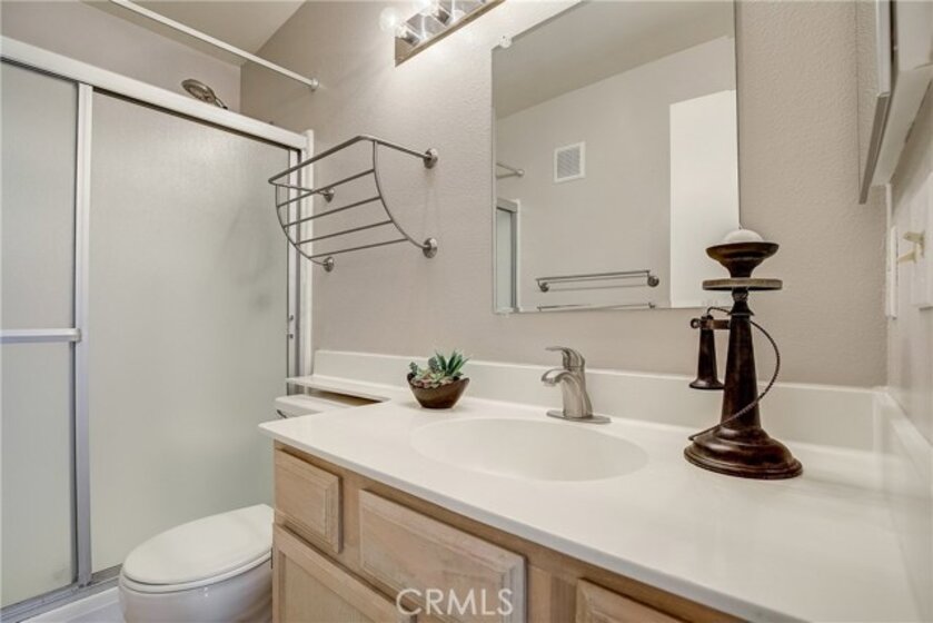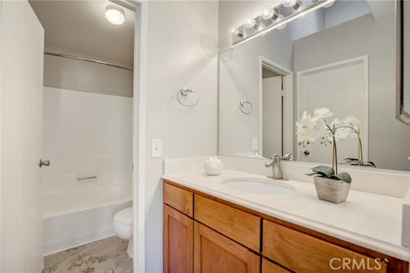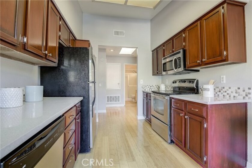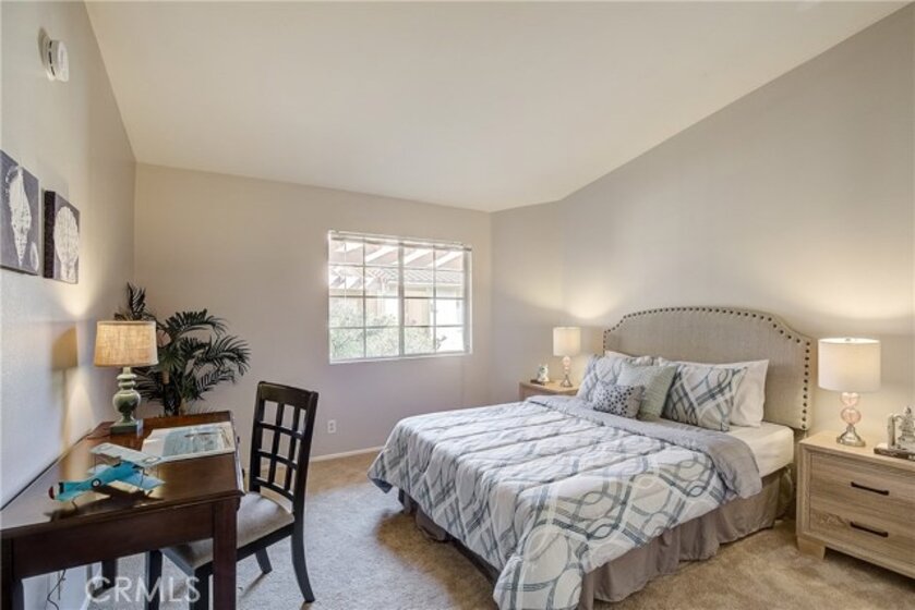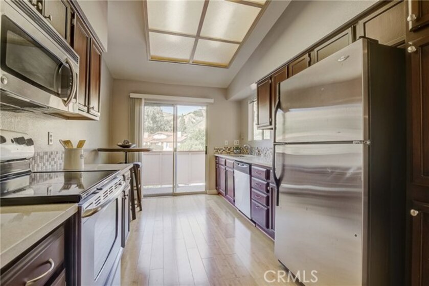 Upgraded upper level two-bedroom condo located in The Hills community of Yorba Linda. All-new HVAC system (less than 1 year old) creates comfort in this condo where vaulted ceilings, rich bamboo wood floors, plush carpeting and light-catching windows complement the bright and open floor plan. The upgraded kitchen features quartz counters, stainless steel appliances, solid wood cabinets and sliding doors to the private patio. Within close proximity is the formal Dining Room that flows to the inviting Living Room with plush carpeting, cozy fireplace and sliding doors to the patio. The Master Bedroom features soaring ceilings, a large skylight and a remodeled en-suite bathroom. The secondary bedroom is generously sized and is adjacent to the upgraded hall bathroom. Spacious private patio with laundry closet and two covered parking spaces add convenience. Enjoy the resort-like community amenities with pools, spas, club house, tennis court, gym and playground area. rea.