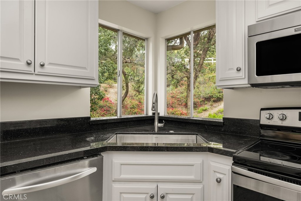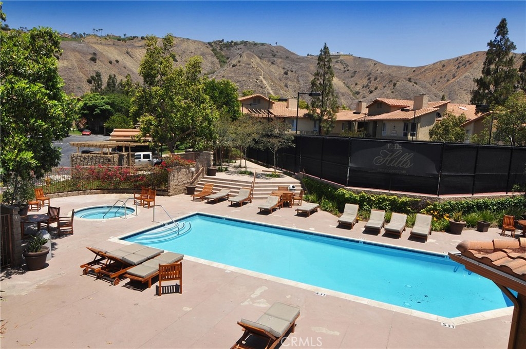 Welcome to a beautifully remodeled new condo listing in The Hills community of Yorba Linda. Nestled in a serene hills setting, this upper unit boasts high ceilings with an abundance of natural light. The spacious living area with double sided fireplace greets you, flowing into the remodeled kitchen featuring stainless steel appliances. Built-in desk area ideal for home office or homework station. Spacious balcony including a covered patio nook, offering dining al fresco with peaceful tree backdrop. Private primary retreat with walk-in closet and en-suite remodeled bathroom and direct access to patio. Desirable walk-in closet off secondary bedroom. Fresh interior paint and flooring, featuring today’s coveted color scheme. Brand new HVAC system and 2 new skylights providing additional natural light. Private laundry closet off balcony. Storage area off front porch. 2 assigned covered carport spots. Lovely community pool, spa & tot lot. Close to Savi Ranch retail destination, offering tons of shops and restaurants, including Costco & Home Depot. Easy freeway access. Desirable schools and nearby Box Canyon Park all contributing to the top notch convenient living Yorba Linda lifestyle!