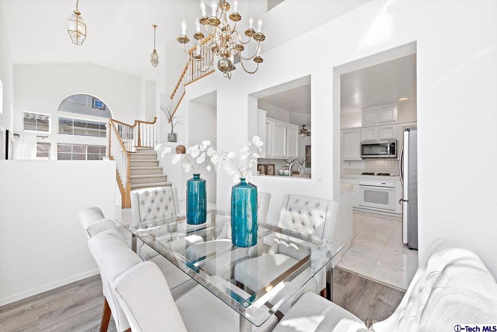 Don't miss this opportunity to join the La Terraza Community and schedule time to tour this beautiful home. Highlights of this unit are the high vaulted ceilings and walls of windows that draw in tons of natural light. The kitchen is conveniently located between the casual breakfast nook and formal dining room. The adjoining formal living room and family room provide ample space for small, intimate gatherings or large parties. Directly off of the family room is a patio perfect for entertaining or soaking in the sun. Venture upstairs and you'll find the spacious primary bedroom with its full bath and walk-in closet, two more bedrooms, and a shared full bathroom. This lovely home in the popular La Terraza Community provides many amenities for its residents to enjoy including two swimming pools, tennis courts, and conveniently located by the Bryant Ranch Park.