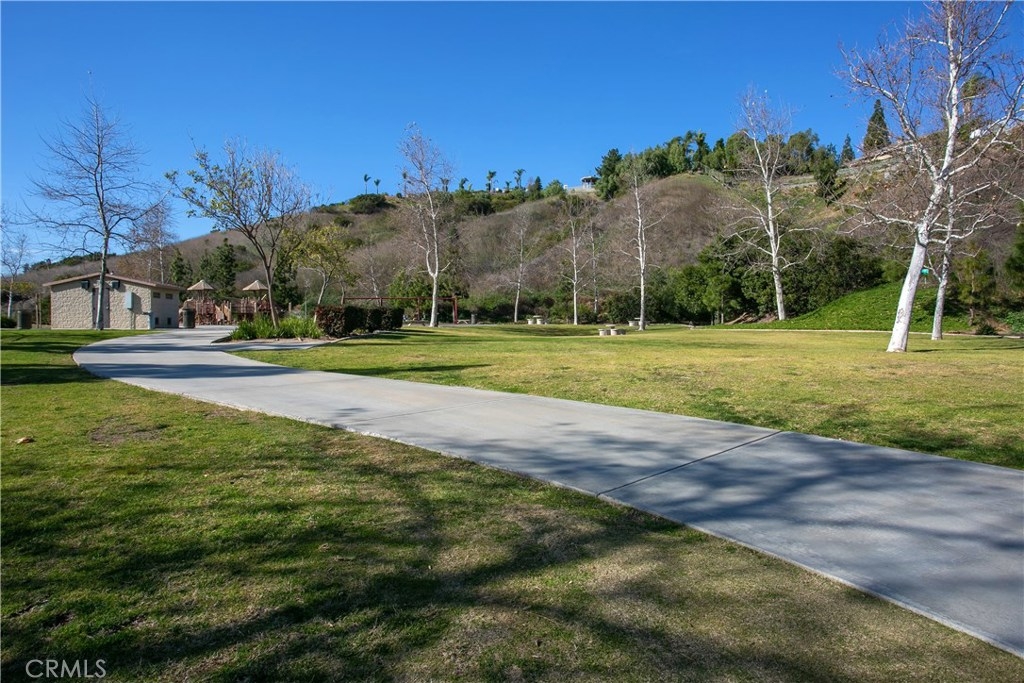 A beautiful, tastefully upgraded home within the coveted La Terraza - a quiet and peaceful community in the hills of Yorba Linda. This model offers the hard-to-find downstairs bedroom and full bath. Soaring high ceilings in the fireside living and dining room provide that large, open feel. Light & bright with abundant windows, with plantation shutters. The kitchen, with separate eating area, opens and flows nicely to the family room and out to the spacious backyard. The large master suite offers dual closets, and a gorgeous master bath with separate shower, soaking tub and dual sinks. Two additional bedrooms upstairs, with nice-sized closets, which share the secondary full bath with dual sinks. The backyard is low maintenance with artificial turf and aluminum patio cover - ready for outdoor entertaining. Inside laundry. Whole-house fan. La Terraza's amenities include two pools, tennis courts and walking paths. Homeowners association maintains your front yard landscaping, exterior painting, roof and more! Steps to Bryant Ranch Blue Ribbon Awarded Elementary School and Bryant Ranch park. Within Yorba Linda High School boundary. A wonderful place to live.