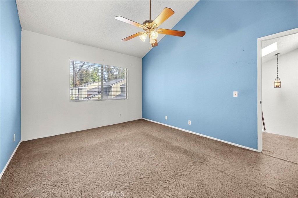 Arguably the BEST Location in the Villages of Yorba Linda! Offering nearly 1,300 square feet, this is the largest 3-bedroom, 2.5-bath townhome model with a yard and direct access 2 car garage that RARELY comes to market. Perfectly positioned as a private end unit in the center of the tract, this home backs directly to a lush greenbelt, creating a peaceful and serene setting. With no direct rear neighbors, you’ll enjoy exceptional privacy and tranquil views. Step inside to soaring vaulted ceilings and a light-filled living room that feels both expansive and inviting. The kitchen sits adjacent to the living and dining areas, keeping you connected to family and guests, being ideal for everyday living and entertaining. A convenient downstairs powder room adds functionality for visitors. The spacious dining area opens to a privately fenced backyard patio that backs to the greenery and trees creating a perfect retreat for relaxing, dining al fresco, or gardening. Upstairs, the primary suite features vaulted ceilings and is thoughtfully positioned away from the two secondary bedrooms for added privacy. Two additional bedrooms share a full hall bath, completing the well-designed floor plan. The home has been well-maintained but original condition and offers an incredible layout ready for your personal touches. Currently tenant-occupied on a month-to-month lease, this property also presents an excellent opportunity for investors seeking a strong rental. Residents enjoy access to a pool, spa, volleyball court, clubhouse, playground, and beautifully maintained BBQ areas — all within walking distance. Nature lovers will appreciate the nearby hiking trails that provide peaceful, scenic routes right outside your door. Ideally located near shopping, dining, and freeway access, and just minutes from award-winning Bryant Ranch Elementary and zoned for Yorba Linda High. This is a rare opportunity to own one of the best-located homes in the community whether you’re looking to move in, remodel to your taste, or invest.